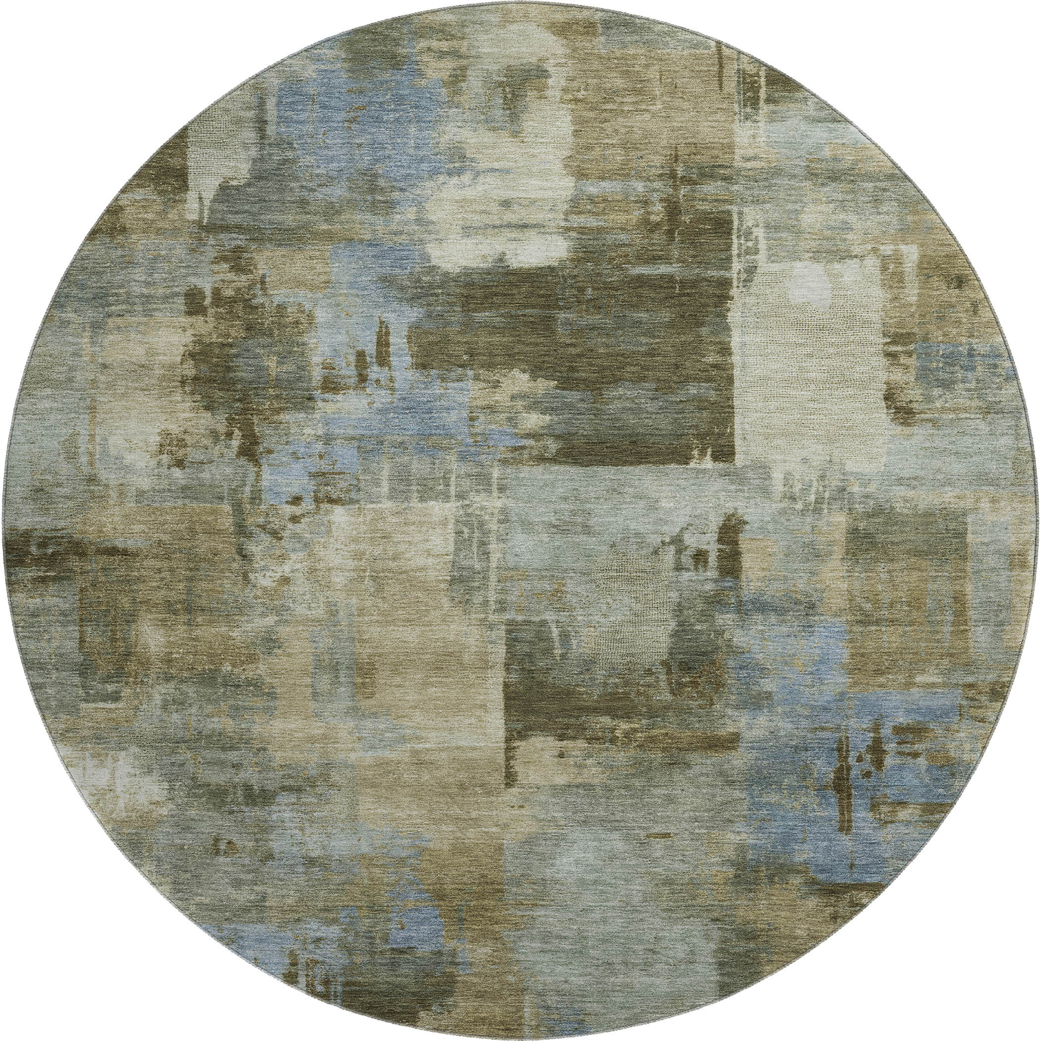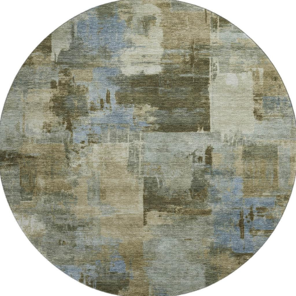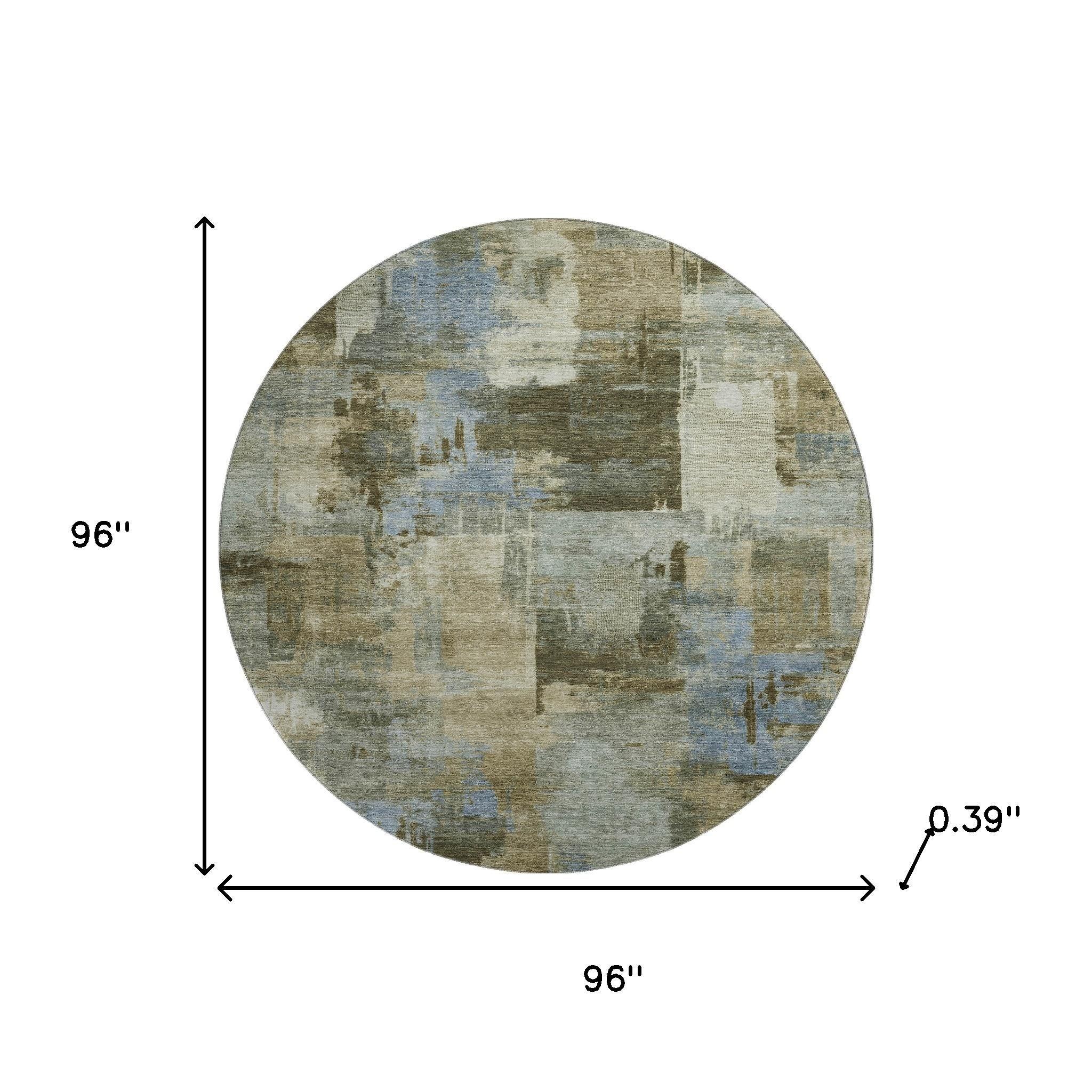Set an inviting tone in your space with this 8-foot green and gray abstract washable round rug with uv protection. Ideal for spaces with kids and pets, this rug is stain resistant to help repel dirt and spilled liquids. Built to last, this rug crafted from polyester fibers is known for its durability and long lasting appeal. Rugs are a great way to showcase your style, hide imperfections, warm your home and reduce noise. This larger sized, transitional styled rug is ready to create a focal point or statement piece in your room. 96.00-inch h x 96.00-inch w x 0.39-inch d.