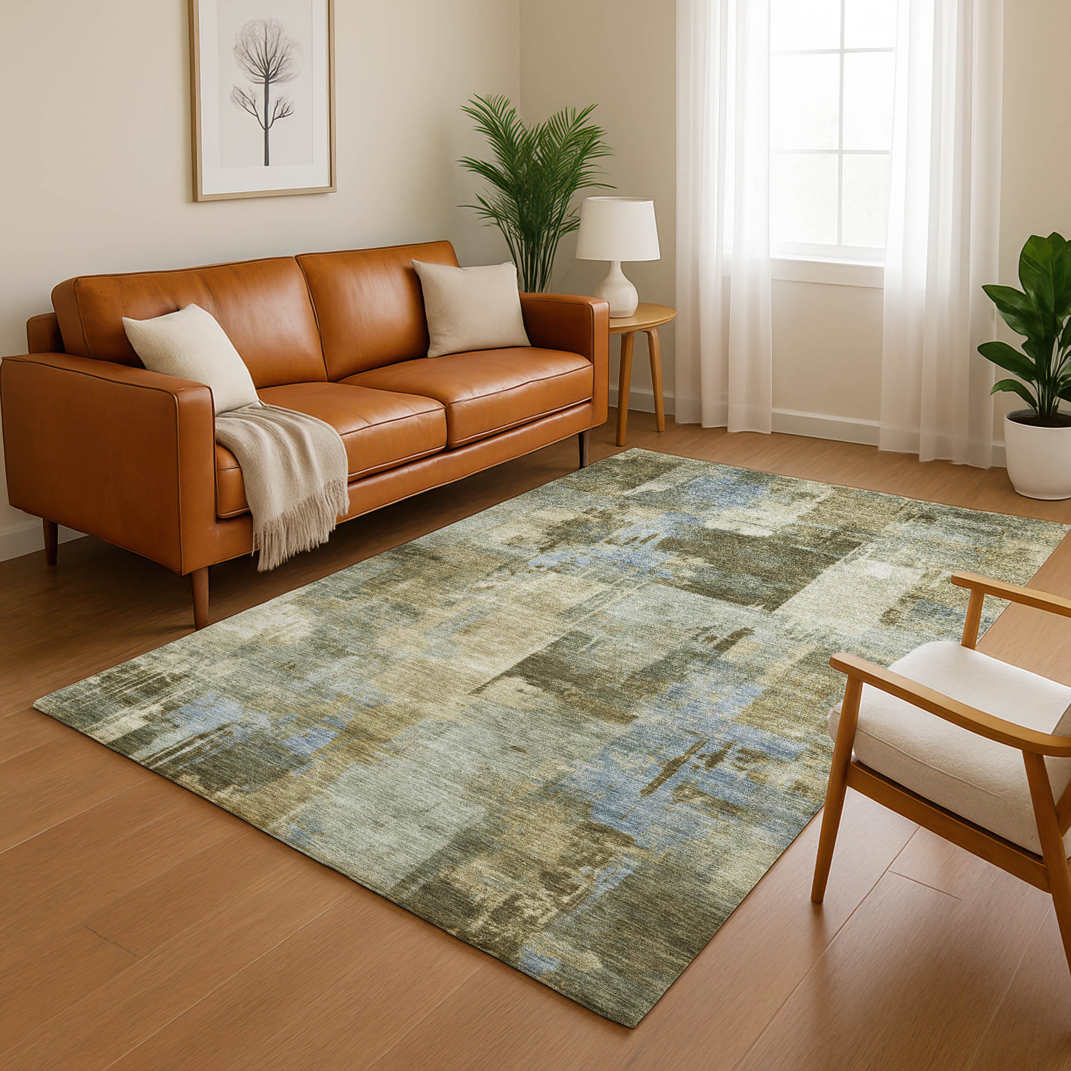 Add great coloration and comfortable texture to your space with this 8-foot x 10-foot green and gray abstract washable area rug with uv protection. Ideal for spaces with kids and pets, this rug is stain resistant to help repel dirt and spilled liquids. Built to last, this rug crafted from polyester fibers is known for its durability and long lasting appeal. Rugs are a great way to showcase your style, hide imperfections, warm your home and reduce noise. This larger sized, transitional styled rug is ready to create a focal point or statement piece in your room. 96.00-inch h x 120.00-inch w x 0.39-inch d.