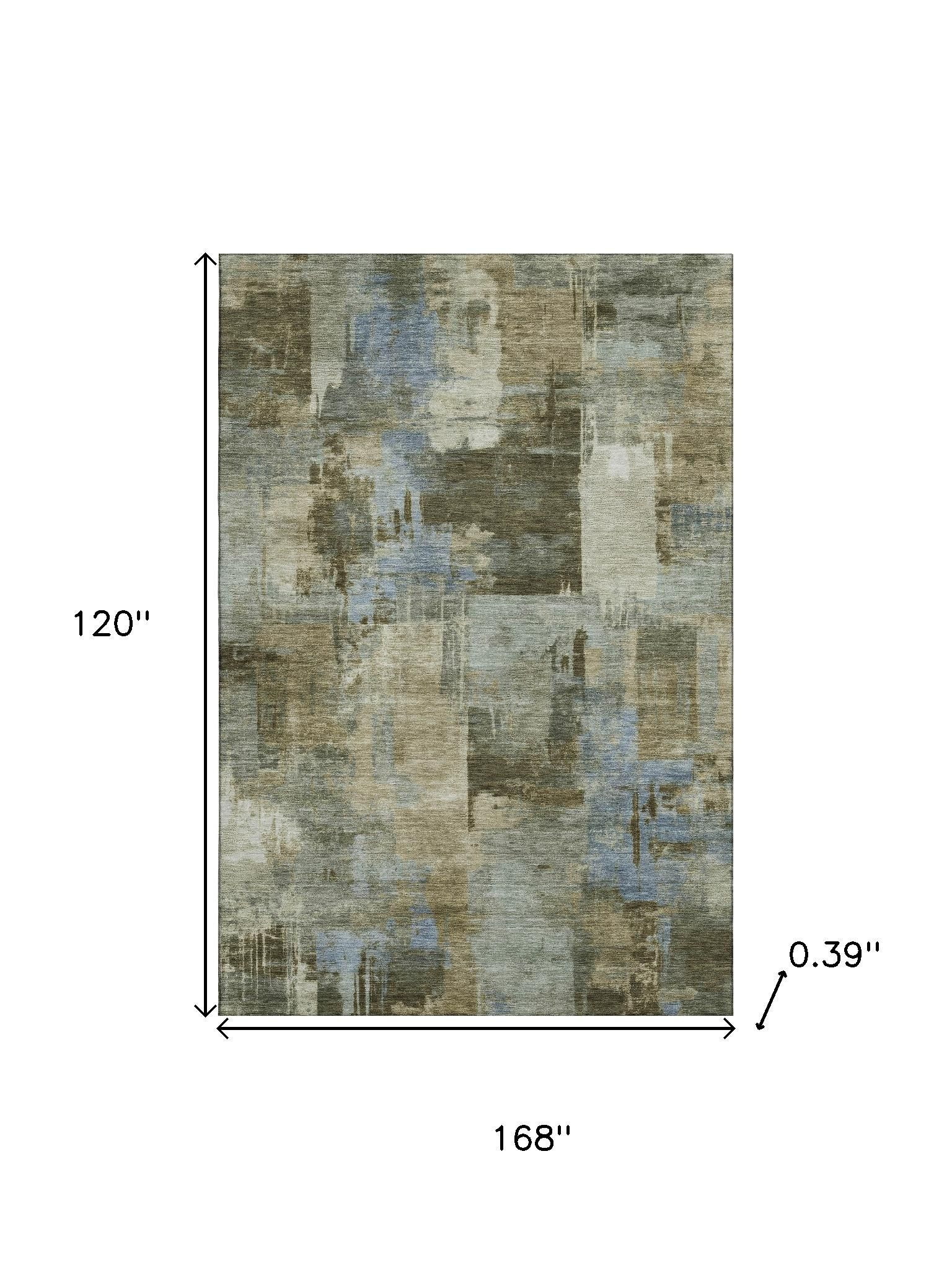This 10-foot x 14-foot green and gray abstract washable area rug with uv protection, is a great way to add warmth to a room. Ideal for spaces with kids and pets, this rug is stain resistant to help repel dirt and spilled liquids. Built to last, this rug crafted from polyester fibers is known for its durability and long lasting appeal. Rugs are a great way to showcase your style, hide imperfections, warm your home and reduce noise. This larger sized, transitional styled rug is ready to create a focal point or statement piece in your room. 120.00-inch h x 168.00-inch w x 0.39-inch d.
