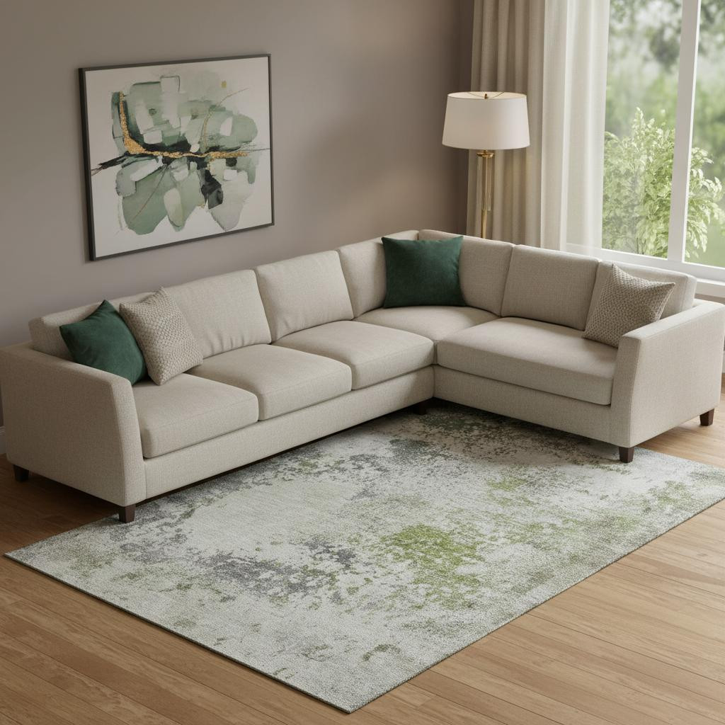 This 8-foot x 10-foot linen and gray abstract washable area rug with uv protection, is a great way to add warmth to a room. Ideal for spaces with kids and pets, this rug is stain resistant to help repel dirt and spilled liquids. Built to last, this rug crafted from polyester fibers is known for its durability and long lasting appeal. Rugs are a great way to showcase your style, hide imperfections, warm your home and reduce noise. This larger sized, transitional styled rug is ready to create a focal point or statement piece in your room. 96.00-inch h x 120.00-inch w x 0.39-inch d.