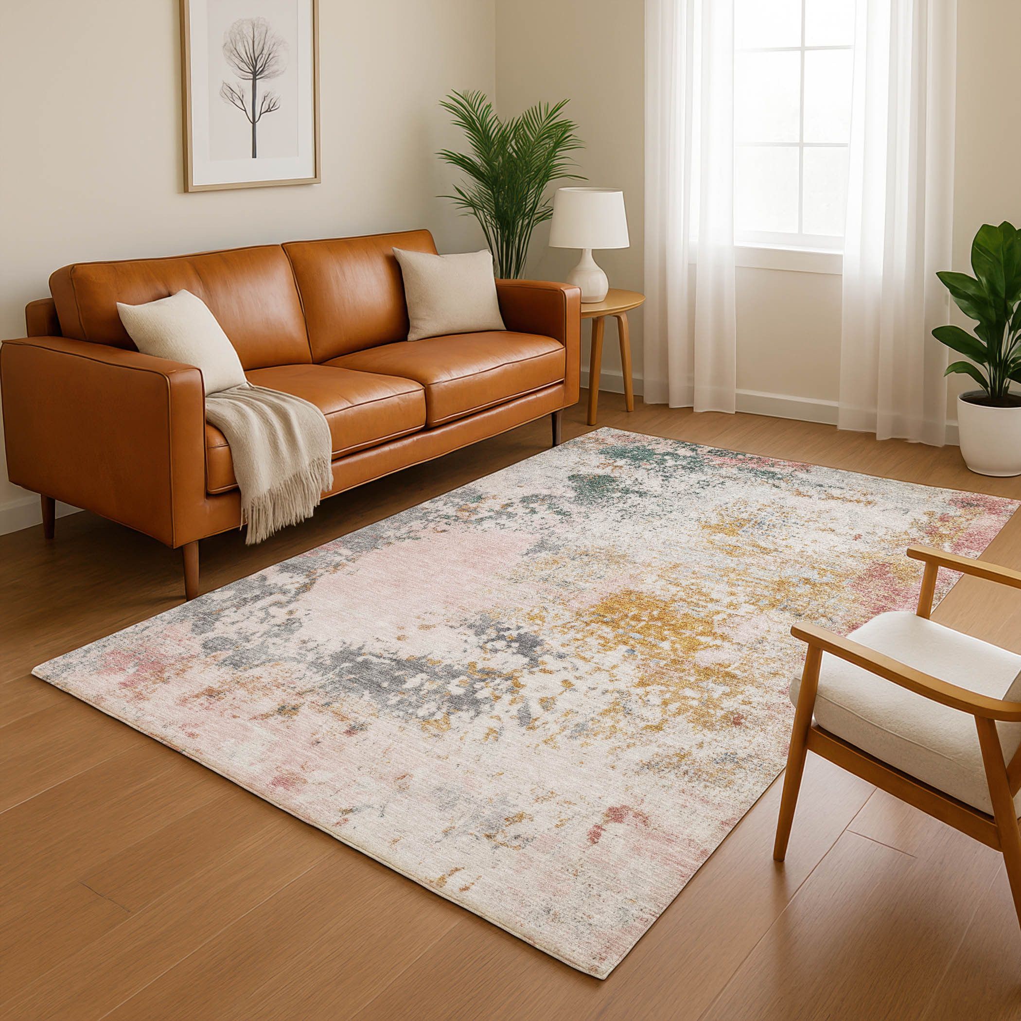 Set an inviting tone in your space with this 3-foot x 5-foot pink and copper abstract washable area rug with uv protection. Ideal for spaces with kids and pets, this rug is stain resistant to help repel dirt and spilled liquids. Built to last, this rug crafted from polyester fibers is known for its durability and long lasting appeal. Rugs are a great way to showcase your style, hide imperfections, warm your home and reduce noise. This smaller sized, transitional styled rug is just what you need for your walkway, bedside, in front of door, cabinet, refrigerator, or chair. 36.00-inch h x 60.00-inch w x 0.39-inch d.