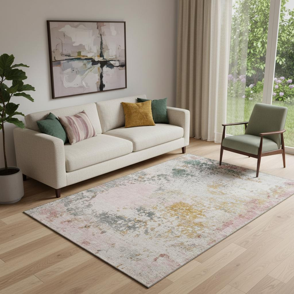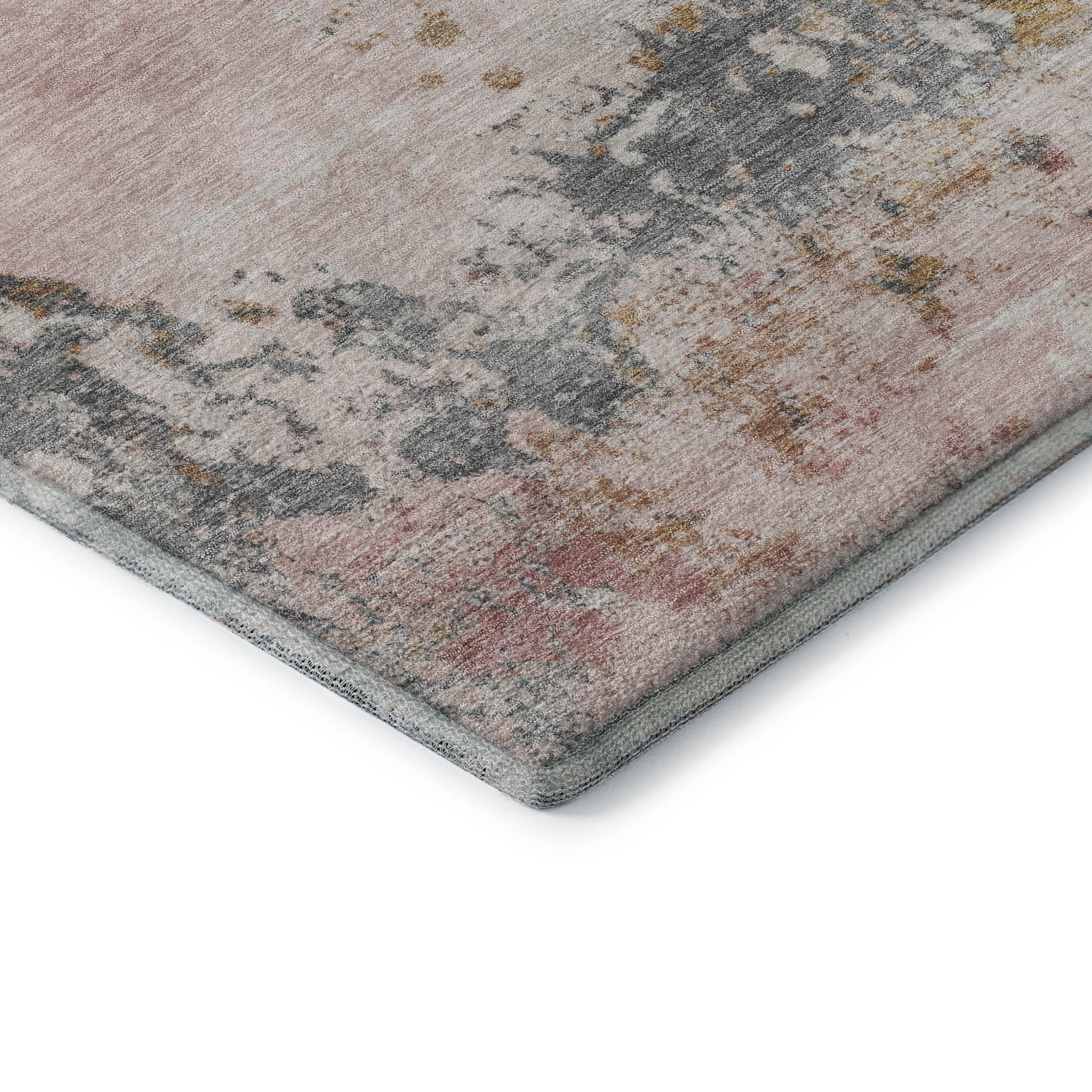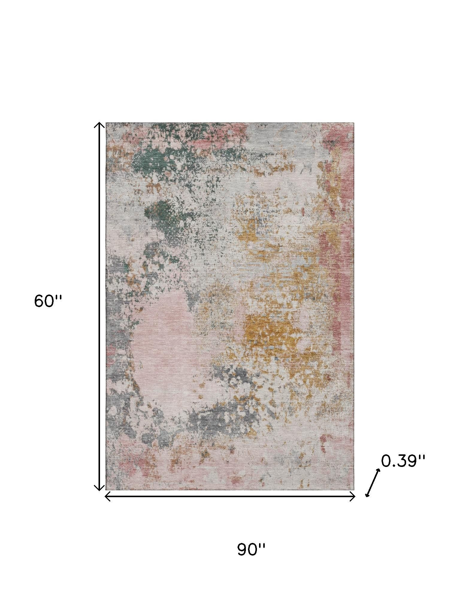 Add great coloration and comfortable texture to your space with this 5-foot x 8-foot pink and copper abstract washable area rug with uv protection. Ideal for spaces with kids and pets, this rug is stain resistant to help repel dirt and spilled liquids. Built to last, this rug crafted from polyester fibers is known for its durability and long lasting appeal. Rugs are a great way to showcase your style, hide imperfections, warm your home and reduce noise. This larger sized, transitional styled rug is ready to create a focal point or statement piece in your room. 60.00-inch h x 90.00-inch w x 0.39-inch d.