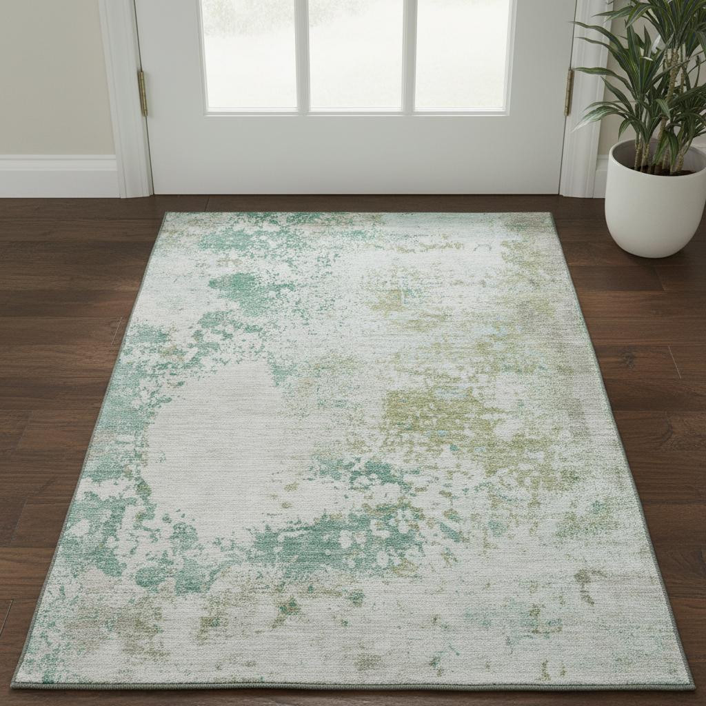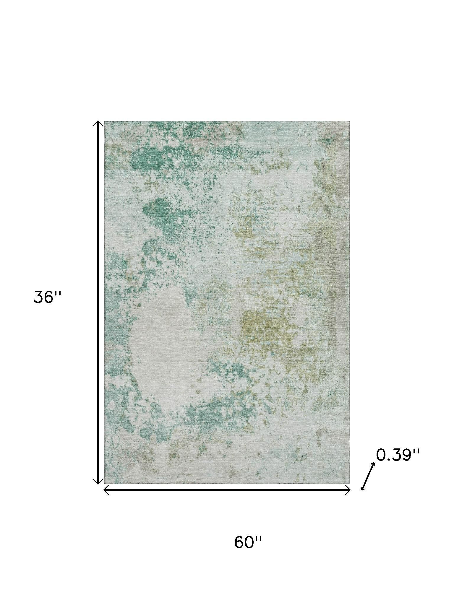 Set an inviting tone in your space with this 3-foot x 5-foot light taupe and teal abstract washable area rug with uv protection. Ideal for spaces with kids and pets, this rug is stain resistant to help repel dirt and spilled liquids. Built to last, this rug crafted from polyester fibers is known for its durability and long lasting appeal. Rugs are a great way to showcase your style, hide imperfections, warm your home and reduce noise. This smaller sized, transitional styled rug is just what you need for your walkway, bedside, in front of door, cabinet, refrigerator, or chair. 36.00-inch h x 60.00-inch w x 0.39-inch d.