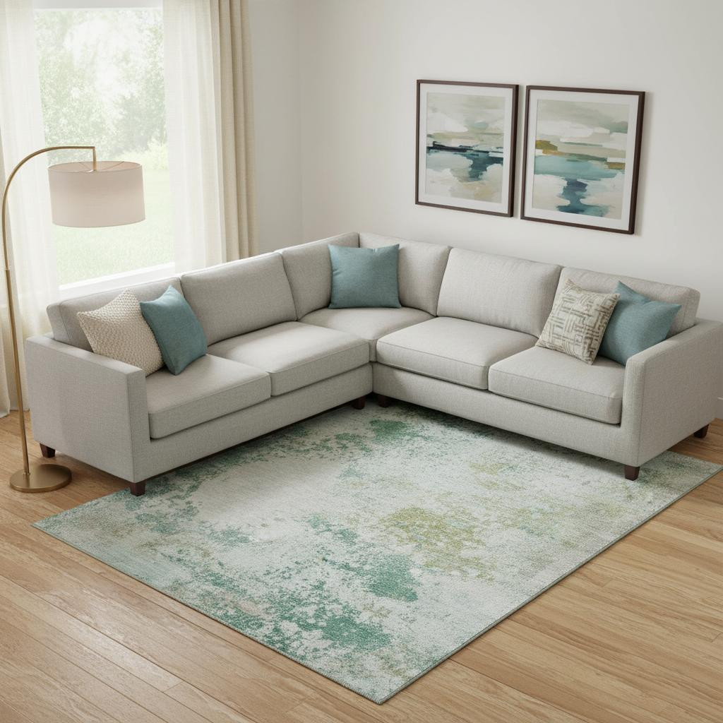 Set an inviting tone in your space with this 8-foot x 10-foot light taupe and teal abstract washable area rug with uv protection. Ideal for spaces with kids and pets, this rug is stain resistant to help repel dirt and spilled liquids. Built to last, this rug crafted from polyester fibers is known for its durability and long lasting appeal. Rugs are a great way to showcase your style, hide imperfections, warm your home and reduce noise. This larger sized, transitional styled rug is ready to create a focal point or statement piece in your room. 96.00-inch h x 120.00-inch w x 0.39-inch d.
