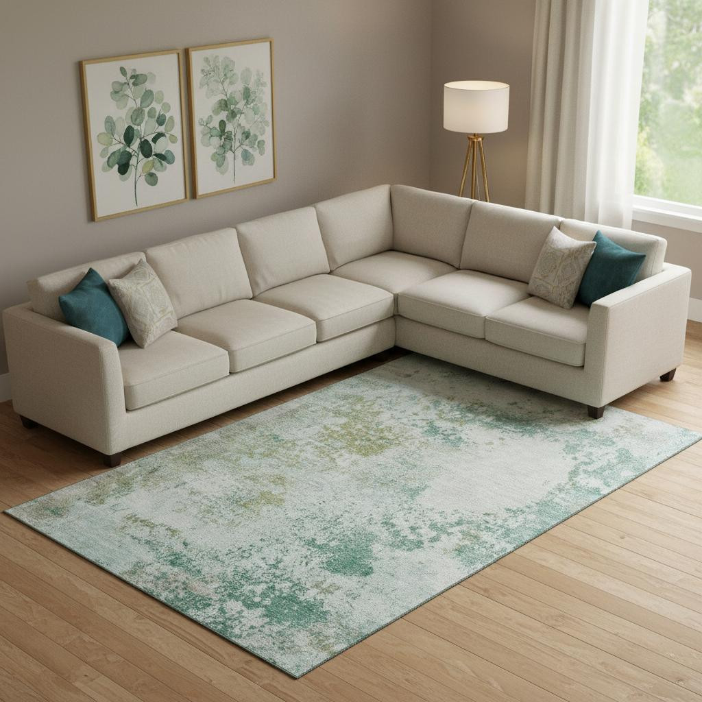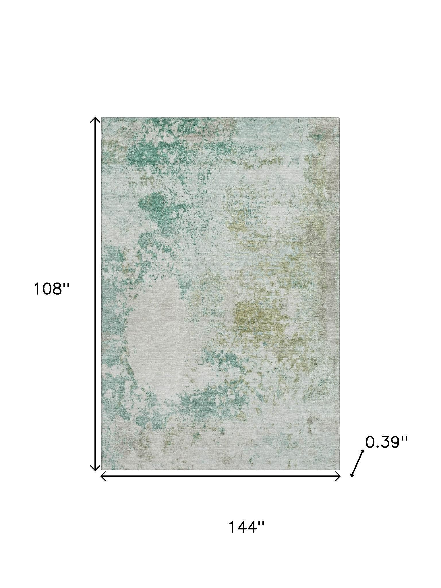 Set an inviting tone in your space with this 9-foot x 12-foot light taupe and teal abstract washable area rug with uv protection. Ideal for spaces with kids and pets, this rug is stain resistant to help repel dirt and spilled liquids. Built to last, this rug crafted from polyester fibers is known for its durability and long lasting appeal. Rugs are a great way to showcase your style, hide imperfections, warm your home and reduce noise. This larger sized, transitional styled rug is ready to create a focal point or statement piece in your room. 108.00-inch h x 144.00-inch w x 0.39-inch d.