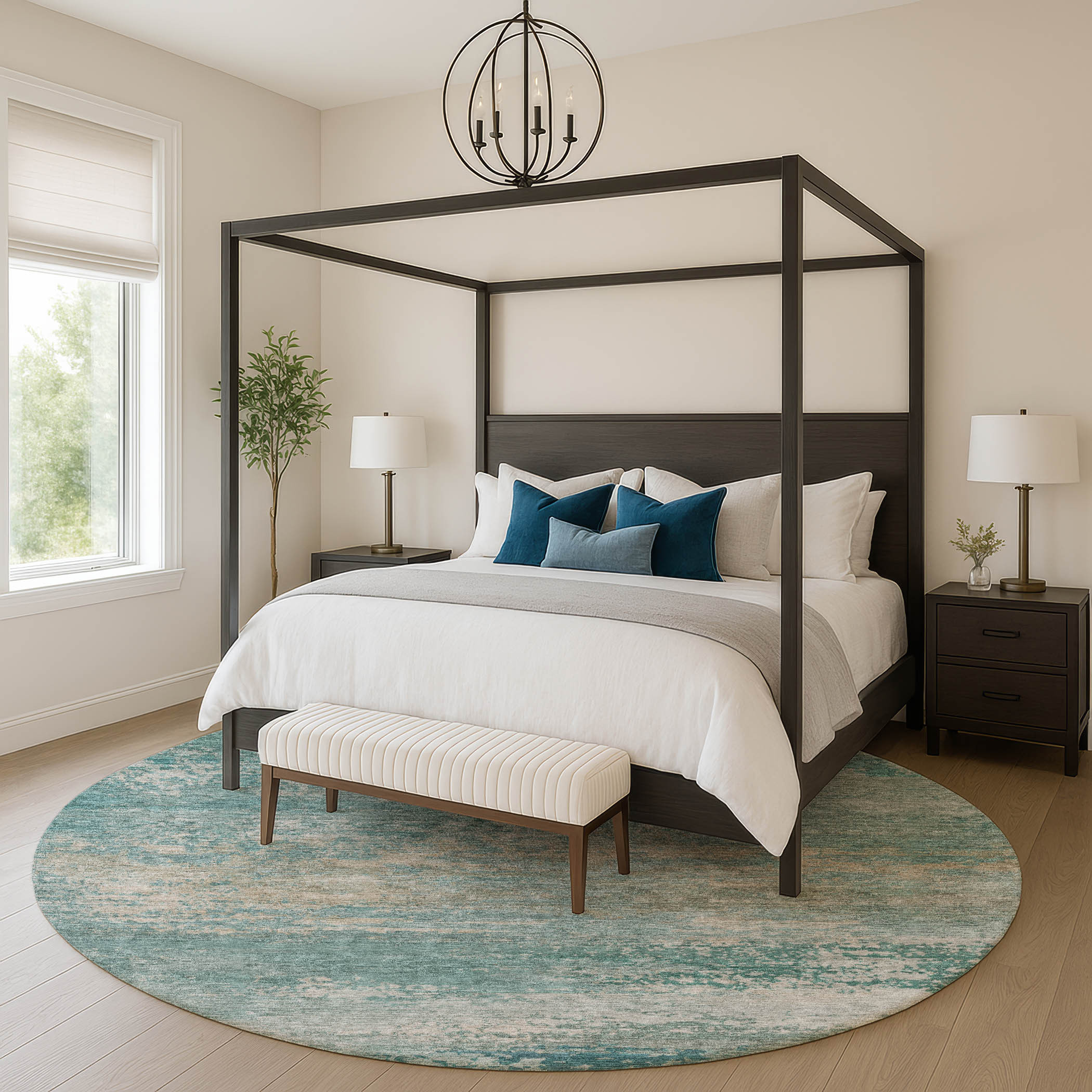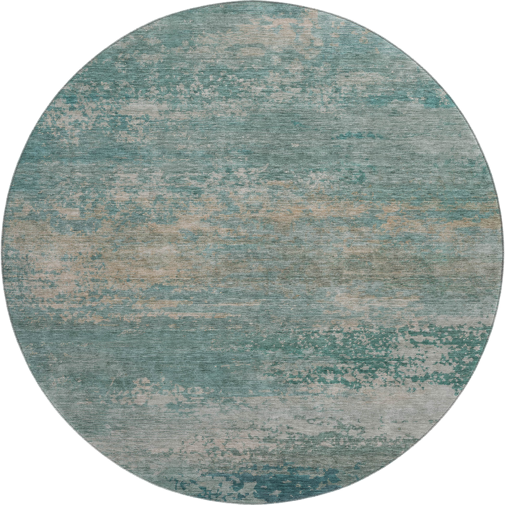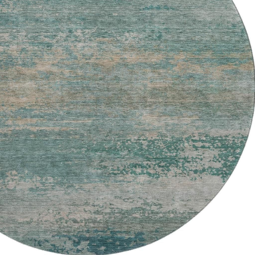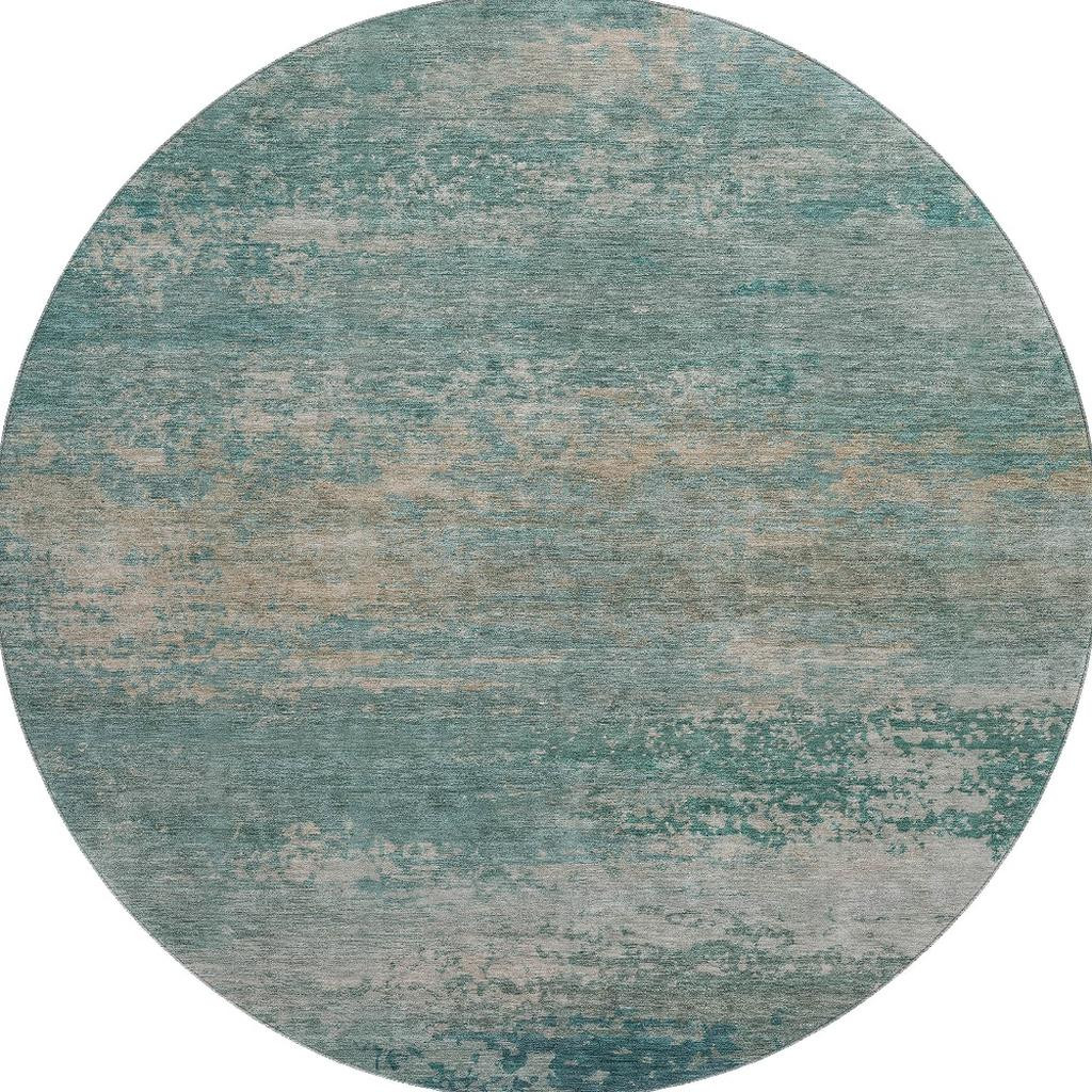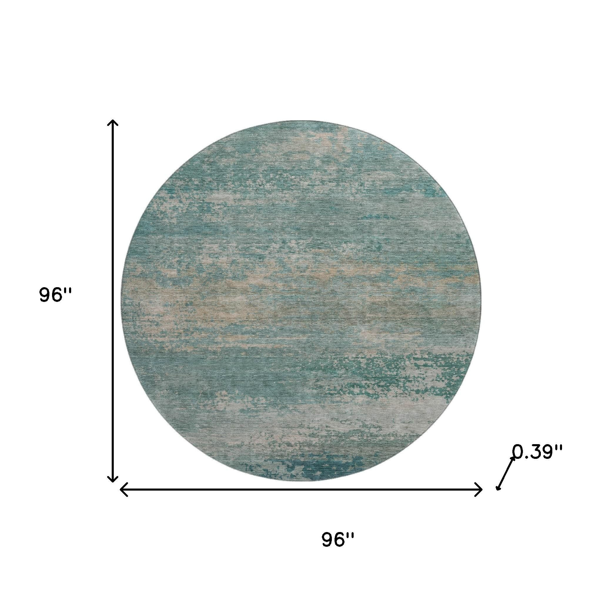 Set an inviting tone in your space with this 8-foot aqua and beige abstract washable round rug with uv protection. Ideal for spaces with kids and pets, this rug is stain resistant to help repel dirt and spilled liquids. Built to last, this rug crafted from polyester fibers is known for its durability and long lasting appeal. Rugs are a great way to showcase your style, hide imperfections, warm your home and reduce noise. This larger sized, transitional styled rug is ready to create a focal point or statement piece in your room. 96.00-inch h x 96.00-inch w x 0.39-inch d.