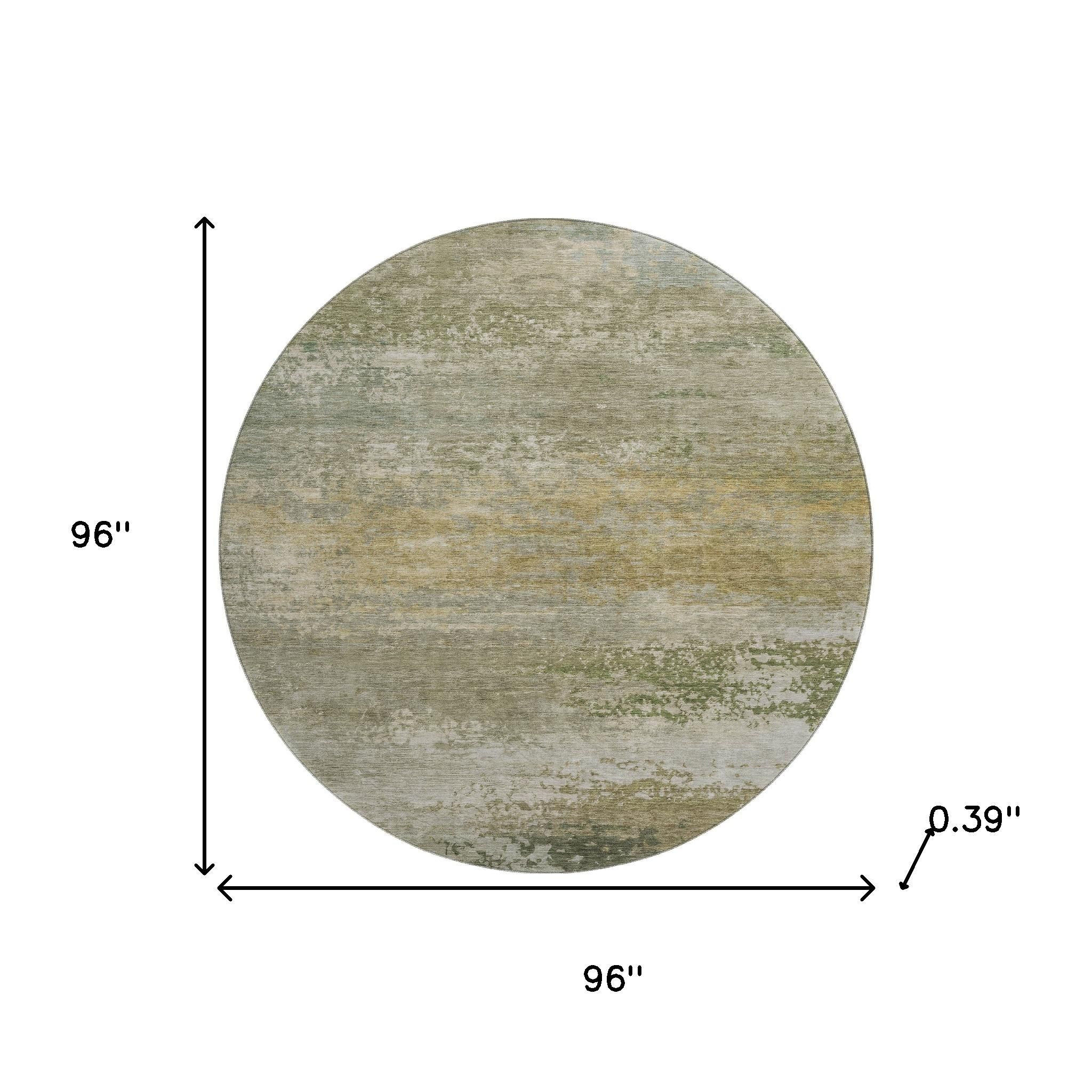 Set an inviting tone in your space with this 8-foot beige and copper abstract washable round rug with uv protection. Ideal for spaces with kids and pets, this rug is stain resistant to help repel dirt and spilled liquids. Built to last, this rug crafted from polyester fibers is known for its durability and long lasting appeal. Rugs are a great way to showcase your style, hide imperfections, warm your home and reduce noise. This larger sized, transitional styled rug is ready to create a focal point or statement piece in your room. 96.00-inch h x 96.00-inch w x 0.39-inch d.
