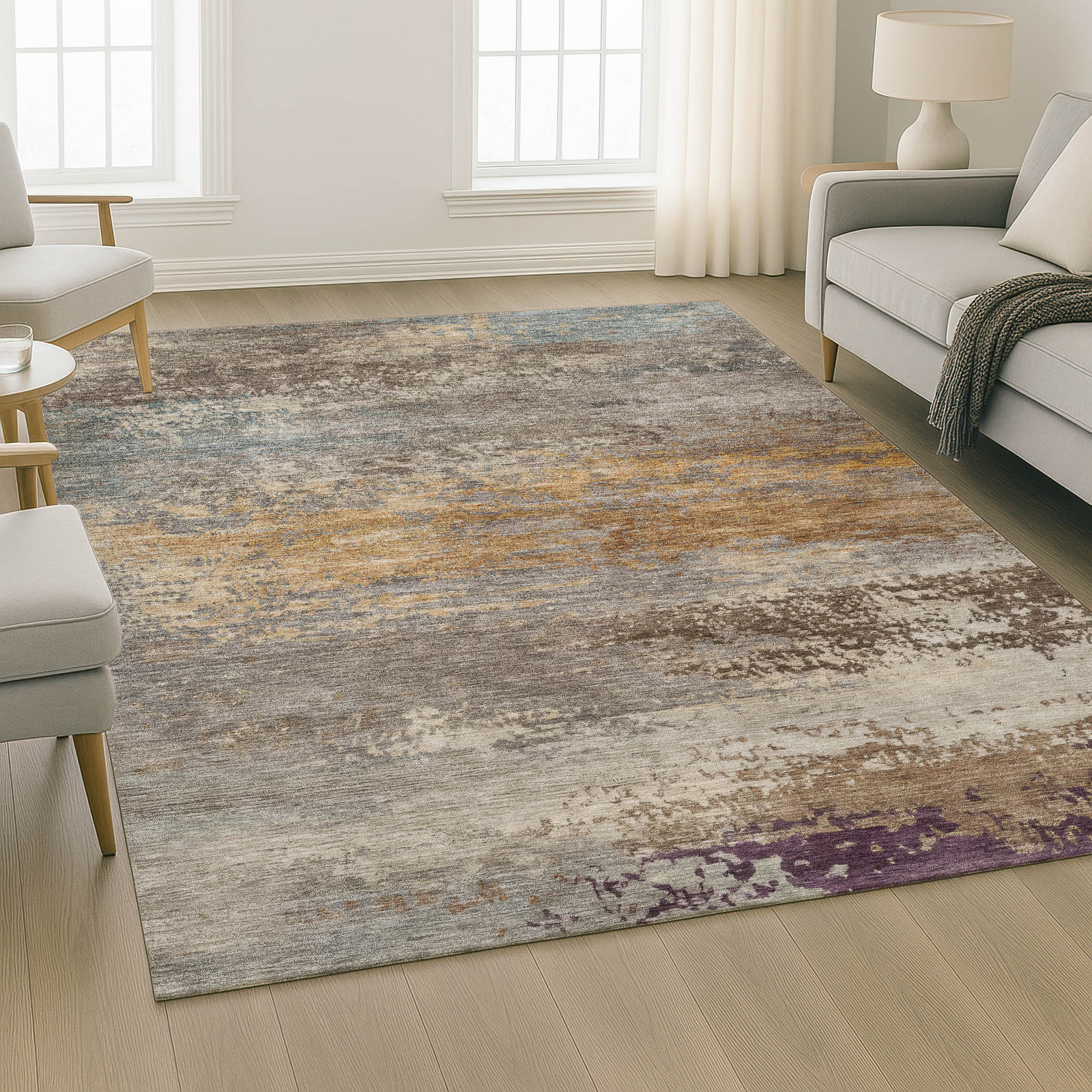 This 10-foot x 14-foot brown and gray abstract washable area rug with uv protection, is a great way to add warmth to a room. Ideal for spaces with kids and pets, this rug is stain resistant to help repel dirt and spilled liquids. Built to last, this rug crafted from polyester fibers is known for its durability and long lasting appeal. Rugs are a great way to showcase your style, hide imperfections, warm your home and reduce noise. This larger sized, transitional styled rug is ready to create a focal point or statement piece in your room. 120.00-inch h x 168.00-inch w x 0.39-inch d.