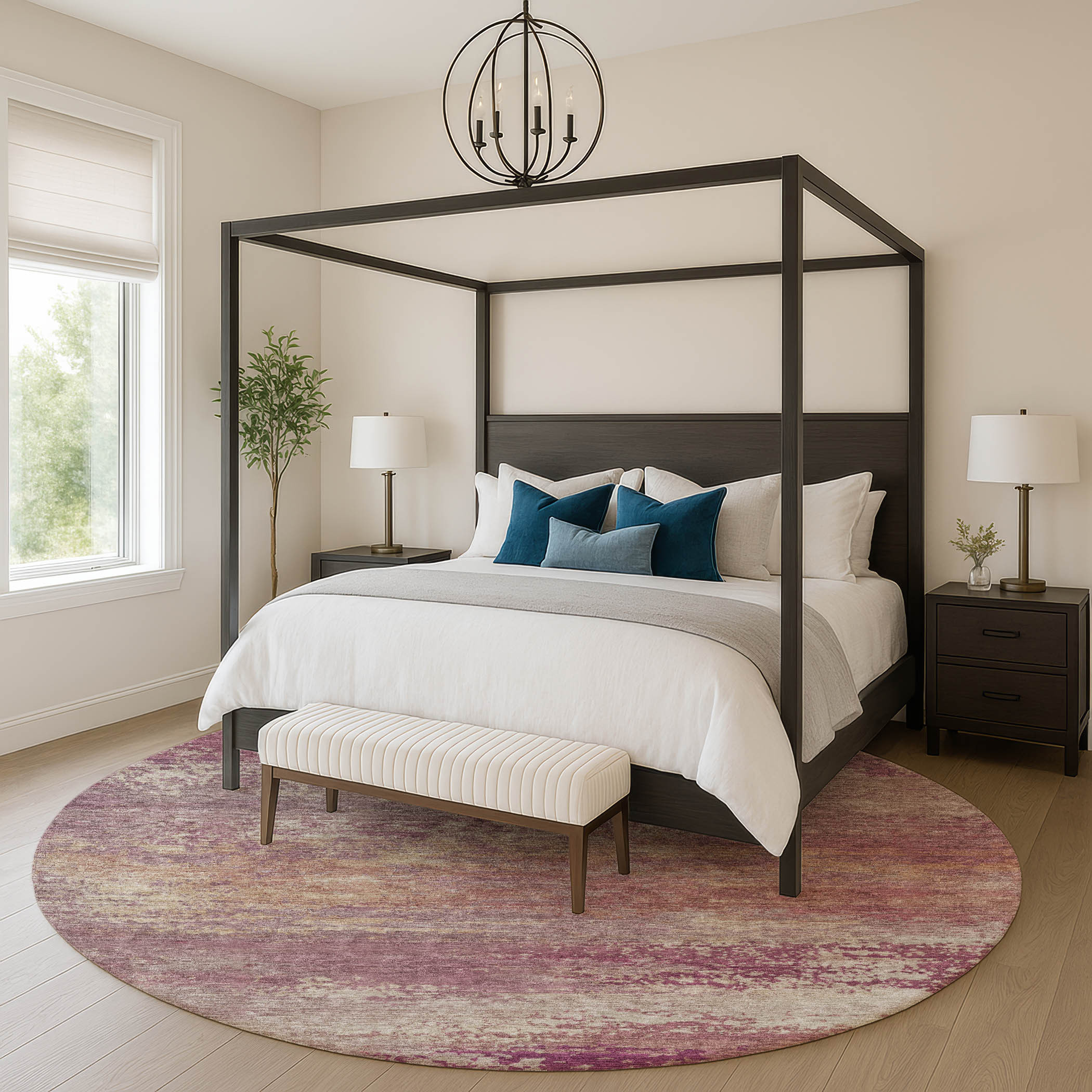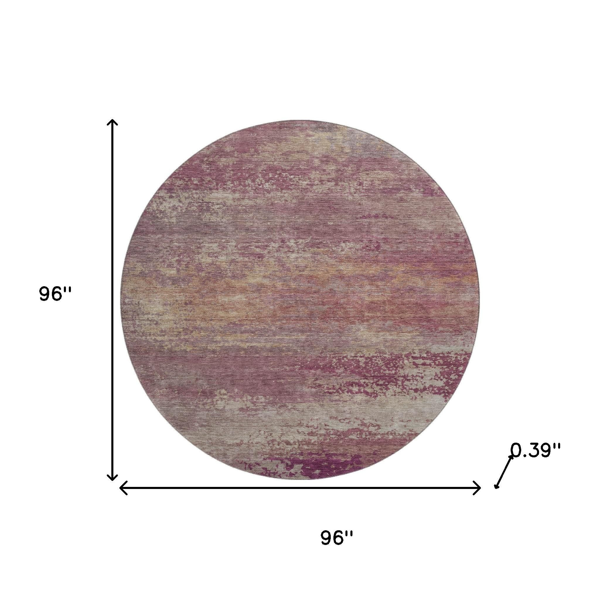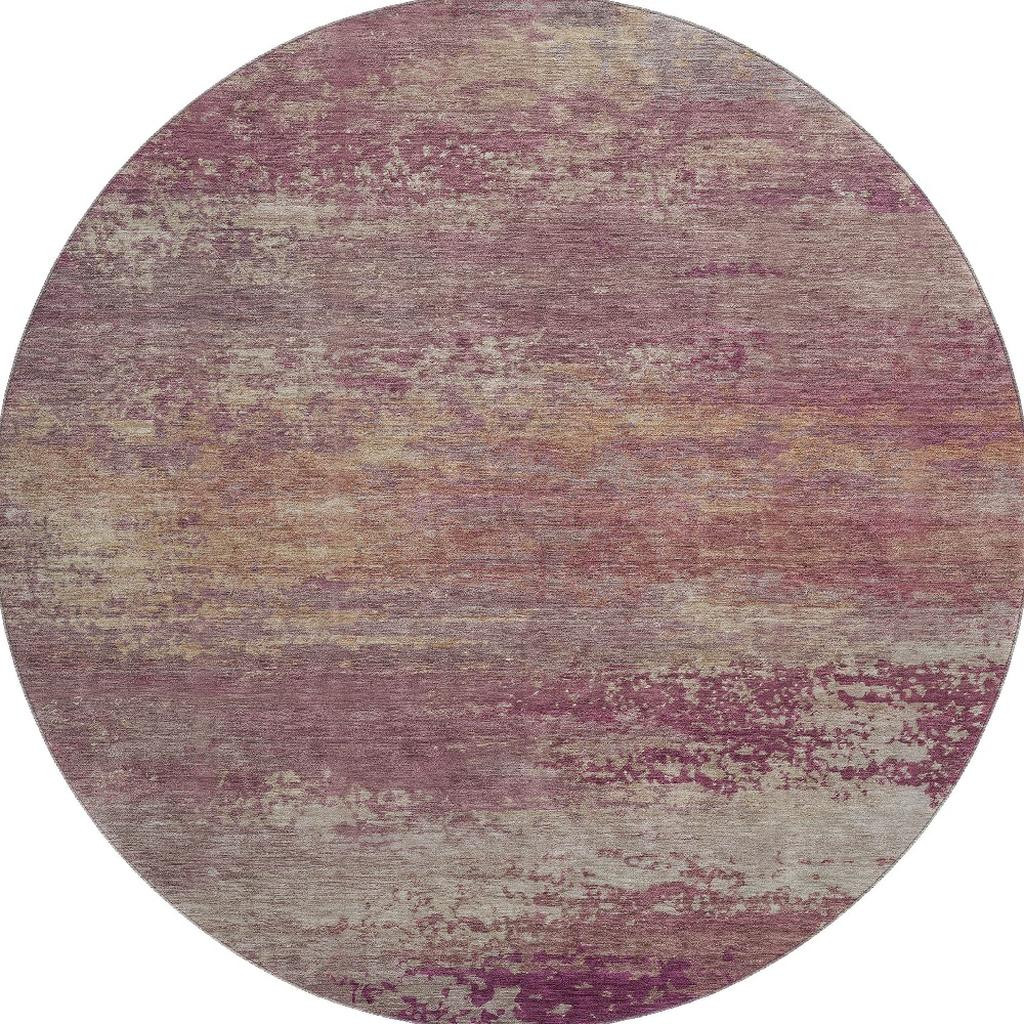 Set an inviting tone in your space with this 8-foot merlot and beige abstract washable round rug with uv protection. Ideal for spaces with kids and pets, this rug is stain resistant to help repel dirt and spilled liquids. Built to last, this rug crafted from polyester fibers is known for its durability and long lasting appeal. Rugs are a great way to showcase your style, hide imperfections, warm your home and reduce noise. This larger sized, transitional styled rug is ready to create a focal point or statement piece in your room. 96.00-inch h x 96.00-inch w x 0.39-inch d.
