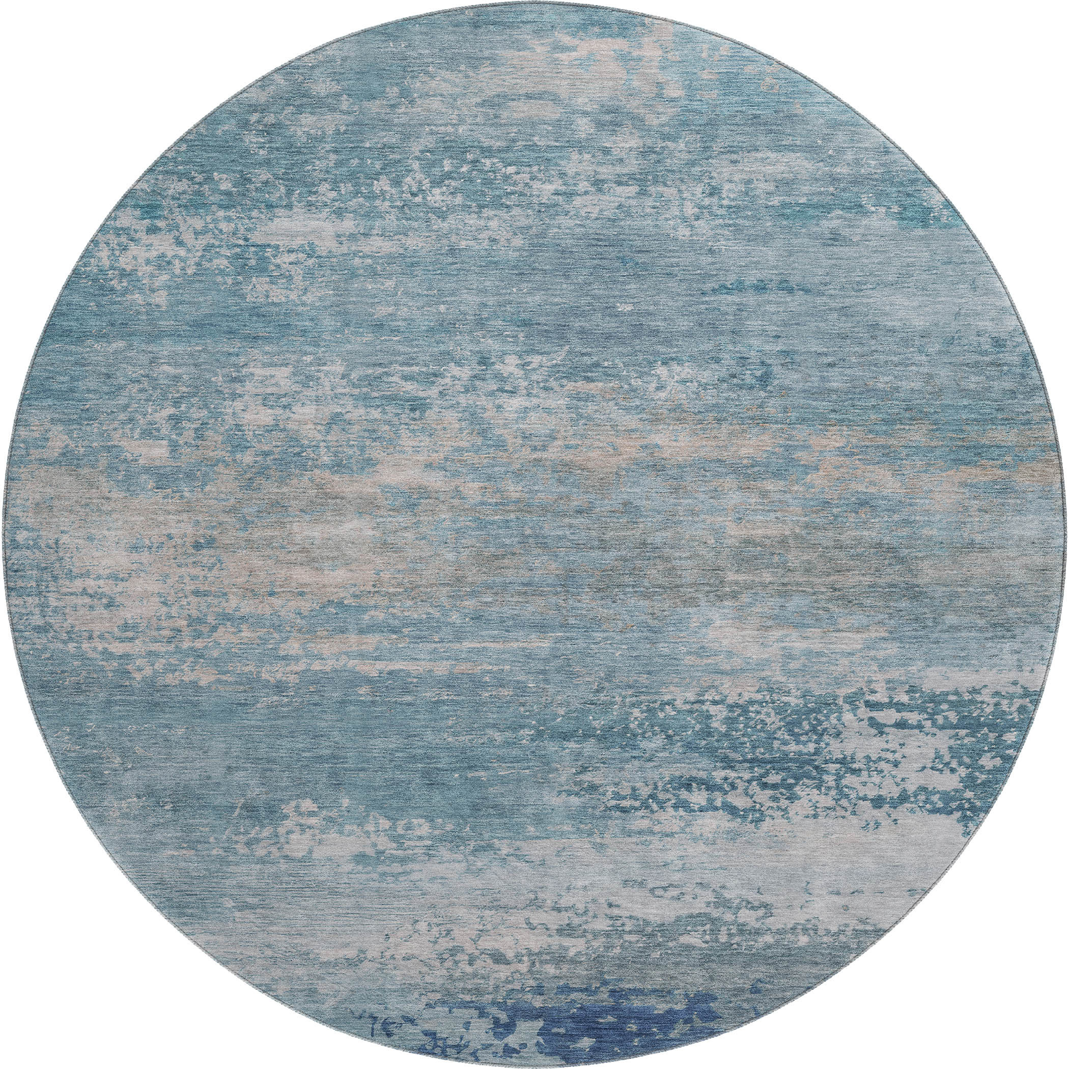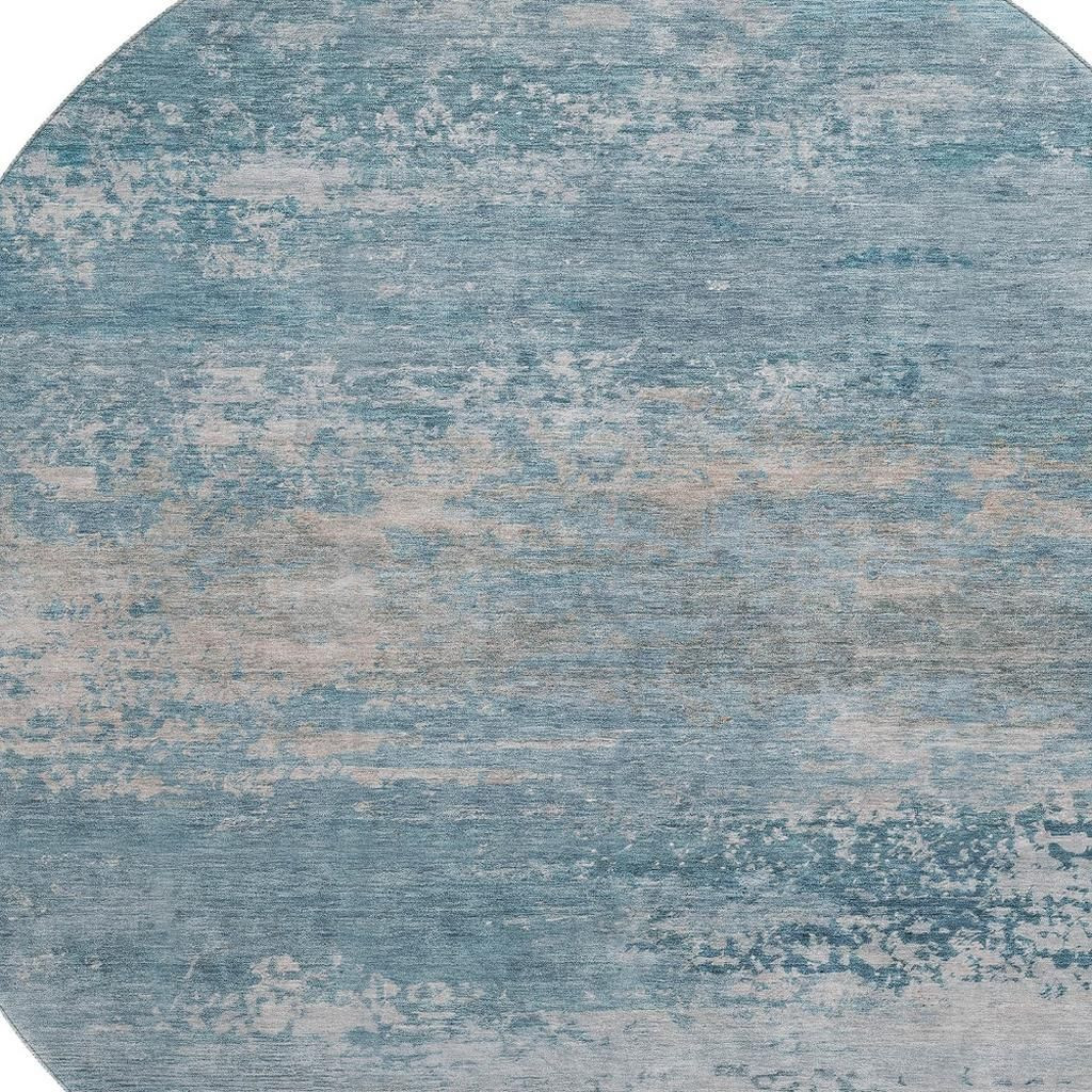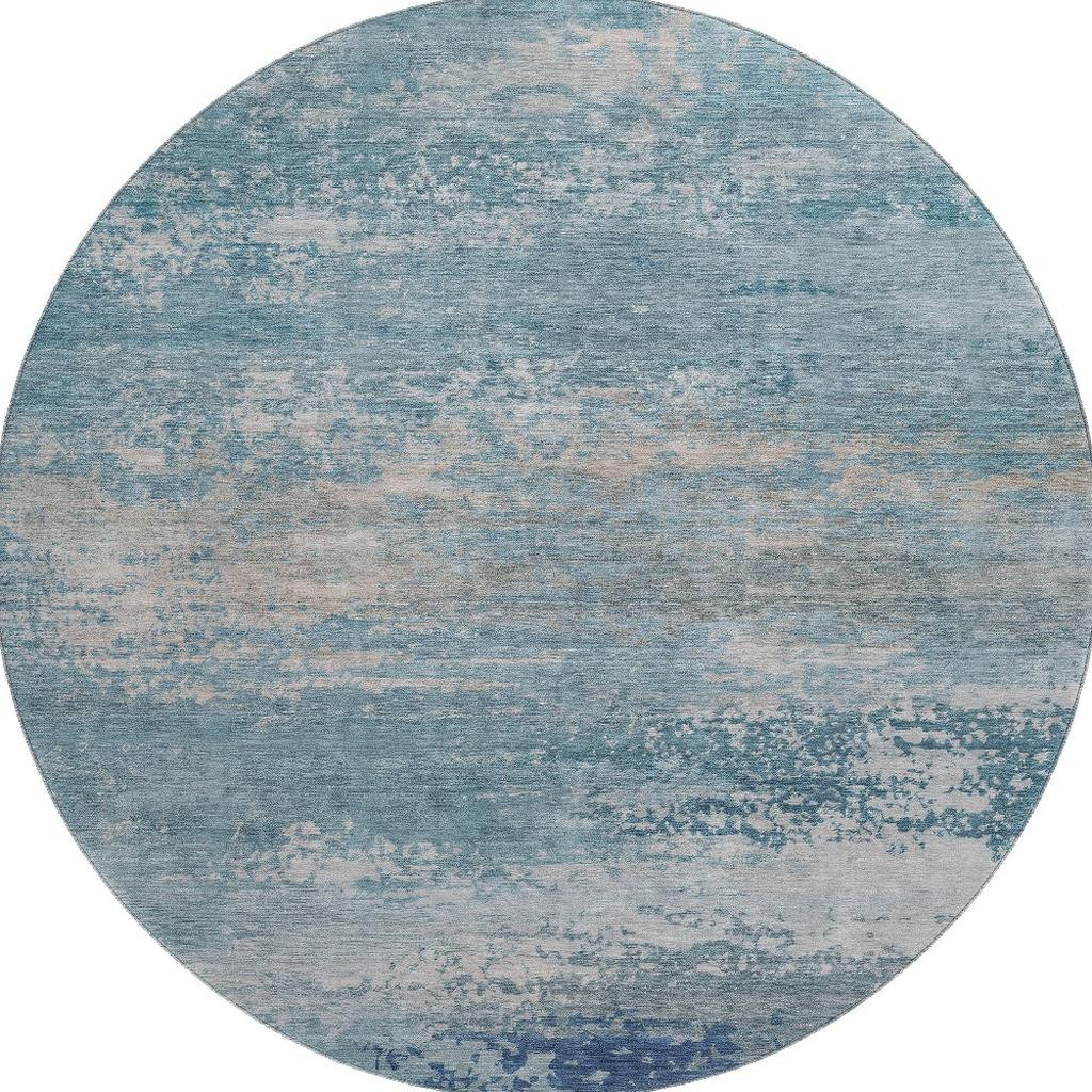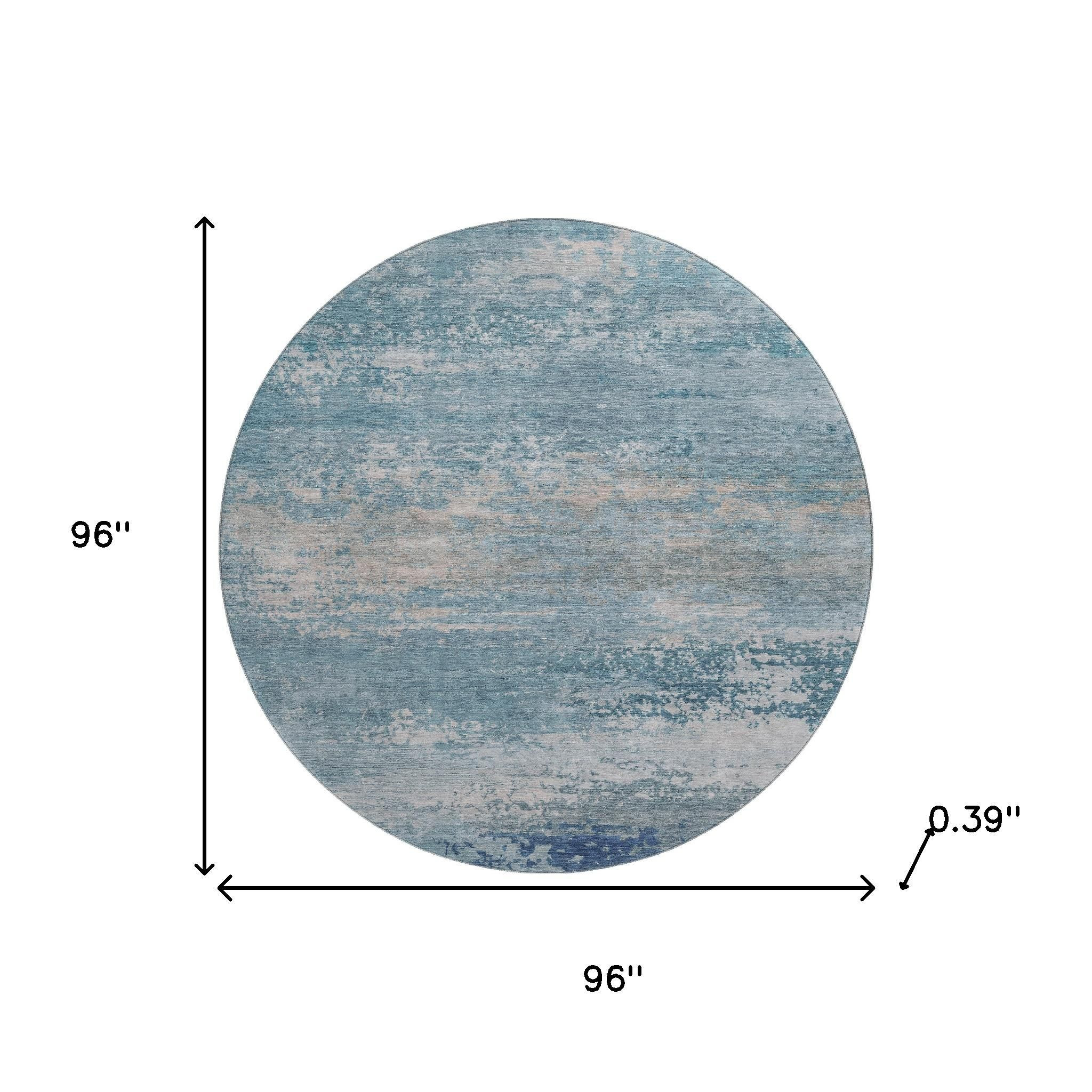 Add some artistry to your room with this 8-foot sky blue and gray abstract washable round rug with uv protection. Ideal for spaces with kids and pets, this rug is stain resistant to help repel dirt and spilled liquids. Built to last, this rug crafted from polyester fibers is known for its durability and long lasting appeal. Rugs are a great way to showcase your style, hide imperfections, warm your home and reduce noise. This larger sized, transitional styled rug is ready to create a focal point or statement piece in your room. 96.00-inch h x 96.00-inch w x 0.39-inch d.