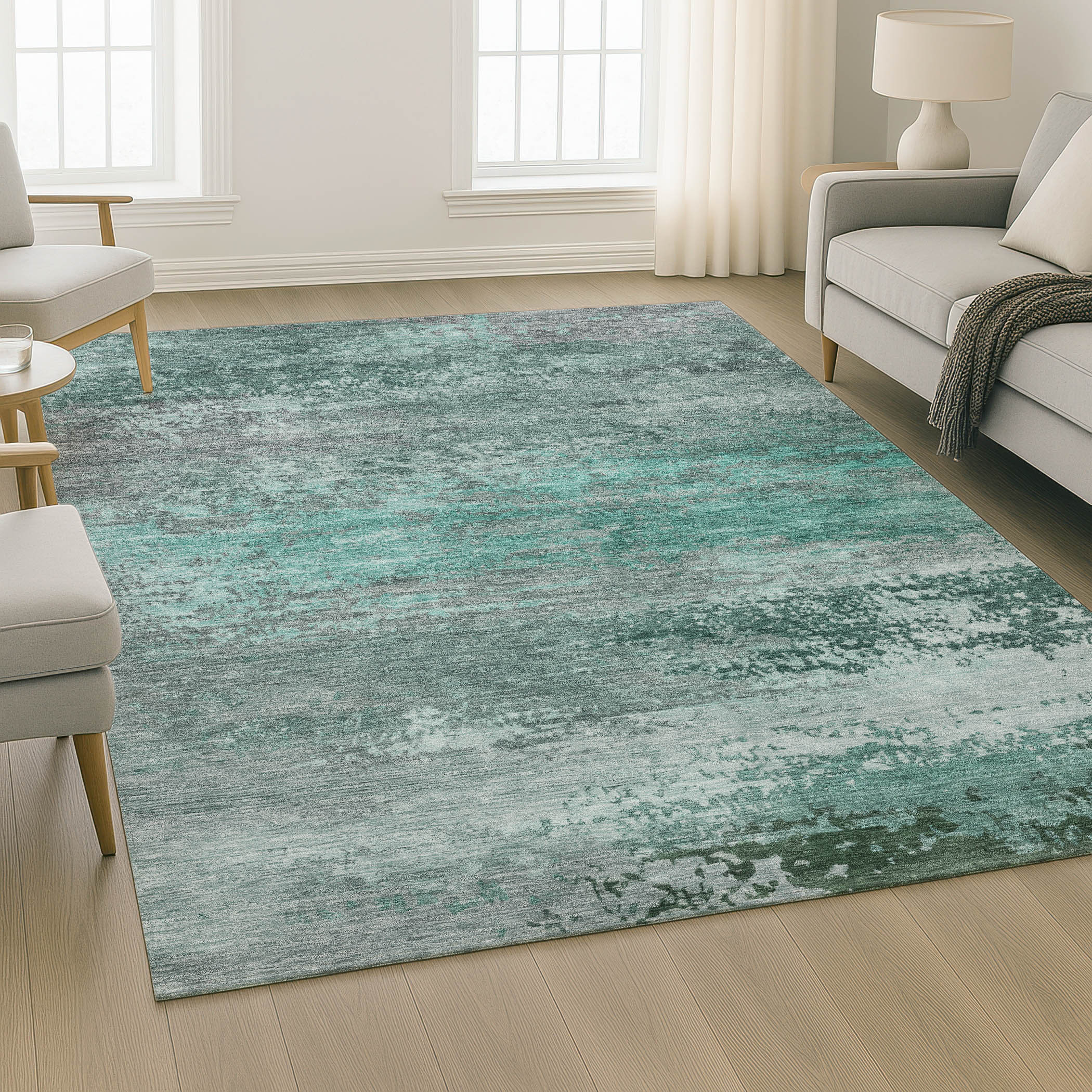 Add great coloration and comfortable texture to your space with this 8-foot x 10-foot teal and gray abstract washable area rug with uv protection. Ideal for spaces with kids and pets, this rug is stain resistant to help repel dirt and spilled liquids. Built to last, this rug crafted from polyester fibers is known for its durability and long lasting appeal. Rugs are a great way to showcase your style, hide imperfections, warm your home and reduce noise. This larger sized, transitional styled rug is ready to create a focal point or statement piece in your room. 96.00-inch h x 120.00-inch w x 0.39-inch d.