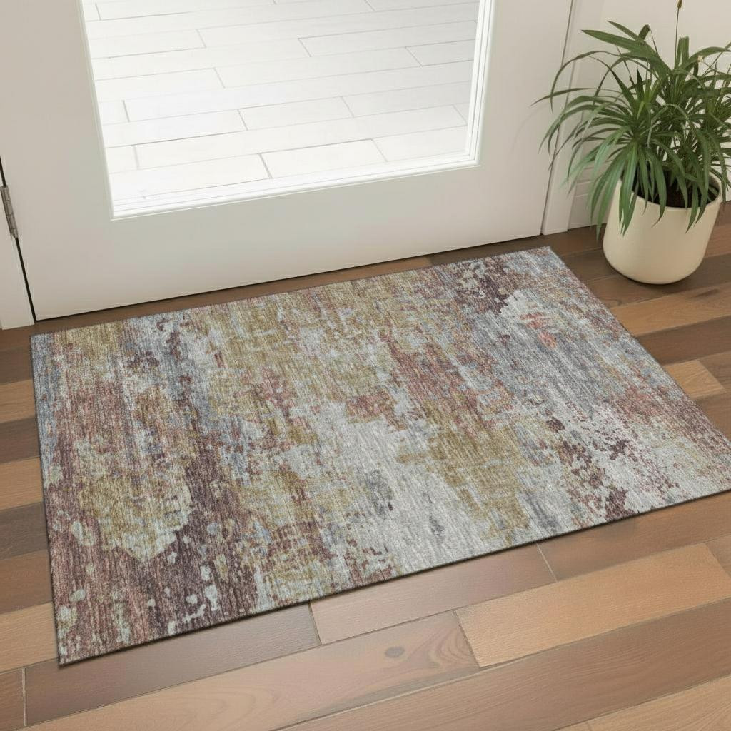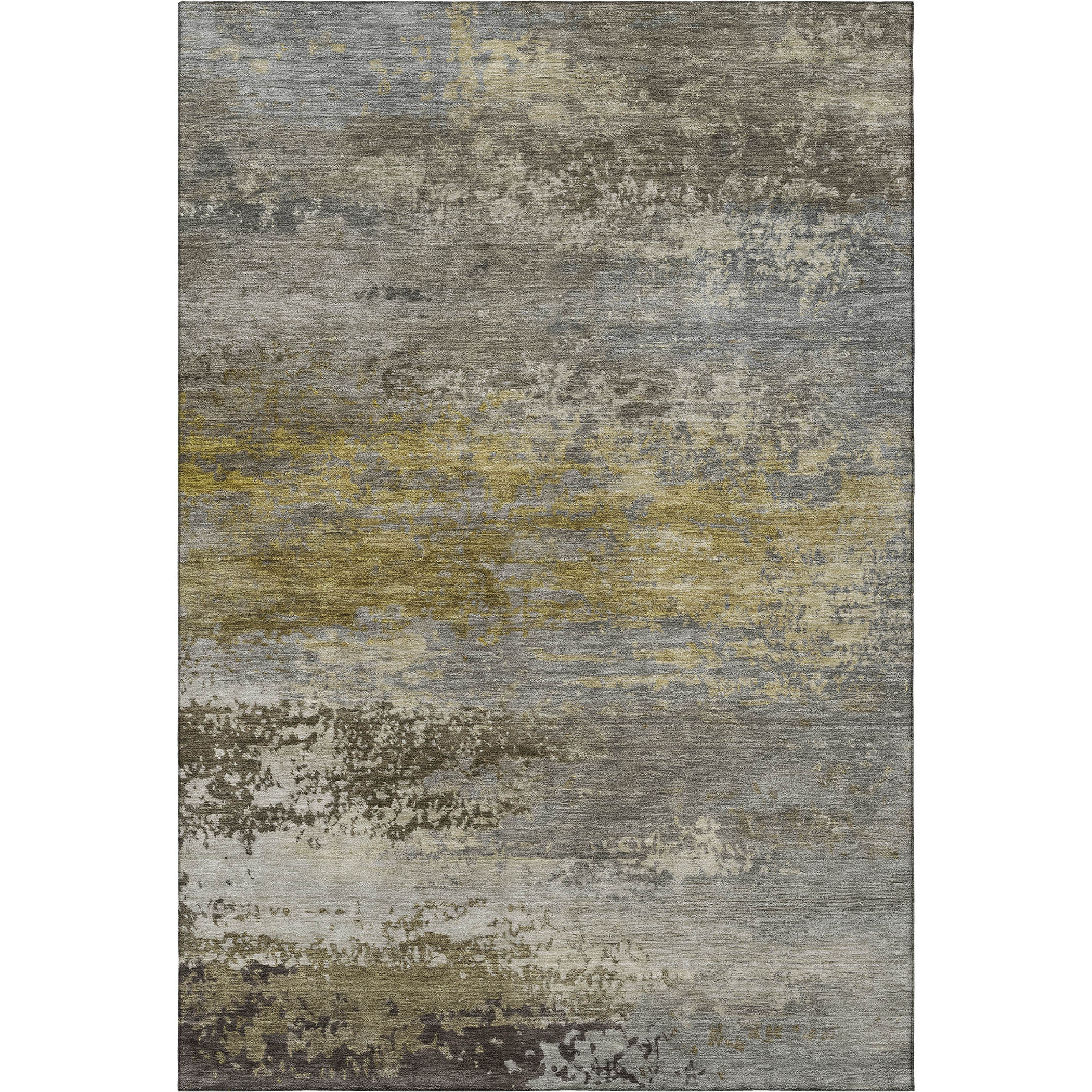 This 3-foot x 5-foot taupe and gold abstract washable area rug with uv protection, is a great way to add warmth to a room. Ideal for spaces with kids and pets, this rug is stain resistant to help repel dirt and spilled liquids. Built to last, this rug crafted from polyester fibers is known for its durability and long lasting appeal. Rugs are a great way to showcase your style, hide imperfections, warm your home and reduce noise. This smaller sized, transitional styled rug is just what you need for your walkway, bedside, in front of door, cabinet, refrigerator, or chair. 36.00-inch h x 60.00-inch w x 0.39-inch d.