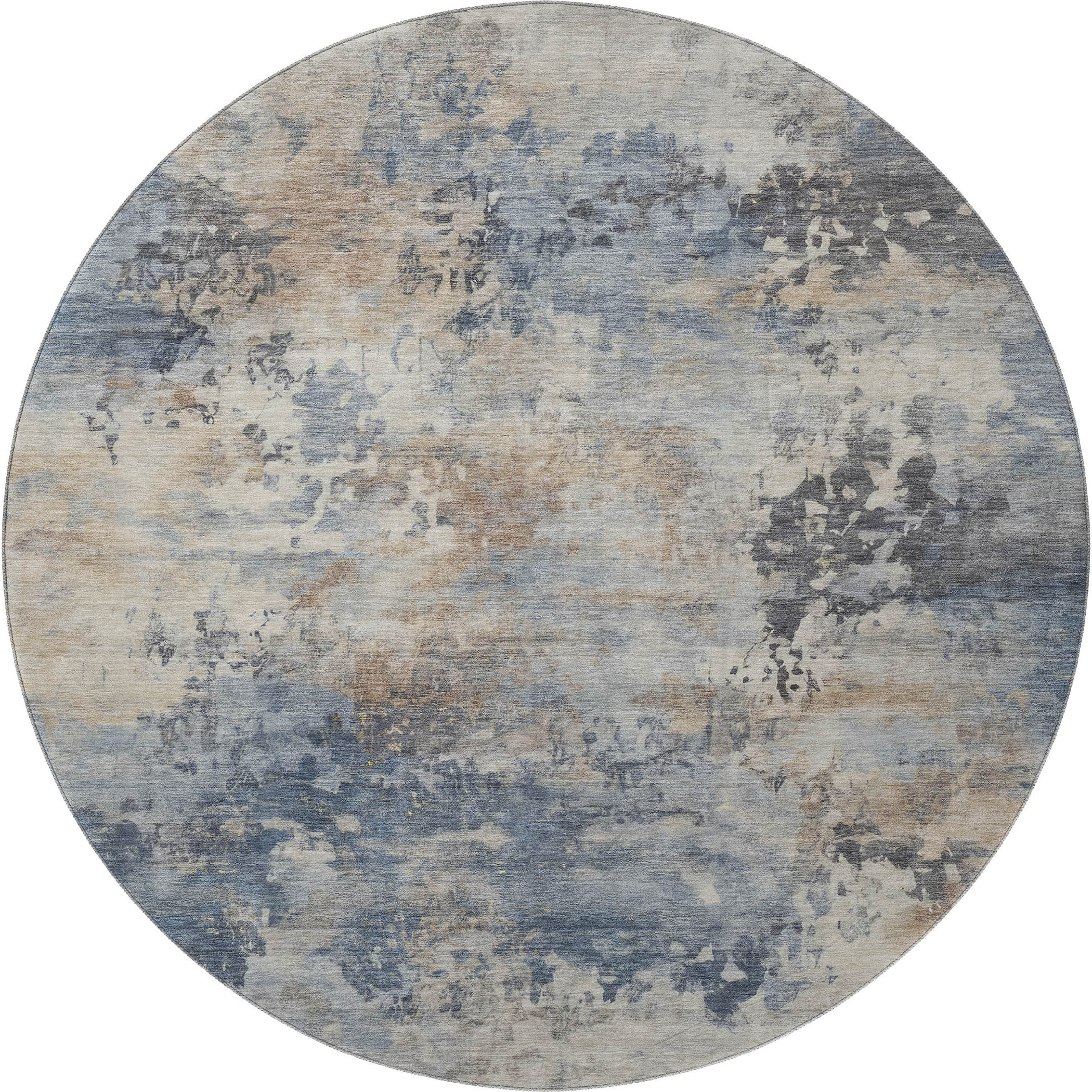 Add great coloration and comfortable texture to your space with this 8-foot denim blue and beige abstract washable round rug with uv protection. Ideal for spaces with kids and pets, this rug is stain resistant to help repel dirt and spilled liquids. Built to last, this rug crafted from polyester fibers is known for its durability and long lasting appeal. Rugs are a great way to showcase your style, hide imperfections, warm your home and reduce noise. This larger sized, transitional styled rug is ready to create a focal point or statement piece in your room. 96.00-inch h x 96.00-inch w x 0.39-inch d.