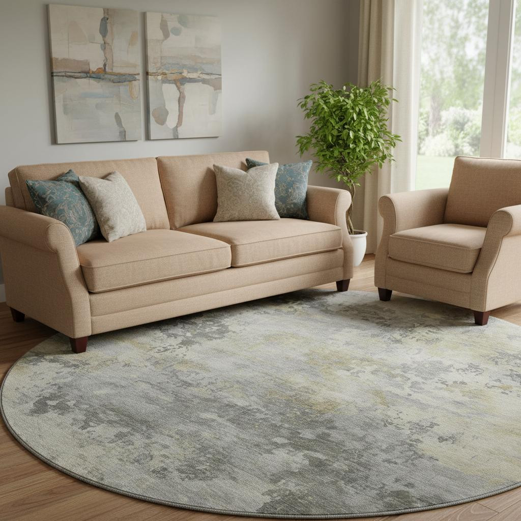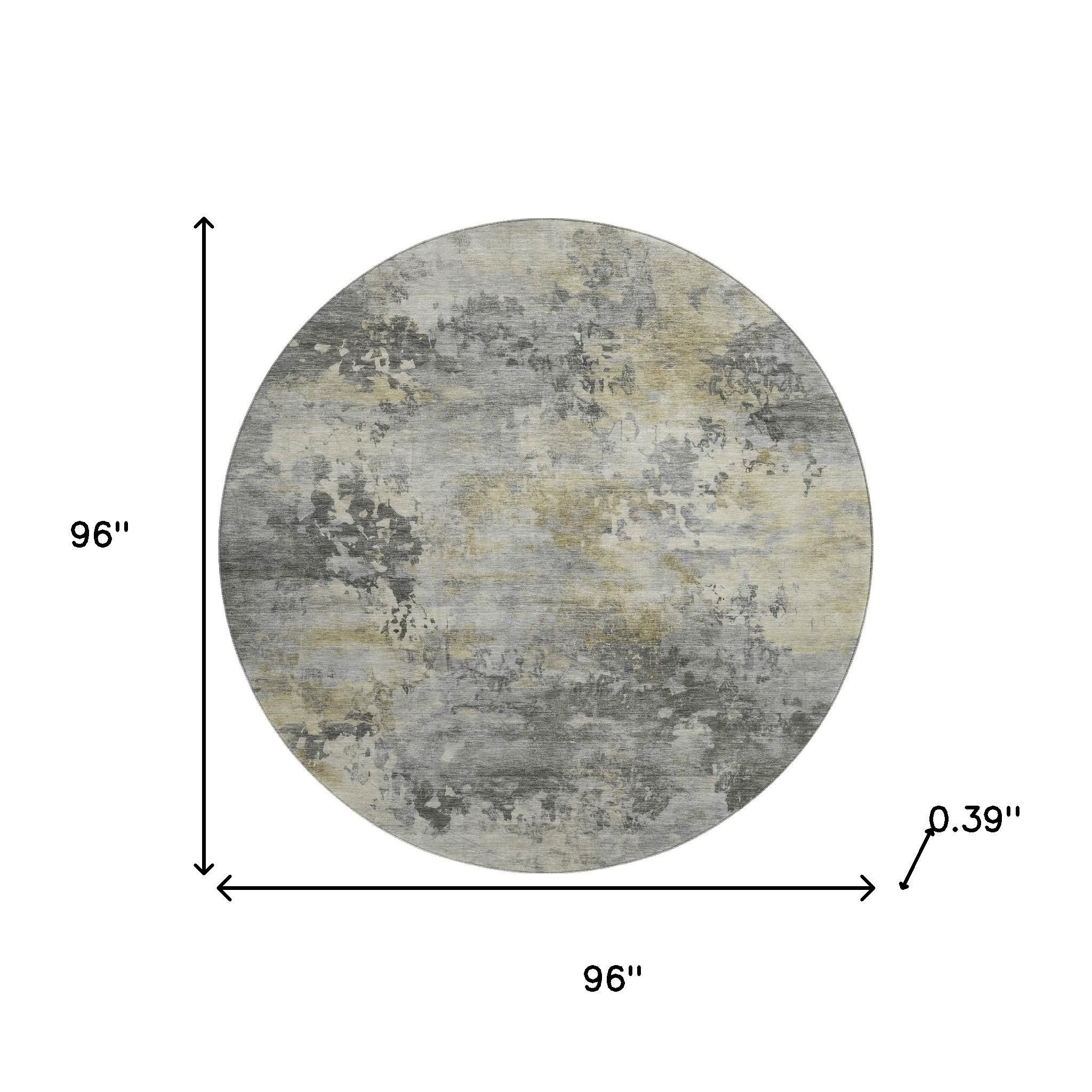 Add great coloration and comfortable texture to your space with this 8-foot pewter and charcoal abstract washable round rug with uv protection. Ideal for spaces with kids and pets, this rug is stain resistant to help repel dirt and spilled liquids. Built to last, this rug crafted from polyester fibers is known for its durability and long lasting appeal. Rugs are a great way to showcase your style, hide imperfections, warm your home and reduce noise. This larger sized, transitional styled rug is ready to create a focal point or statement piece in your room. 96.00-inch h x 96.00-inch w x 0.39-inch d.