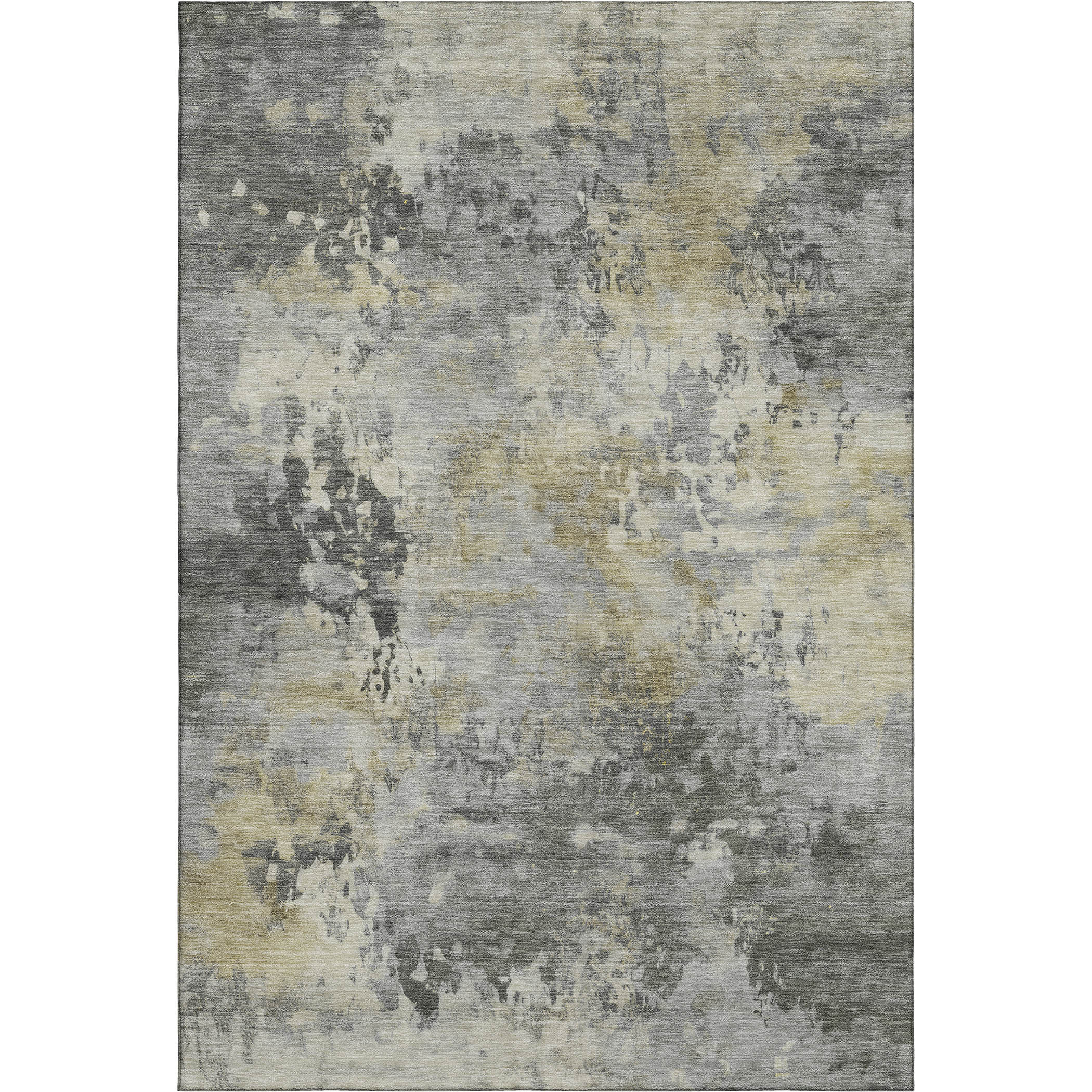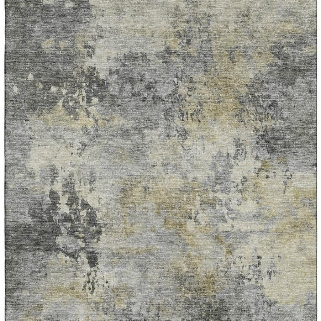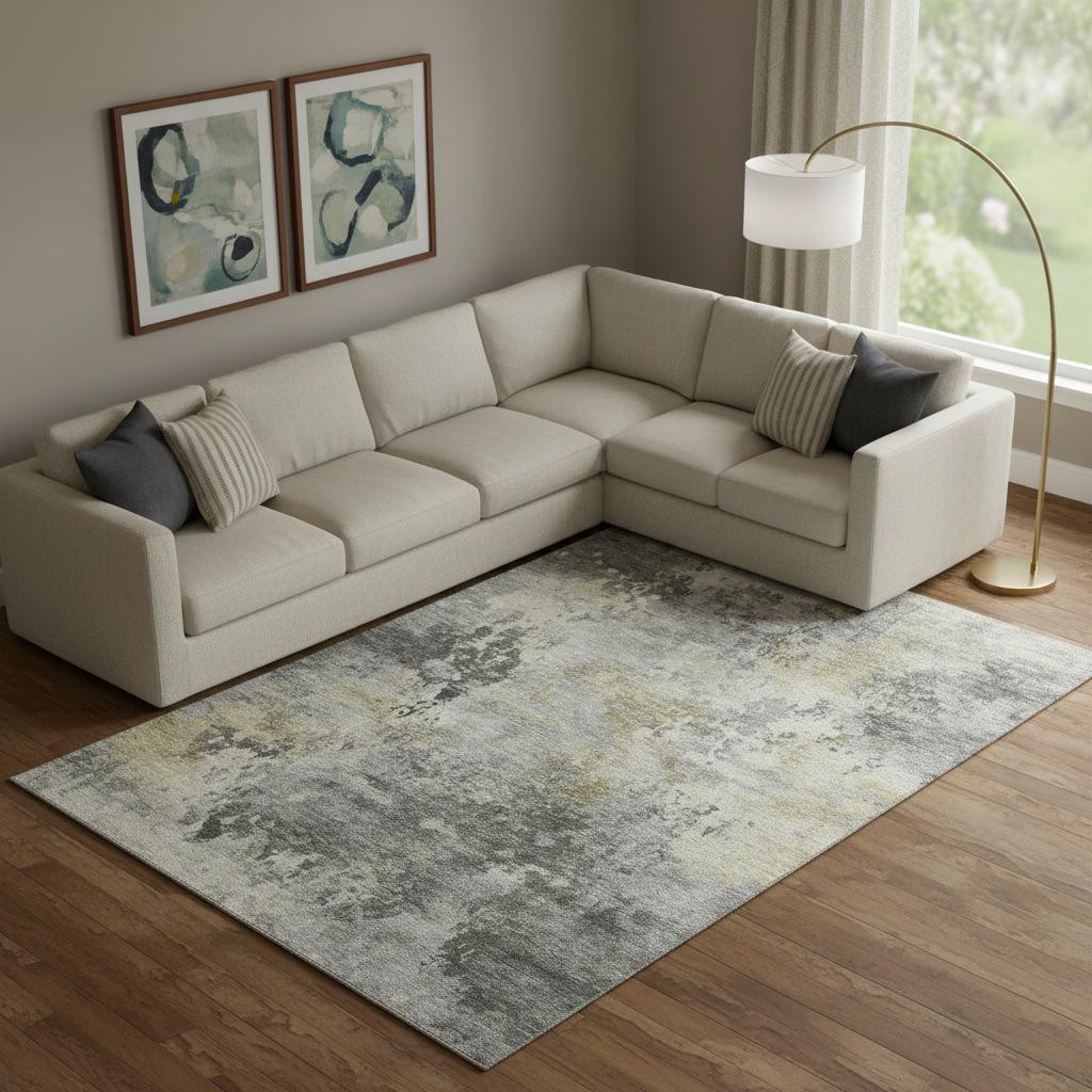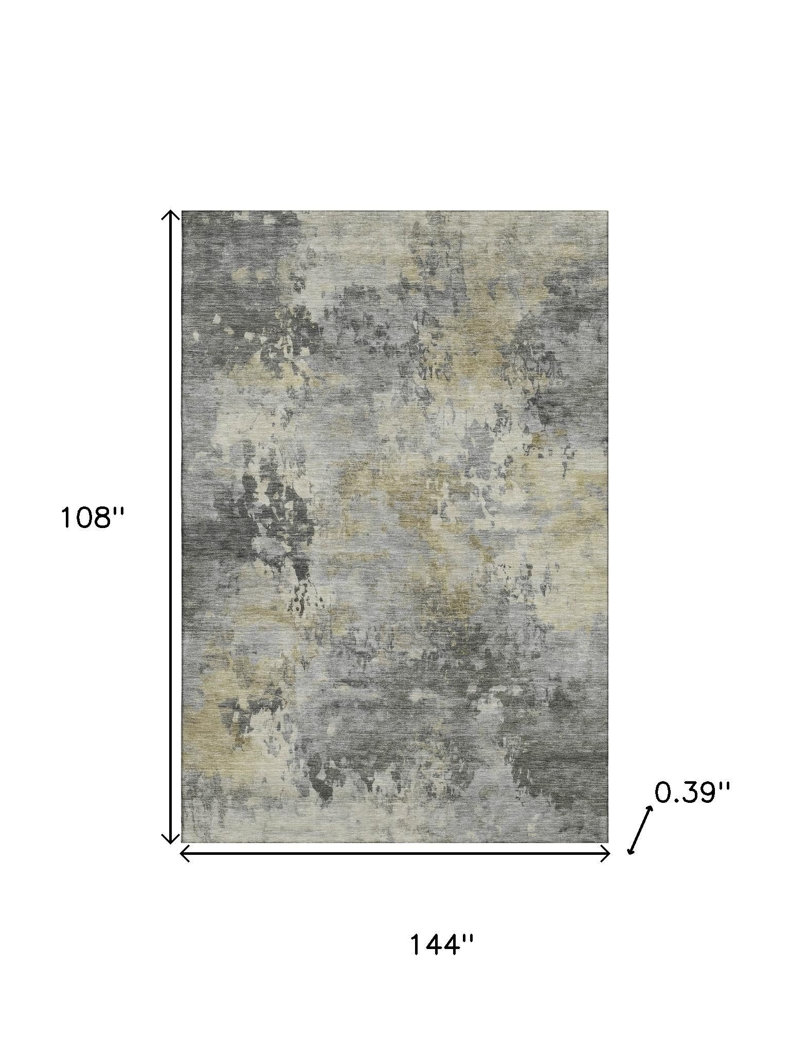 This 9-foot x 12-foot pewter and charcoal abstract washable area rug with uv protection, is a great way to add warmth to a room. Ideal for spaces with kids and pets, this rug is stain resistant to help repel dirt and spilled liquids. Built to last, this rug crafted from polyester fibers is known for its durability and long lasting appeal. Rugs are a great way to showcase your style, hide imperfections, warm your home and reduce noise. This larger sized, transitional styled rug is ready to create a focal point or statement piece in your room. 108.00-inch h x 144.00-inch w x 0.39-inch d.