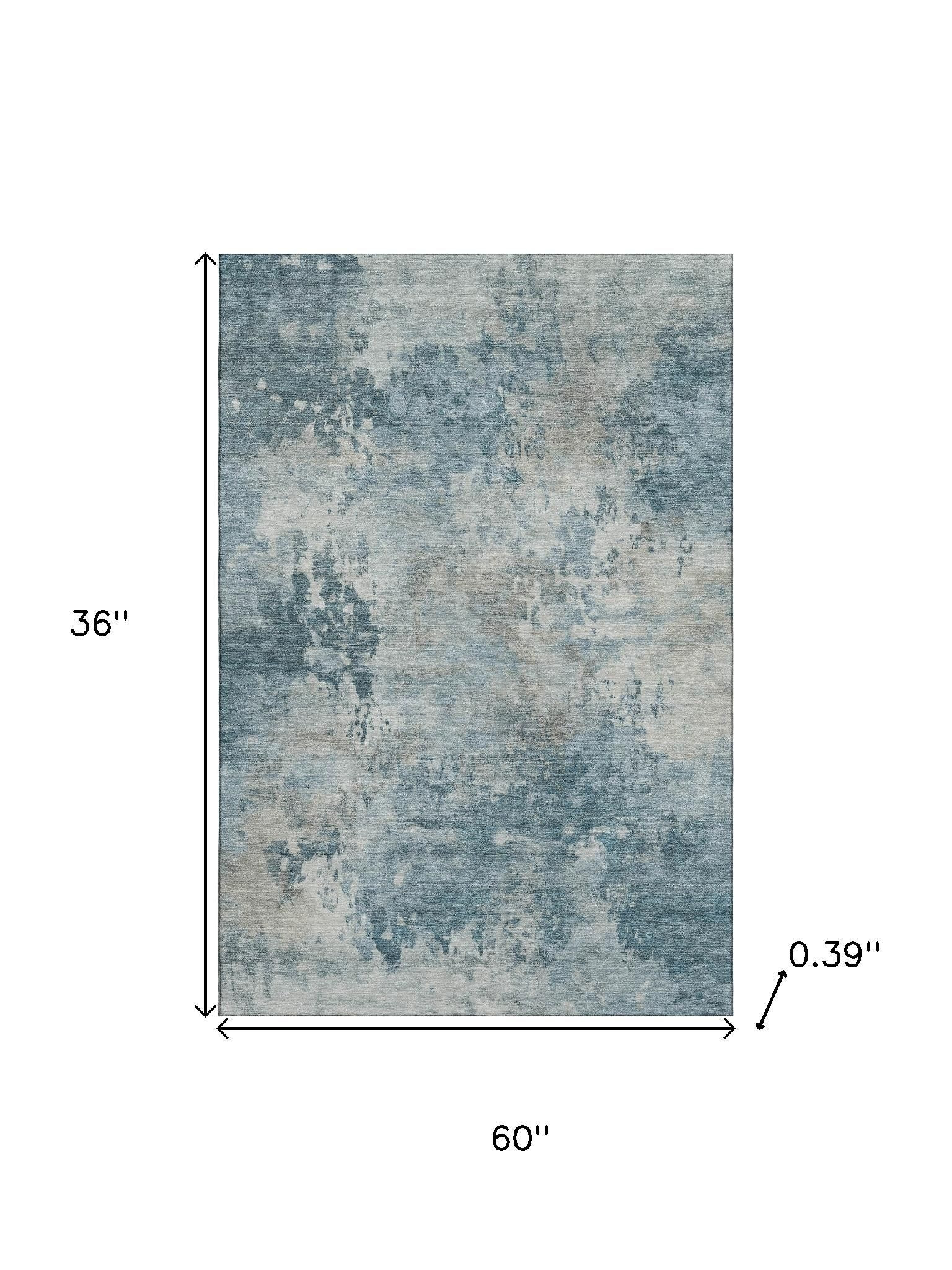 This 3-foot x 5-foot teal and taupe abstract washable area rug with uv protection, is a great way to add warmth to a room. Ideal for spaces with kids and pets, this rug is stain resistant to help repel dirt and spilled liquids. Built to last, this rug crafted from polyester fibers is known for its durability and long lasting appeal. Rugs are a great way to showcase your style, hide imperfections, warm your home and reduce noise. This smaller sized, transitional styled rug is just what you need for your walkway, bedside, in front of door, cabinet, refrigerator, or chair. 36.00-inch h x 60.00-inch w x 0.39-inch d.