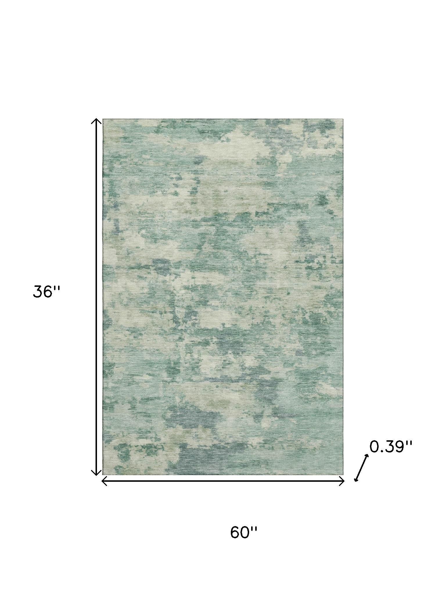 Set an inviting tone in your space with this 3-foot x 5-foot teal and linen abstract washable area rug with uv protection. Ideal for spaces with kids and pets, this rug is stain resistant to help repel dirt and spilled liquids. Built to last, this rug crafted from polyester fibers is known for its durability and long lasting appeal. Rugs are a great way to showcase your style, hide imperfections, warm your home and reduce noise. This smaller sized, transitional styled rug is just what you need for your walkway, bedside, in front of door, cabinet, refrigerator, or chair. 36.00-inch h x 60.00-inch w x 0.39-inch d.