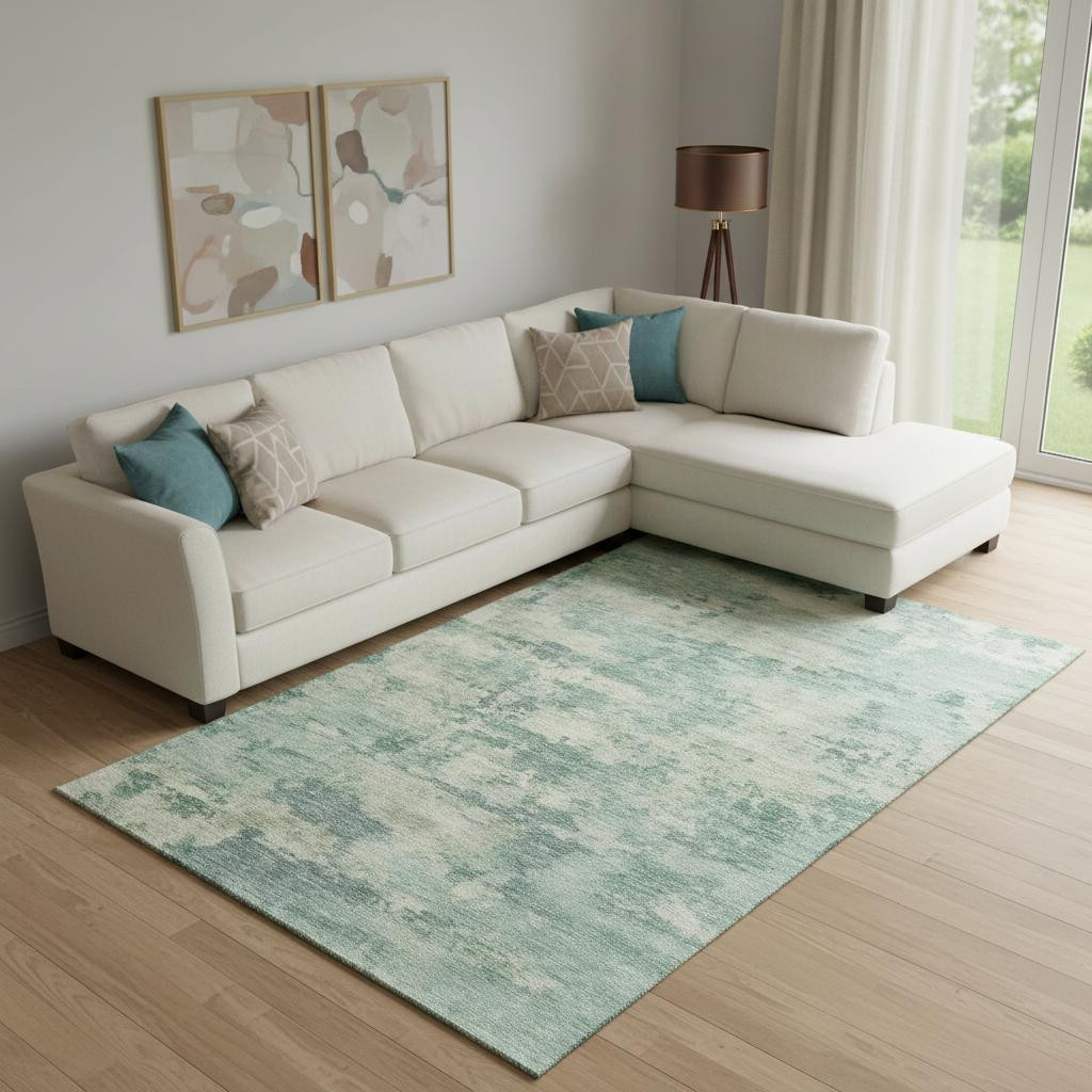 Set an inviting tone in your space with this 10-foot x 14-foot teal and linen abstract washable area rug with uv protection. Ideal for spaces with kids and pets, this rug is stain resistant to help repel dirt and spilled liquids. Built to last, this rug crafted from polyester fibers is known for its durability and long lasting appeal. Rugs are a great way to showcase your style, hide imperfections, warm your home and reduce noise. This larger sized, transitional styled rug is ready to create a focal point or statement piece in your room. 120.00-inch h x 168.00-inch w x 0.39-inch d.