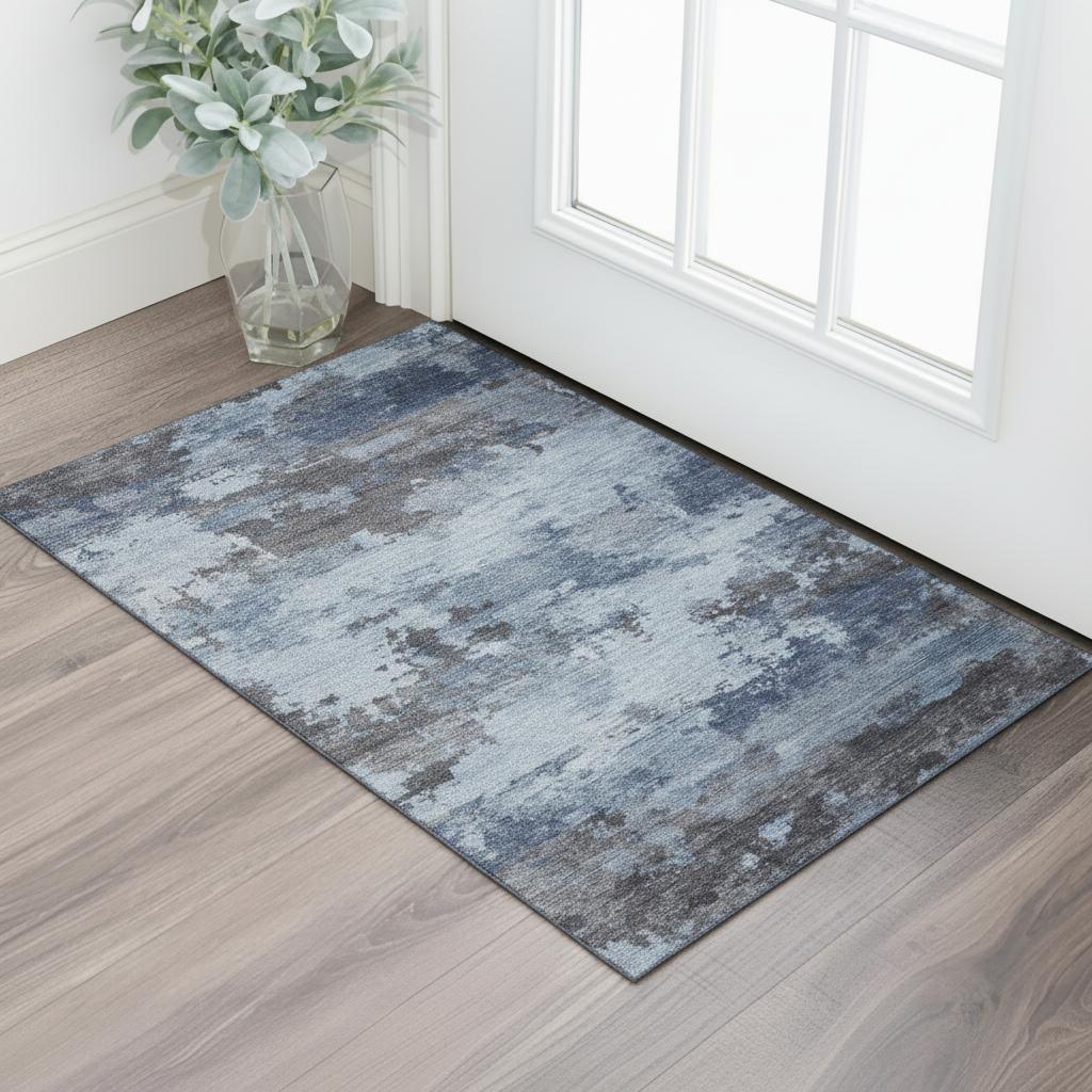 Add some artistry to your room with this 3-foot x 5-foot blue and charcoal abstract washable area rug with uv protection. Ideal for spaces with kids and pets, this rug is stain resistant to help repel dirt and spilled liquids. Built to last, this rug crafted from polyester fibers is known for its durability and long lasting appeal. Rugs are a great way to showcase your style, hide imperfections, warm your home and reduce noise. This smaller sized, transitional styled rug is just what you need for your walkway, bedside, in front of door, cabinet, refrigerator, or chair. 36.00-inch h x 60.00-inch w x 0.39-inch d.