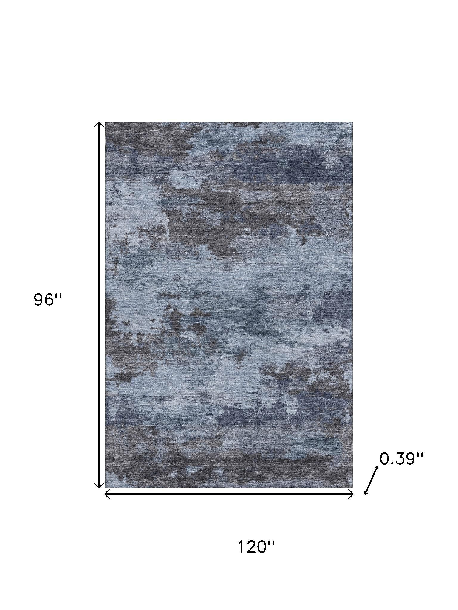 Add some artistry to your room with this 8-foot x 10-foot blue and charcoal abstract washable area rug with uv protection. Ideal for spaces with kids and pets, this rug is stain resistant to help repel dirt and spilled liquids. Built to last, this rug crafted from polyester fibers is known for its durability and long lasting appeal. Rugs are a great way to showcase your style, hide imperfections, warm your home and reduce noise. This larger sized, transitional styled rug is ready to create a focal point or statement piece in your room. 96.00-inch h x 120.00-inch w x 0.39-inch d.