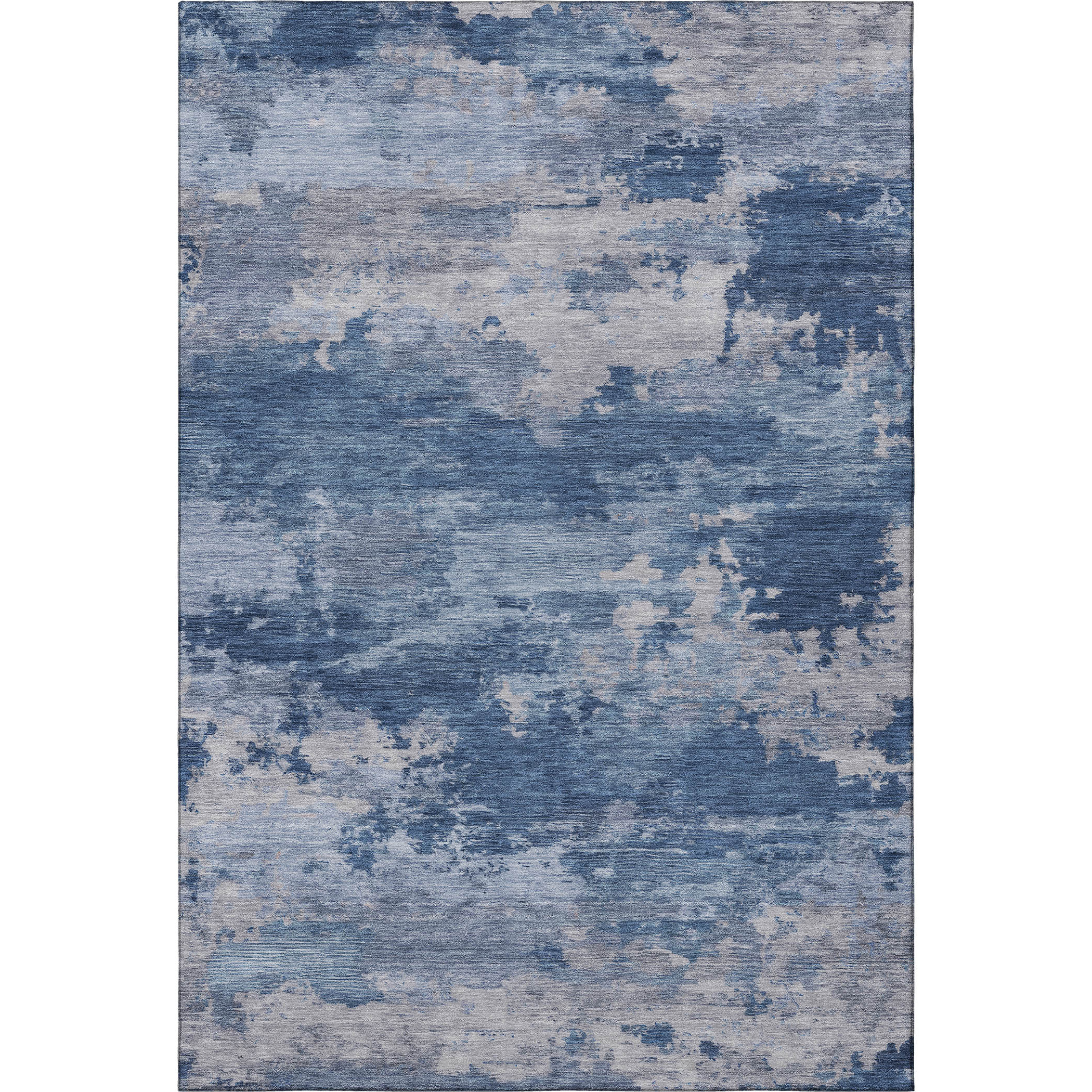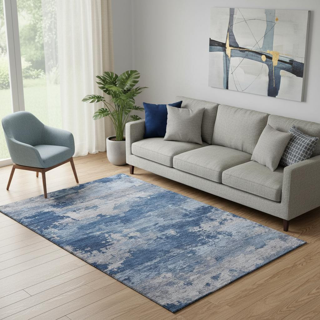 This 5-foot x 8-foot navy blue and denim blue abstract washable area rug with uv protection, is a great way to add warmth to a room. Ideal for spaces with kids and pets, this rug is stain resistant to help repel dirt and spilled liquids. Built to last, this rug crafted from polyester fibers is known for its durability and long lasting appeal. Rugs are a great way to showcase your style, hide imperfections, warm your home and reduce noise. This larger sized, transitional styled rug is ready to create a focal point or statement piece in your room. 60.00-inch h x 90.00-inch w x 0.39-inch d.