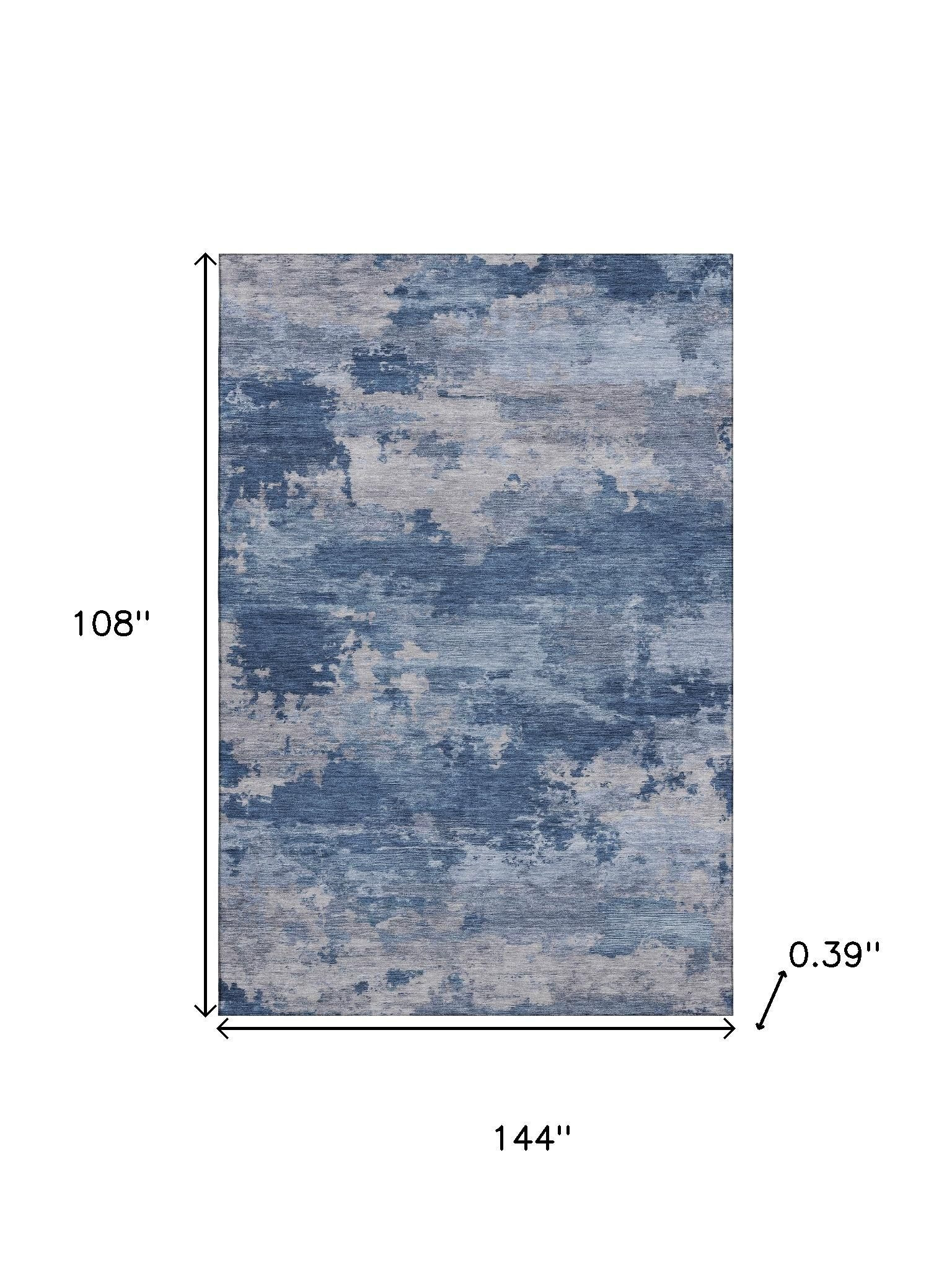 Add great coloration and comfortable texture to your space with this 9-foot x 12-foot navy blue and denim blue abstract washable area rug with uv protection. Ideal for spaces with kids and pets, this rug is stain resistant to help repel dirt and spilled liquids. Built to last, this rug crafted from polyester fibers is known for its durability and long lasting appeal. Rugs are a great way to showcase your style, hide imperfections, warm your home and reduce noise. This larger sized, transitional styled rug is ready to create a focal point or statement piece in your room. 108.00-inch h x 144.00-inch w x 0.39-inch d.