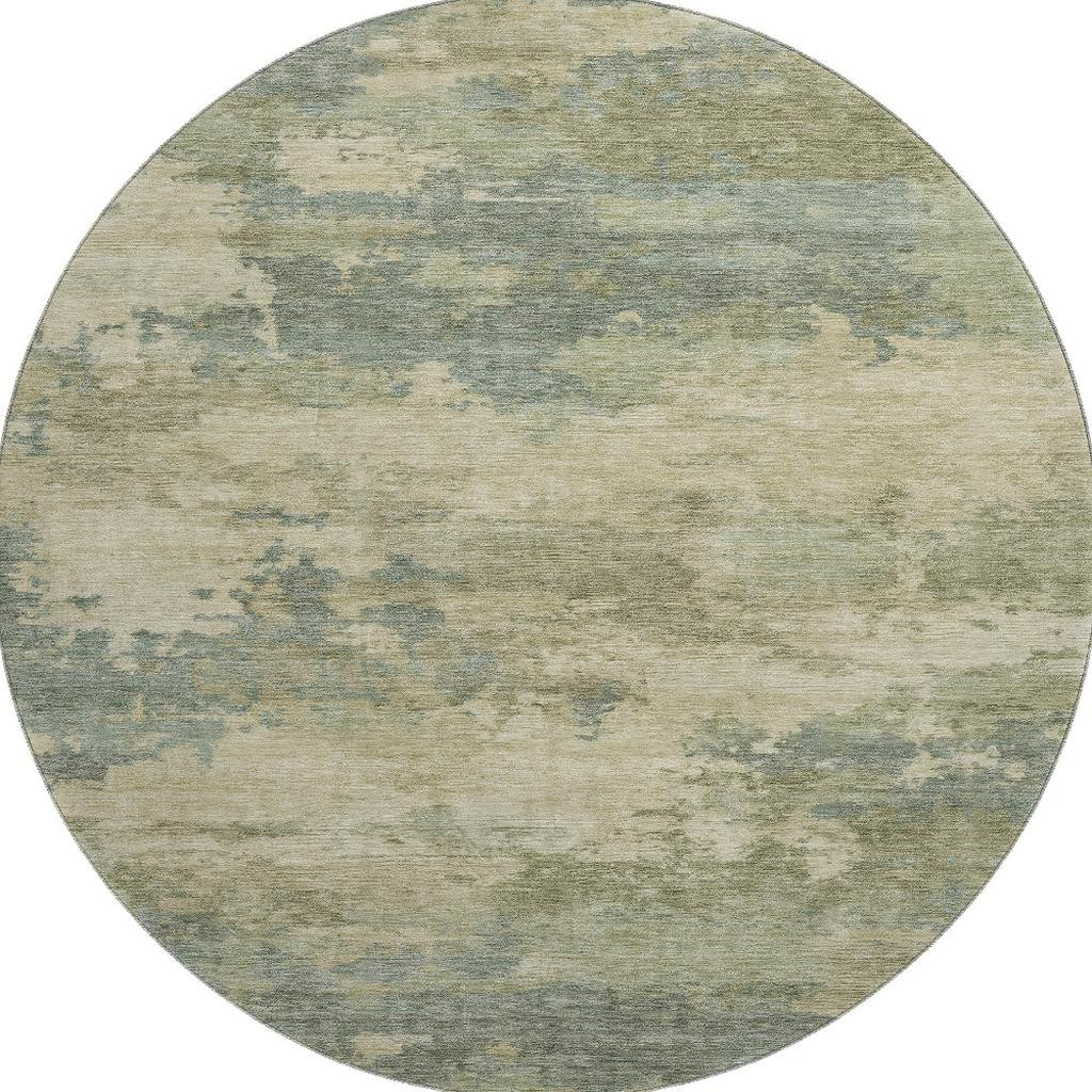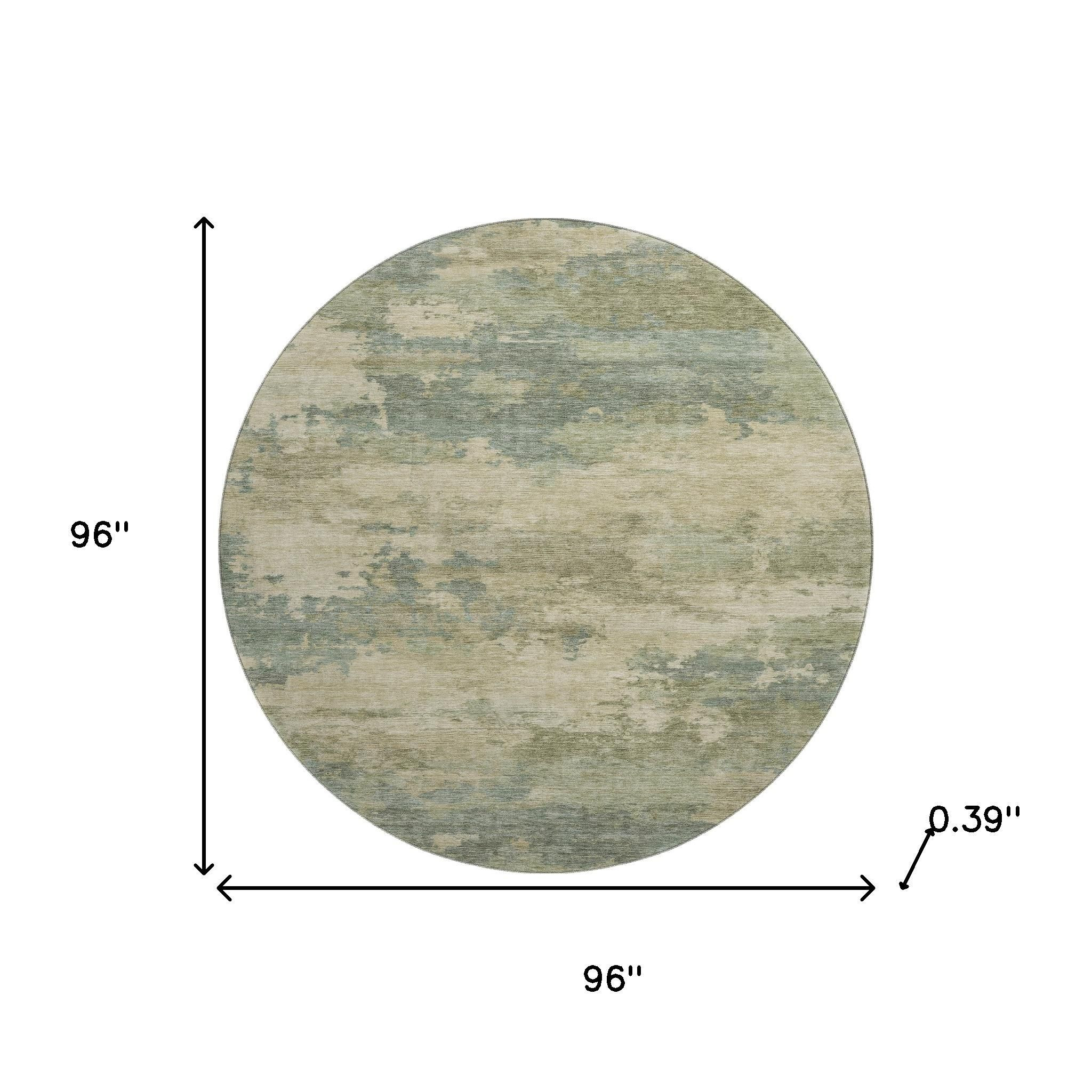 Set an inviting tone in your space with this 8-foot pale aqua and beige abstract washable round rug with uv protection. Ideal for spaces with kids and pets, this rug is stain resistant to help repel dirt and spilled liquids. Built to last, this rug crafted from polyester fibers is known for its durability and long lasting appeal. Rugs are a great way to showcase your style, hide imperfections, warm your home and reduce noise. This larger sized, transitional styled rug is ready to create a focal point or statement piece in your room. 96.00-inch h x 96.00-inch w x 0.39-inch d.
