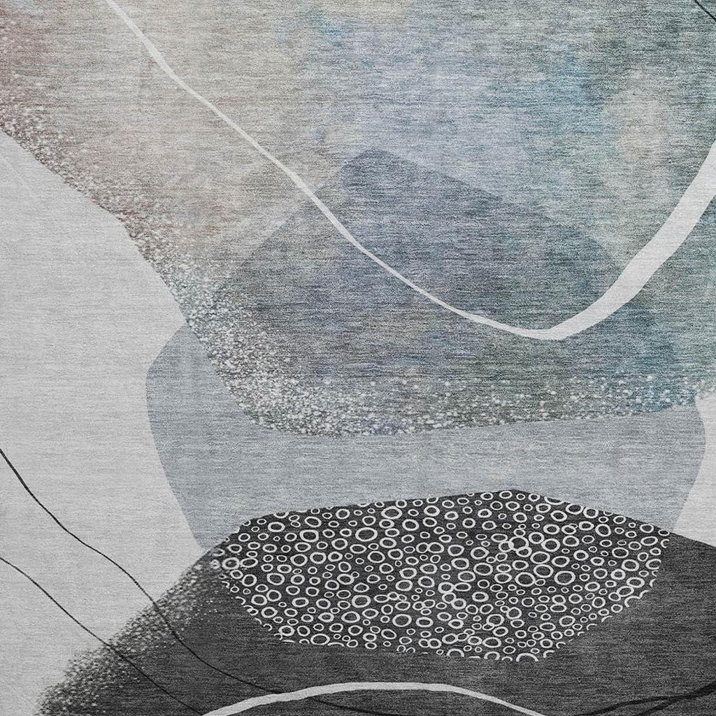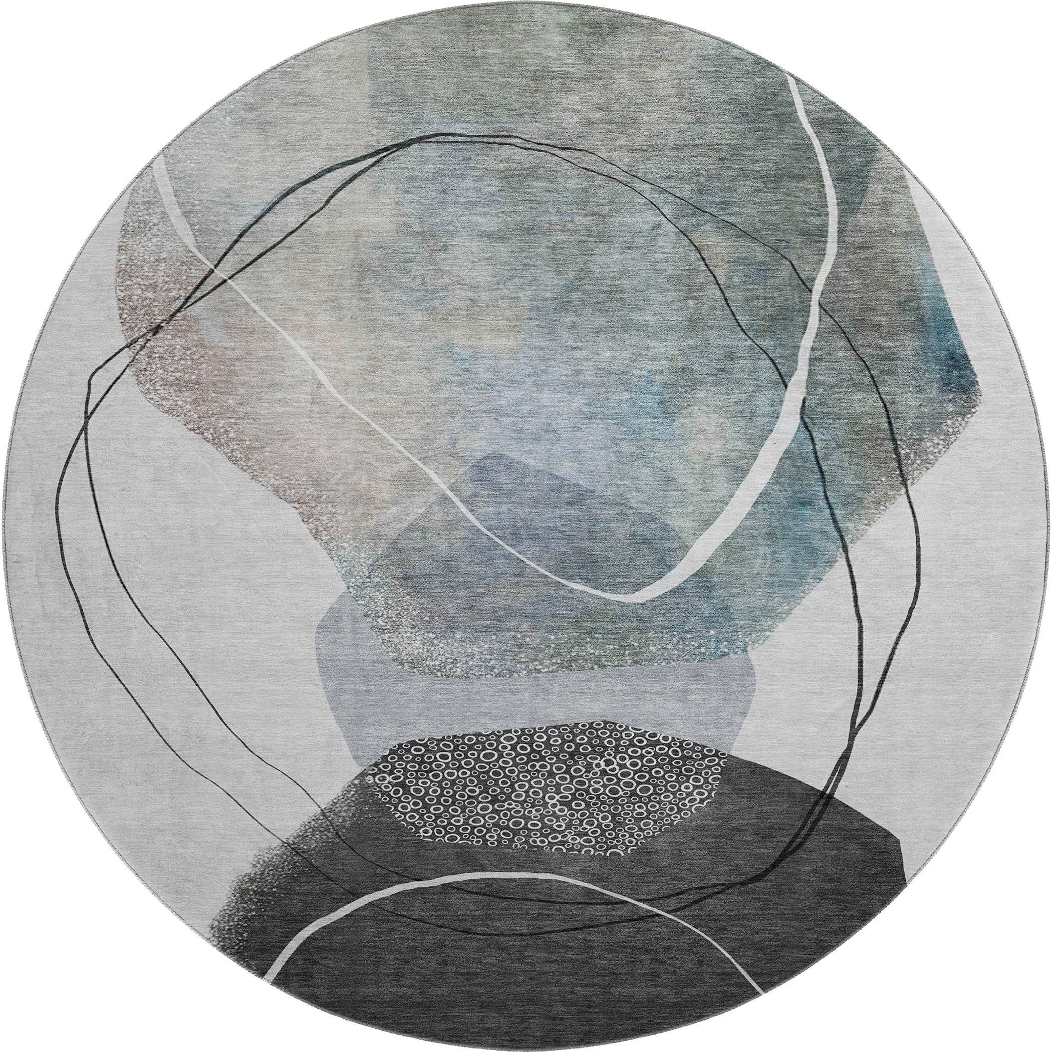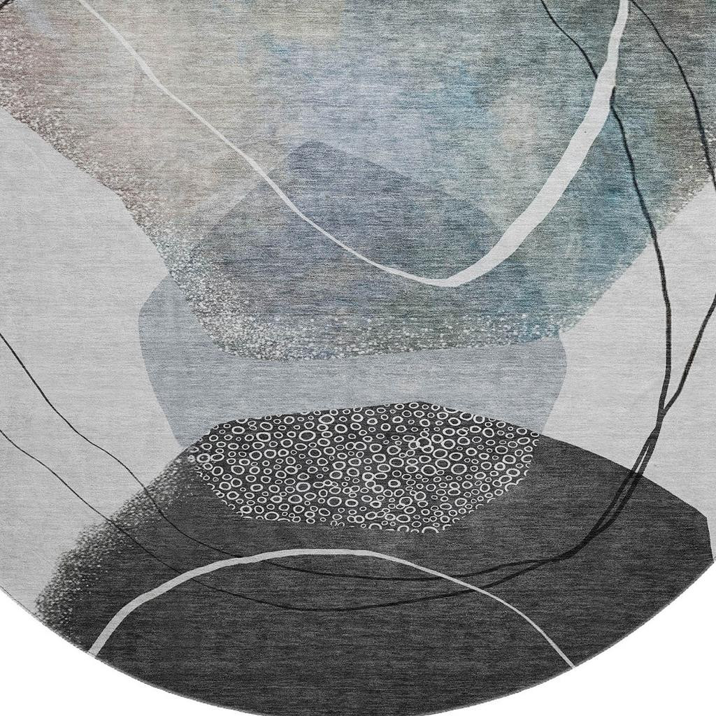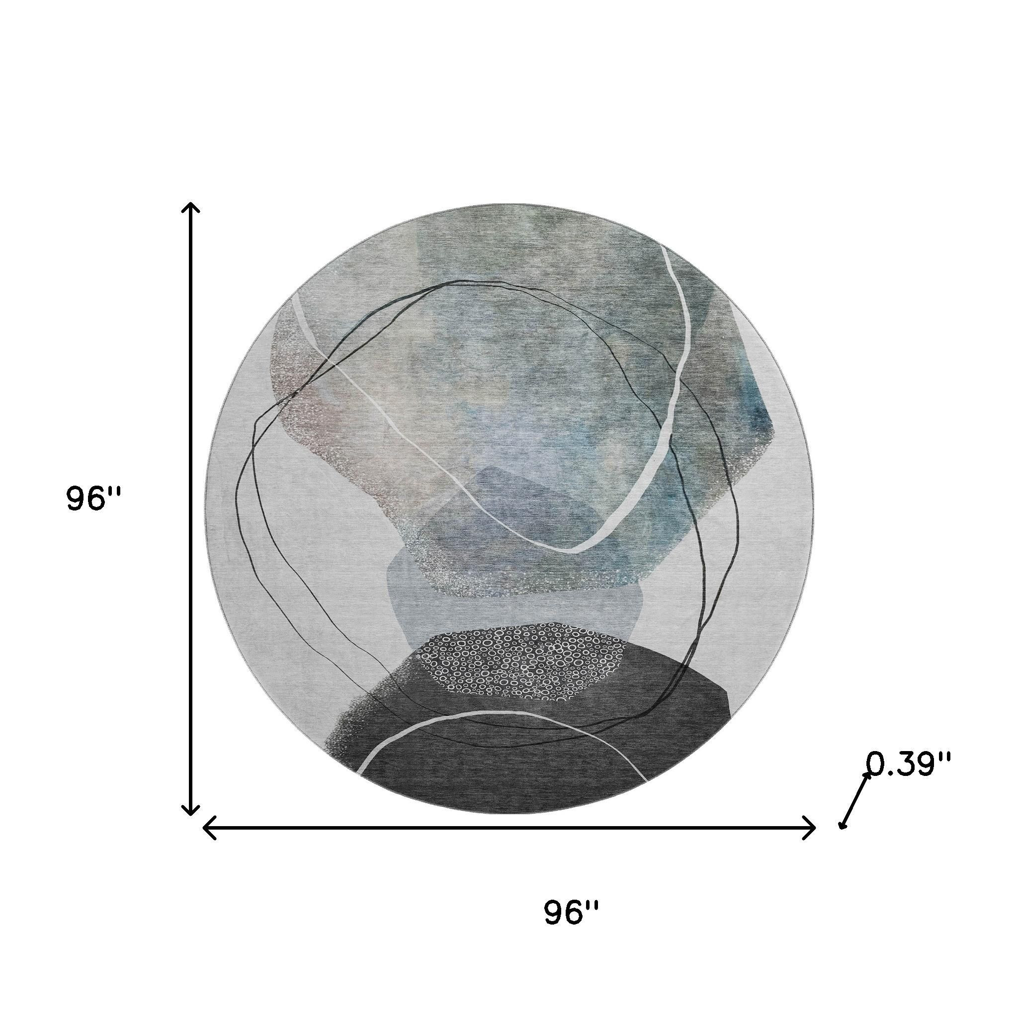 Set an inviting tone in your space with this 8-foot ivory and gray abstract washable round rug with uv protection. Ideal for spaces with kids and pets, this rug is stain resistant to help repel dirt and spilled liquids. Built to last, this rug crafted from polyester fibers is known for its durability and long lasting appeal. Rugs are a great way to showcase your style, hide imperfections, warm your home and reduce noise. This larger sized, transitional styled rug is ready to create a focal point or statement piece in your room. 96.00-inch h x 96.00-inch w x 0.39-inch d.