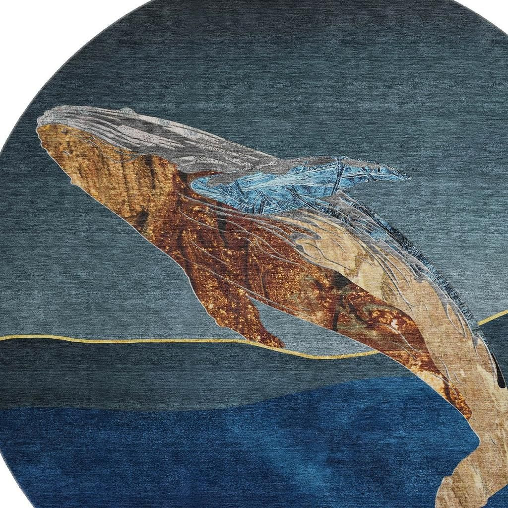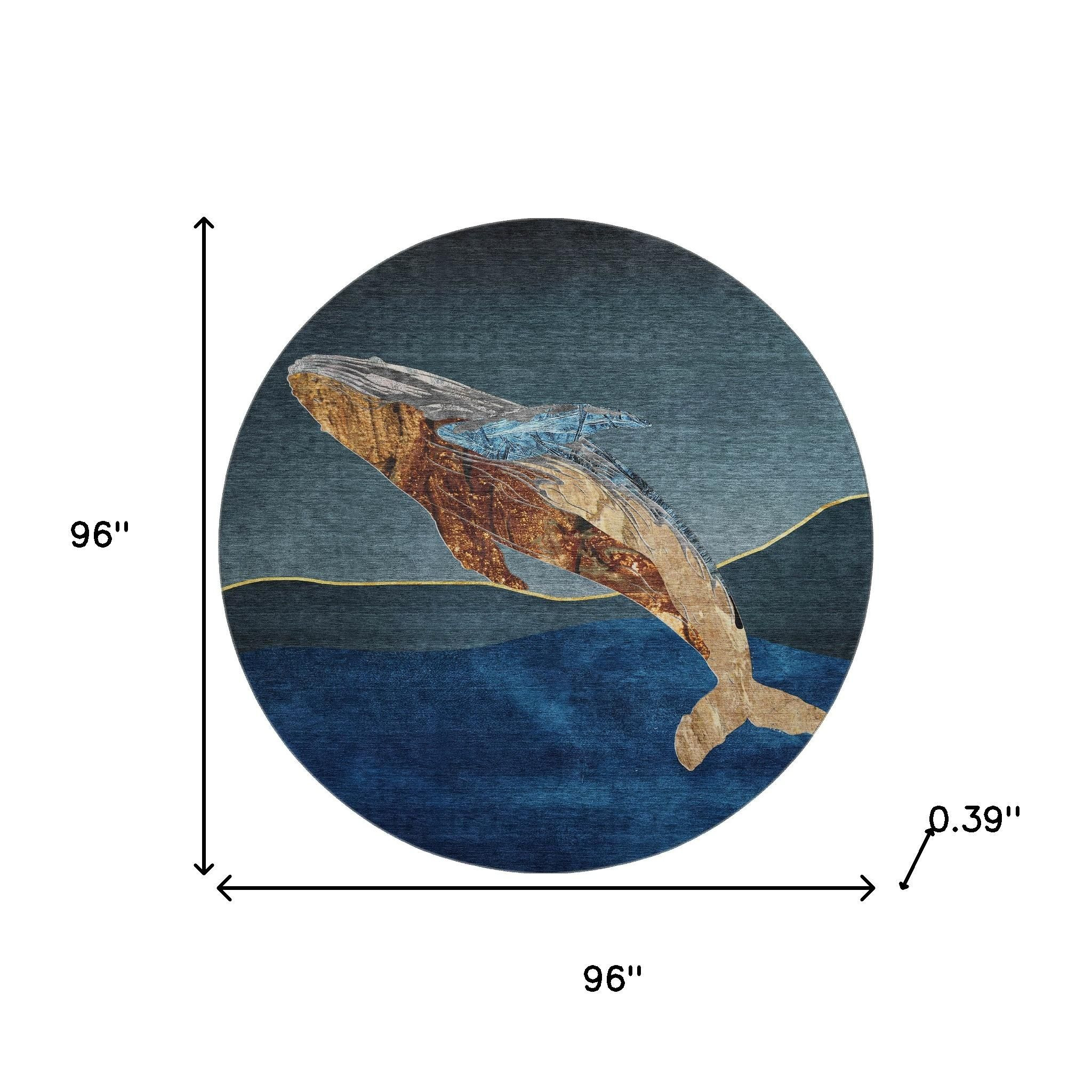 Add great coloration and comfortable texture to your space with this 8-foot blue and brown nautical washable round rug with uv protection. Ideal for spaces with kids and pets, this rug is stain resistant to help repel dirt and spilled liquids. Built to last, this rug crafted from polyester fibers is known for its durability and long lasting appeal. Rugs are a great way to showcase your style, hide imperfections, warm your home and reduce noise. This larger sized, transitional styled rug is ready to create a focal point or statement piece in your room. 96.00-inch h x 96.00-inch w x 0.39-inch d.