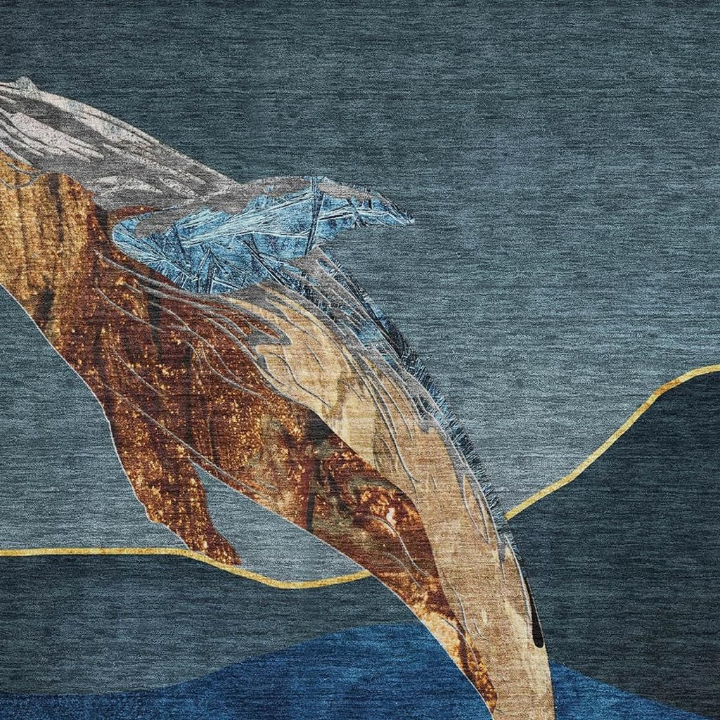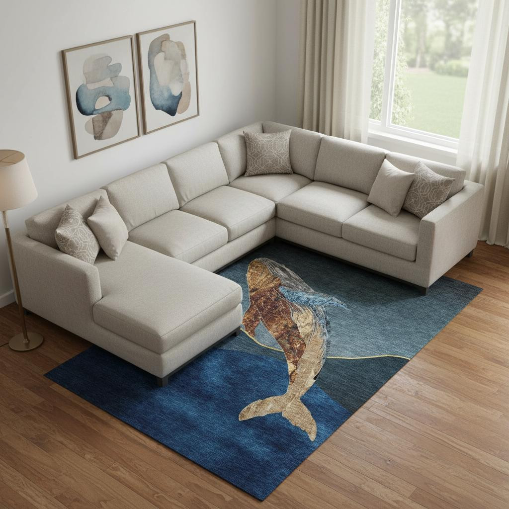 Add some artistry to your room with this 8-foot x 10-foot blue and brown nautical washable area rug with uv protection. Ideal for spaces with kids and pets, this rug is stain resistant to help repel dirt and spilled liquids. Built to last, this rug crafted from polyester fibers is known for its durability and long lasting appeal. Rugs are a great way to showcase your style, hide imperfections, warm your home and reduce noise. This larger sized, transitional styled rug is ready to create a focal point or statement piece in your room. 96.00-inch h x 120.00-inch w x 0.39-inch d.