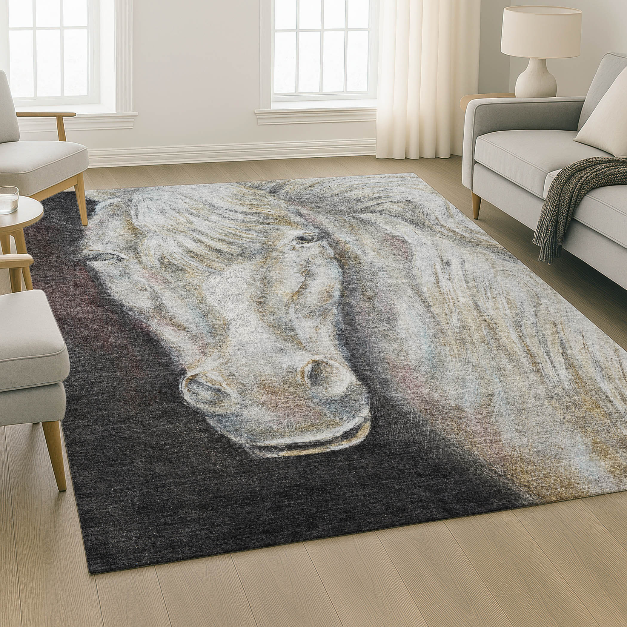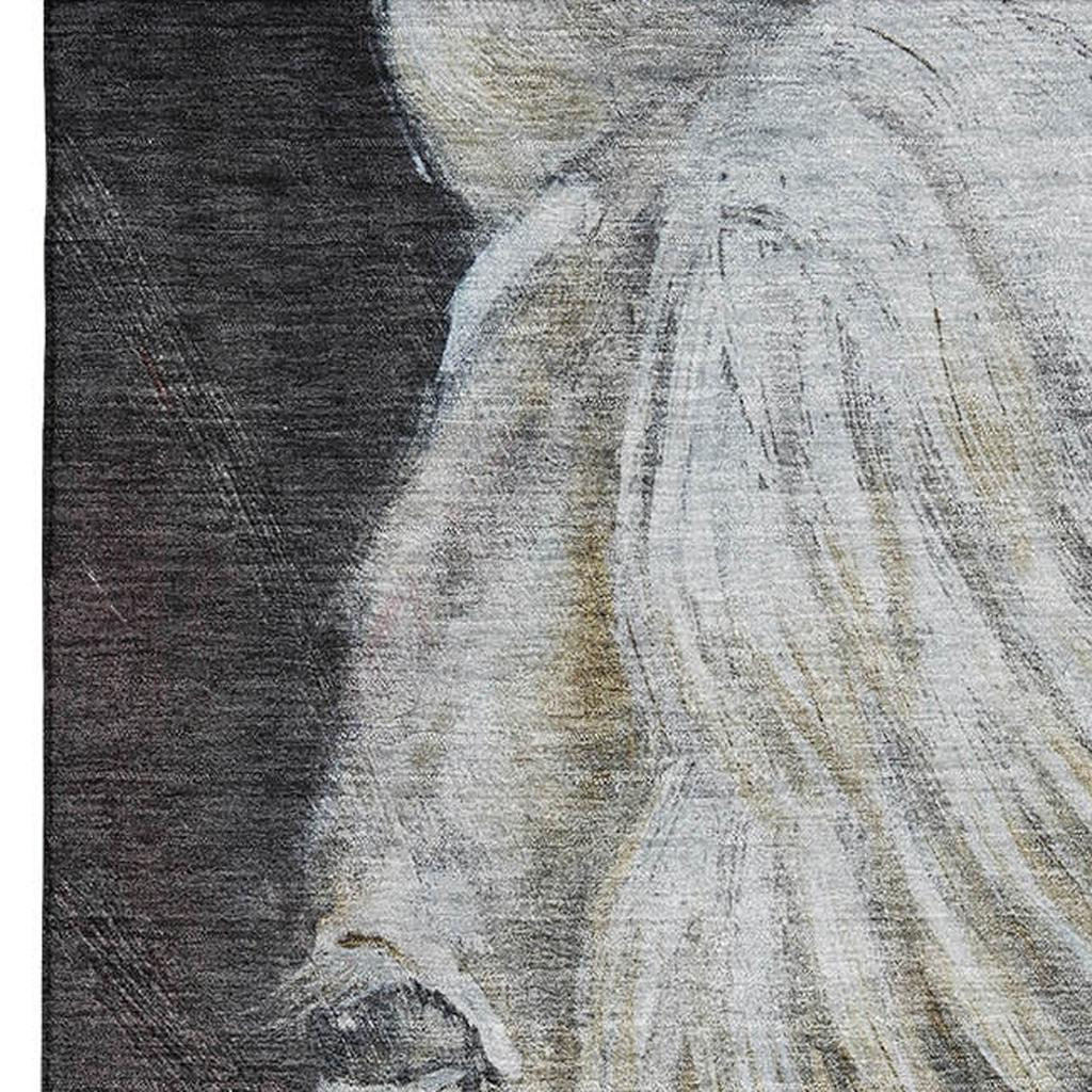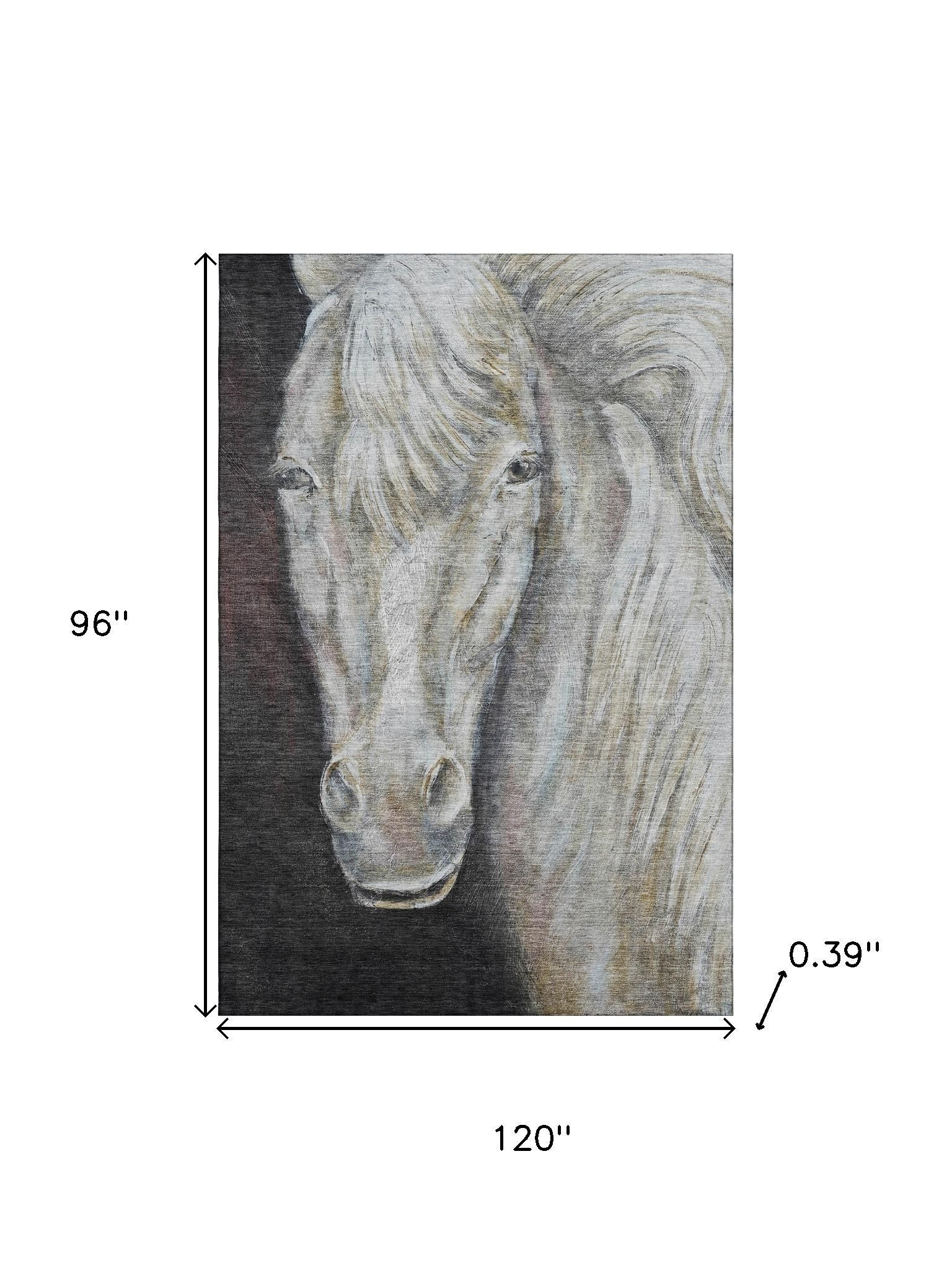 Add some artistry to your room with this 8-foot x 10-foot ivory and charcoal animal print washable area rug with uv protection. Ideal for spaces with kids and pets, this rug is stain resistant to help repel dirt and spilled liquids. Built to last, this rug crafted from polyester fibers is known for its durability and long lasting appeal. Rugs are a great way to showcase your style, hide imperfections, warm your home and reduce noise. This larger sized, transitional styled rug is ready to create a focal point or statement piece in your room. 96.00-inch h x 120.00-inch w x 0.39-inch d.