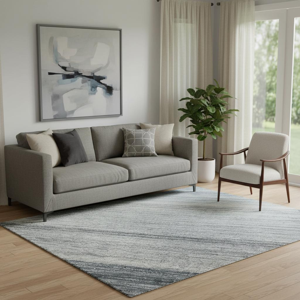 Add great coloration and comfortable texture to your space with this 5-foot x 8-foot denim blue and ivory striped washable area rug with uv protection. Ideal for spaces with kids and pets, this rug is stain resistant to help repel dirt and spilled liquids. Built to last, this rug crafted from polyester fibers is known for its durability and long lasting appeal. Rugs are a great way to showcase your style, hide imperfections, warm your home and reduce noise. This larger sized, transitional styled rug is ready to create a focal point or statement piece in your room. 60.00-inch h x 90.00-inch w x 0.39-inch d.