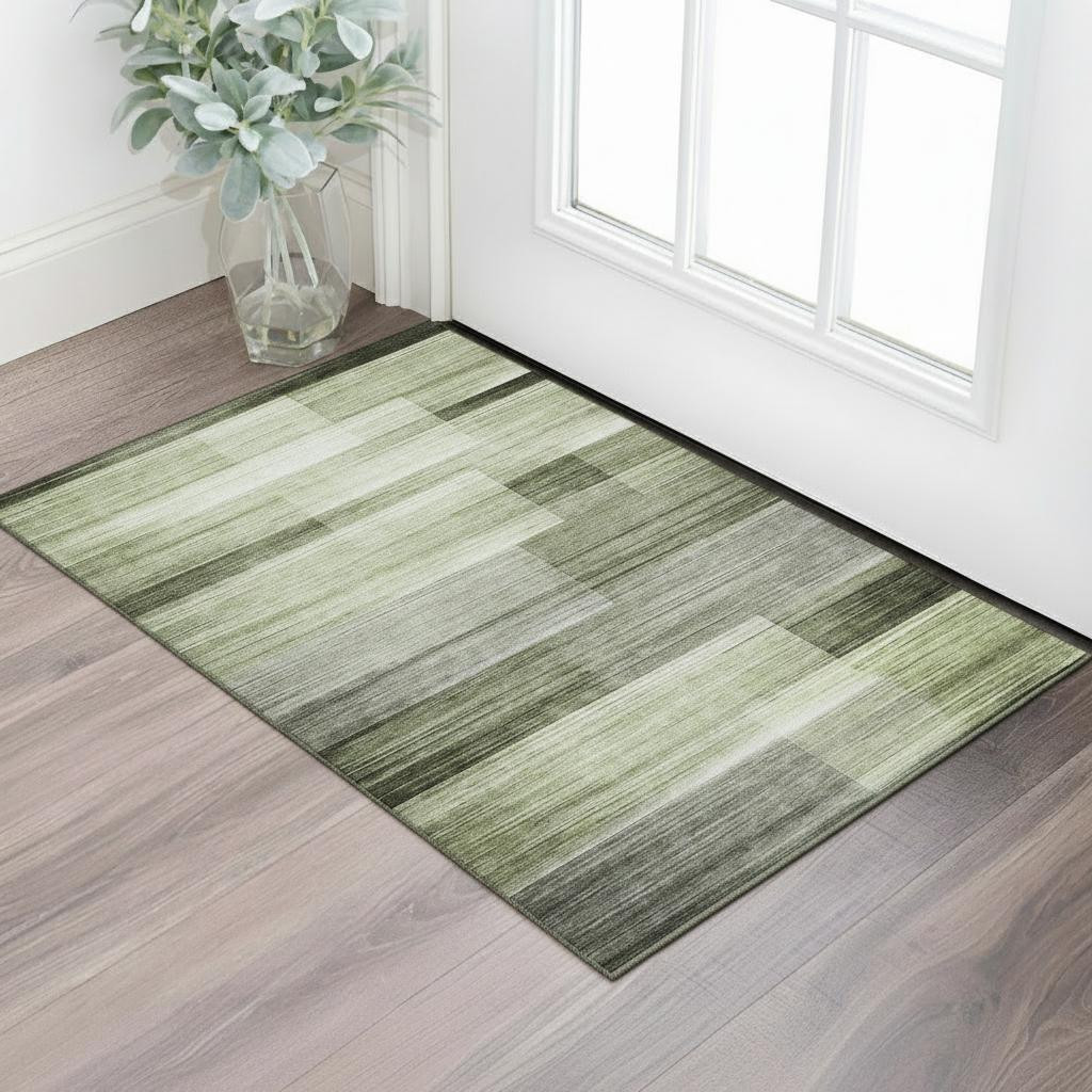 This 3-foot x 5-foot green and ivory striped washable area rug with uv protection, is a great way to add warmth to a room. Ideal for spaces with kids and pets, this rug is stain resistant to help repel dirt and spilled liquids. Built to last, this rug crafted from polyester fibers is known for its durability and long lasting appeal. Rugs are a great way to showcase your style, hide imperfections, warm your home and reduce noise. This smaller sized, transitional styled rug is just what you need for your walkway, bedside, in front of door, cabinet, refrigerator, or chair. 36.00-inch h x 60.00-inch w x 0.39-inch d.