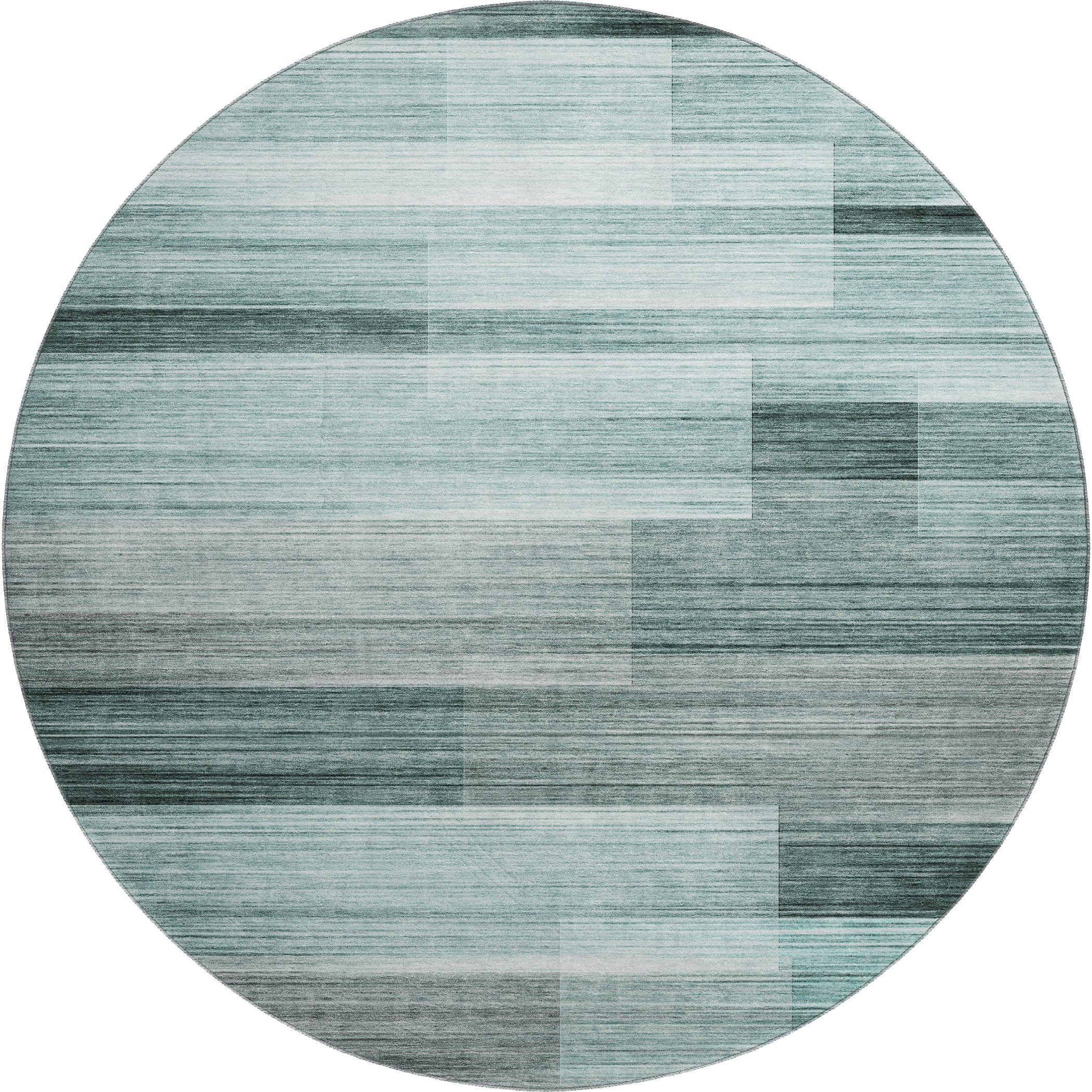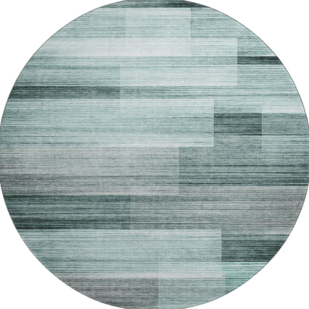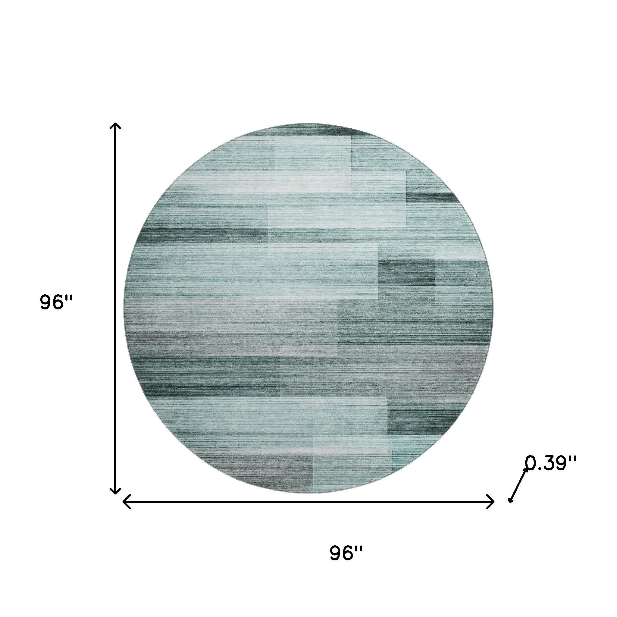 Set an inviting tone in your space with this 8-foot teal and ivory striped washable round rug with uv protection. Ideal for spaces with kids and pets, this rug is stain resistant to help repel dirt and spilled liquids. Built to last, this rug crafted from polyester fibers is known for its durability and long lasting appeal. Rugs are a great way to showcase your style, hide imperfections, warm your home and reduce noise. This larger sized, transitional styled rug is ready to create a focal point or statement piece in your room. 96.00-inch h x 96.00-inch w x 0.39-inch d.