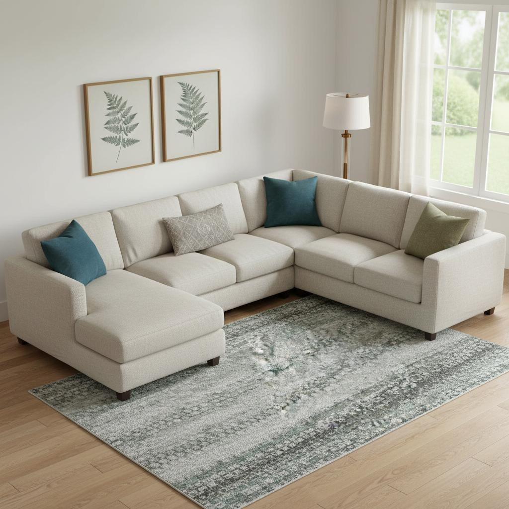 Add great coloration and comfortable texture to your space with this 9-foot x 12-foot teal and ivory striped washable area rug with uv protection. Ideal for spaces with kids and pets, this rug is stain resistant to help repel dirt and spilled liquids. Built to last, this rug crafted from polyester fibers is known for its durability and long lasting appeal. Rugs are a great way to showcase your style, hide imperfections, warm your home and reduce noise. This larger sized, transitional styled rug is ready to create a focal point or statement piece in your room. 108.00-inch h x 144.00-inch w x 0.39-inch d.