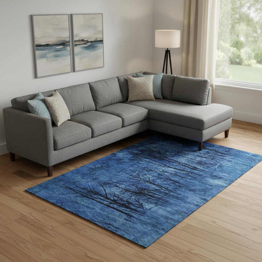 Set an inviting tone in your space with this 8-foot x 10-foot blue and charcoal floral washable area rug with uv protection. Ideal for spaces with kids and pets, this rug is stain resistant to help repel dirt and spilled liquids. Built to last, this rug crafted from polyester fibers is known for its durability and long lasting appeal. Rugs are a great way to showcase your style, hide imperfections, warm your home and reduce noise. This larger sized, transitional styled rug is ready to create a focal point or statement piece in your room. 96.00-inch h x 120.00-inch w x 0.39-inch d.