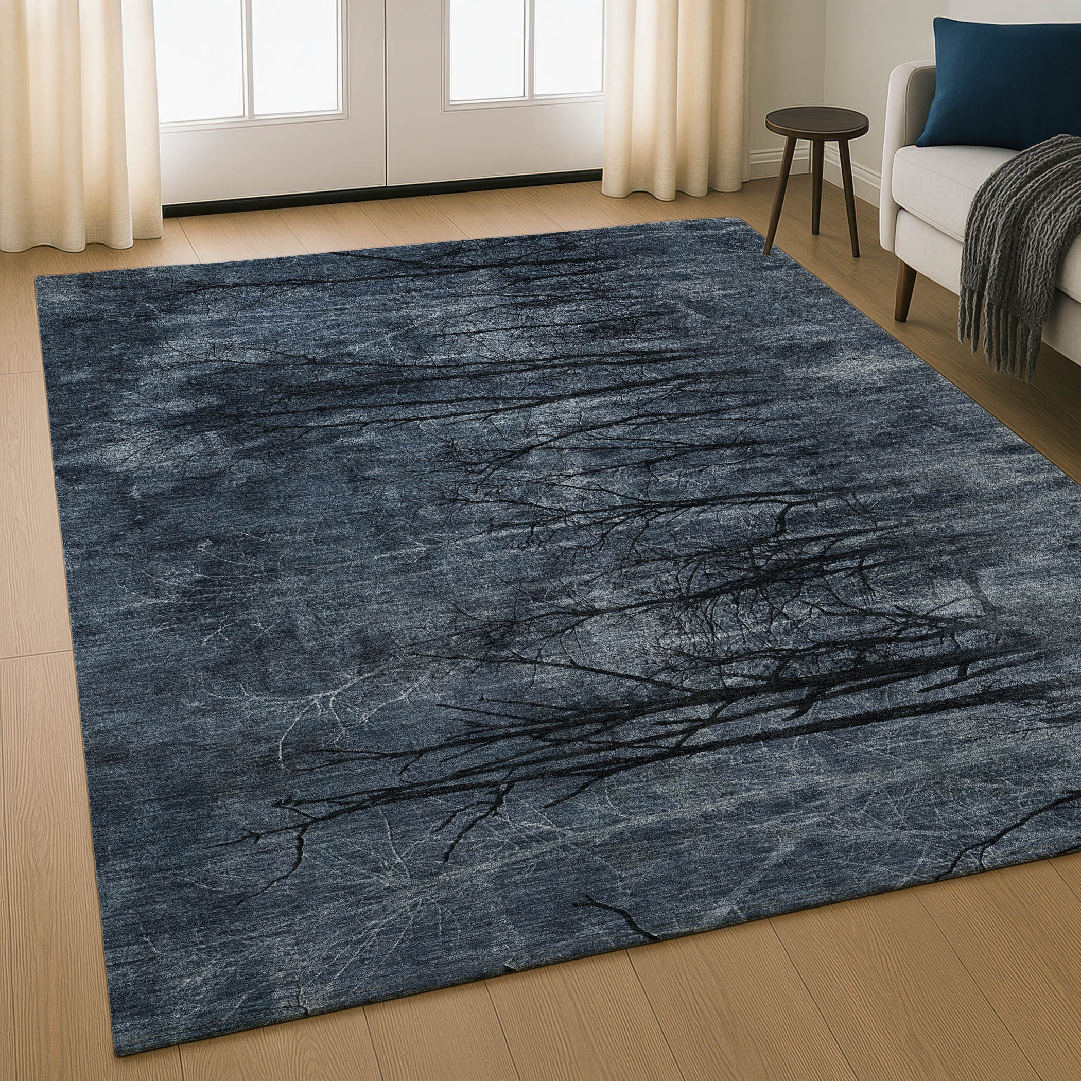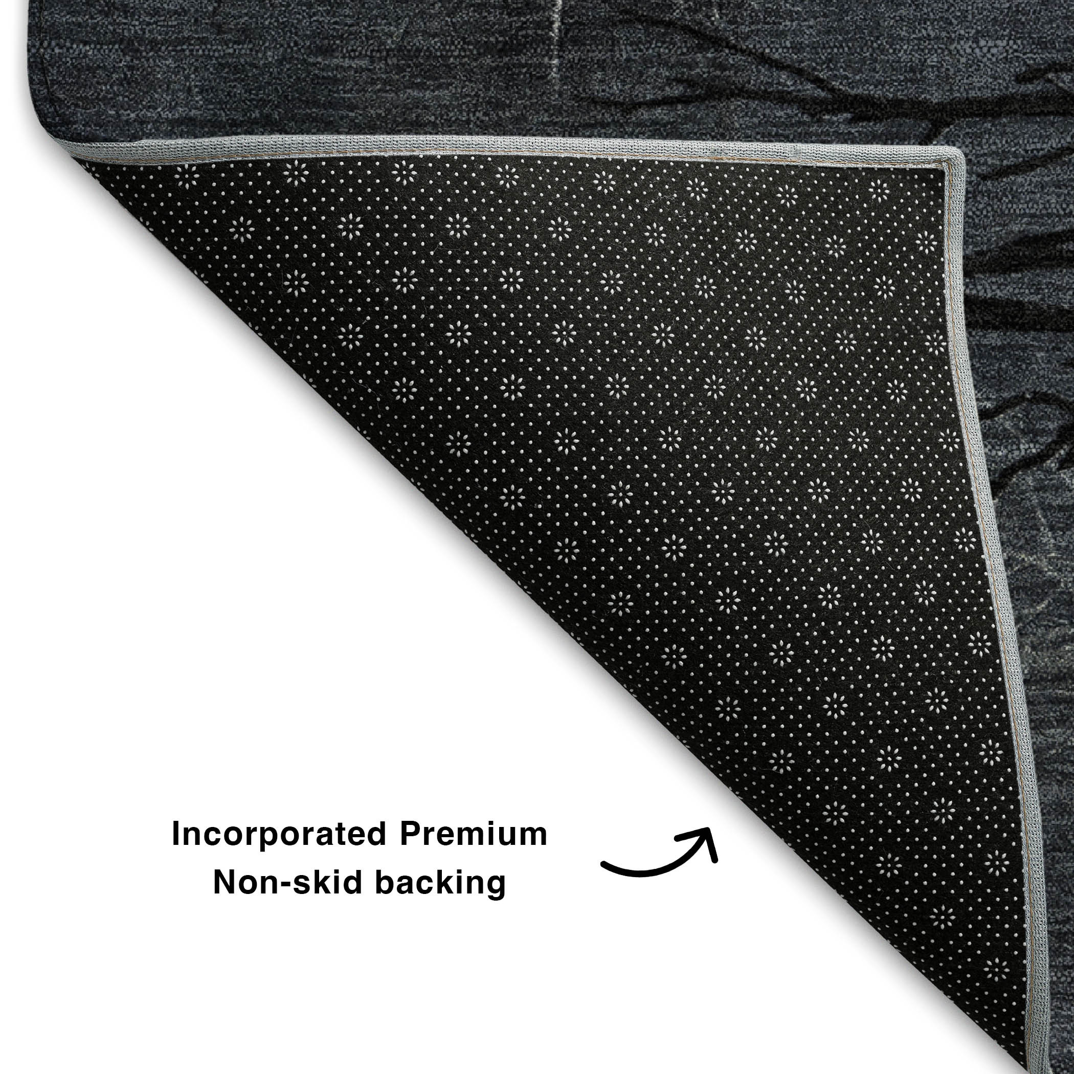 This 5-foot x 8-foot charcoal and gray floral washable area rug with uv protection, is a great way to add warmth to a room. Ideal for spaces with kids and pets, this rug is stain resistant to help repel dirt and spilled liquids. Built to last, this rug crafted from polyester fibers is known for its durability and long lasting appeal. Rugs are a great way to showcase your style, hide imperfections, warm your home and reduce noise. This larger sized, transitional styled rug is ready to create a focal point or statement piece in your room. 60.00-inch h x 90.00-inch w x 0.39-inch d.