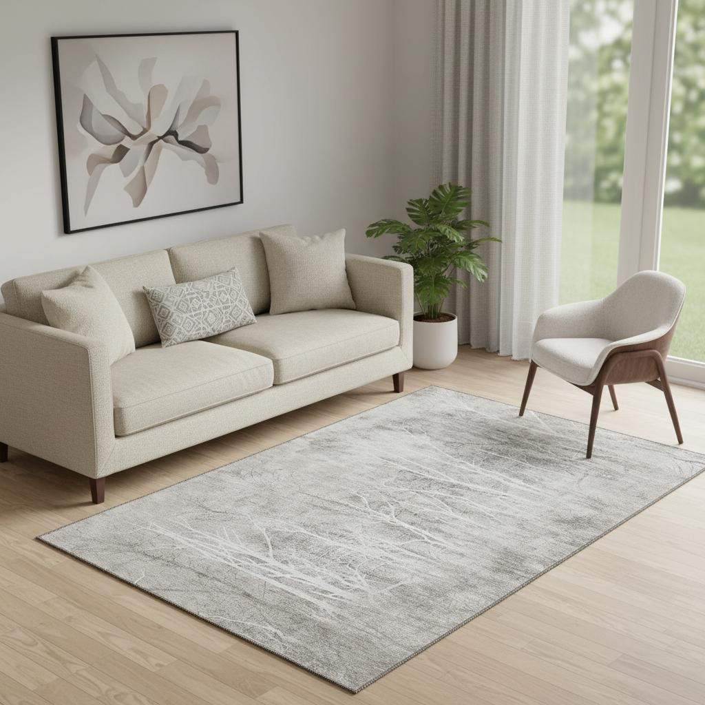 Add some artistry to your room with this 5-foot x 8-foot silver and ivory floral washable area rug with uv protection. Ideal for spaces with kids and pets, this rug is stain resistant to help repel dirt and spilled liquids. Built to last, this rug crafted from polyester fibers is known for its durability and long lasting appeal. Rugs are a great way to showcase your style, hide imperfections, warm your home and reduce noise. This larger sized, transitional styled rug is ready to create a focal point or statement piece in your room. 60.00-inch h x 90.00-inch w x 0.39-inch d.