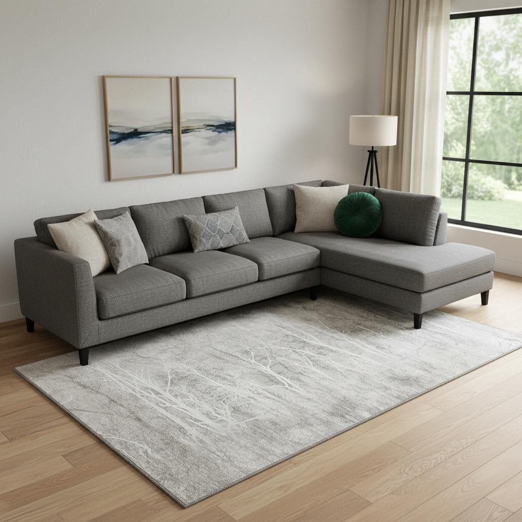 Add some artistry to your room with this 10-foot x 14-foot silver and ivory floral washable area rug with uv protection. Ideal for spaces with kids and pets, this rug is stain resistant to help repel dirt and spilled liquids. Built to last, this rug crafted from polyester fibers is known for its durability and long lasting appeal. Rugs are a great way to showcase your style, hide imperfections, warm your home and reduce noise. This larger sized, transitional styled rug is ready to create a focal point or statement piece in your room. 120.00-inch h x 168.00-inch w x 0.39-inch d.