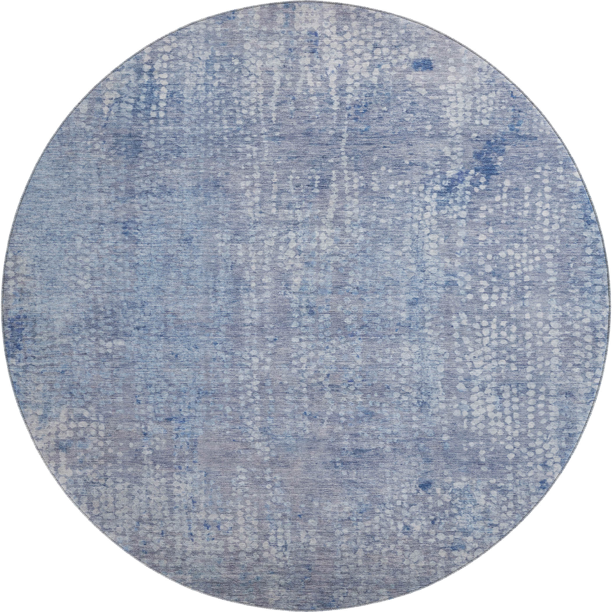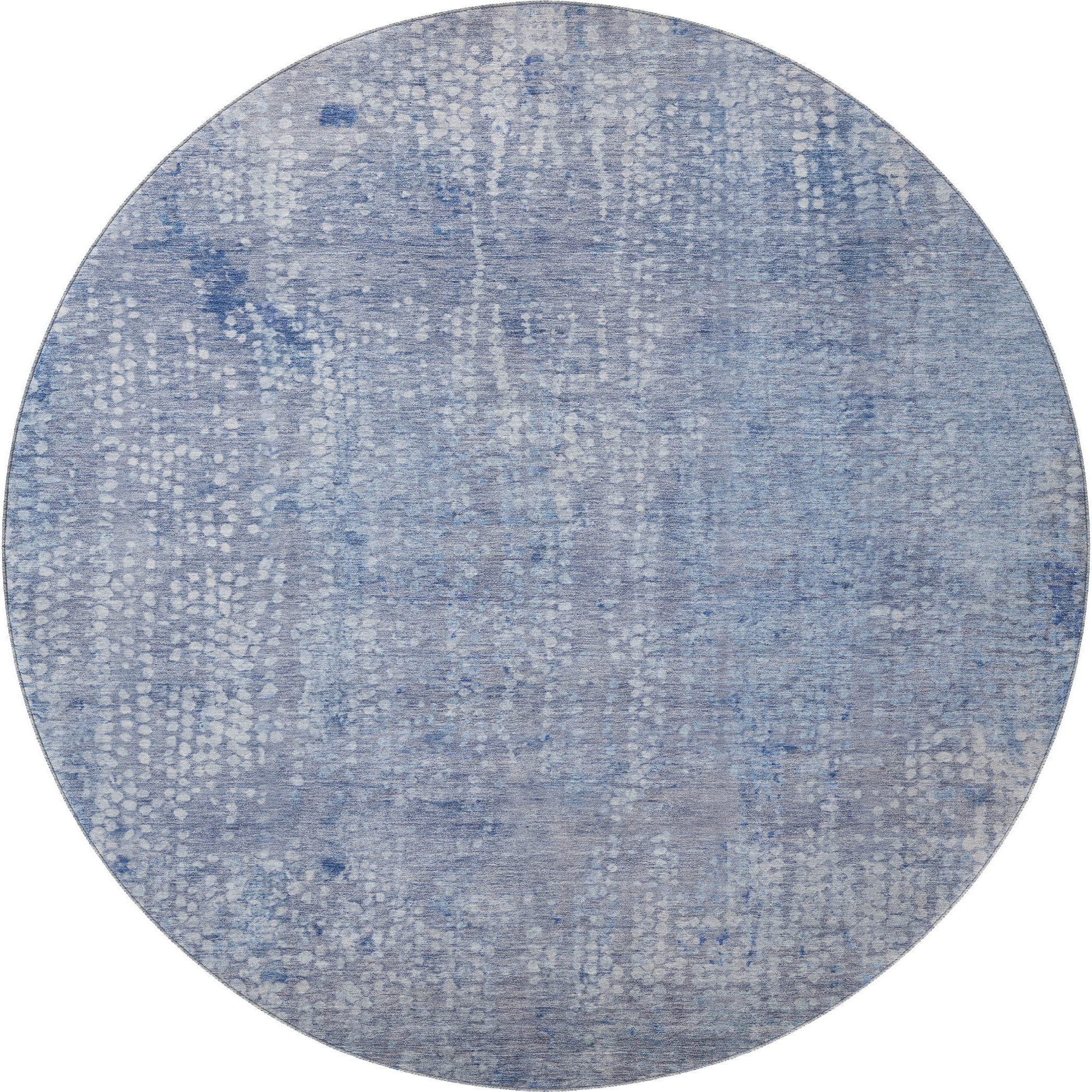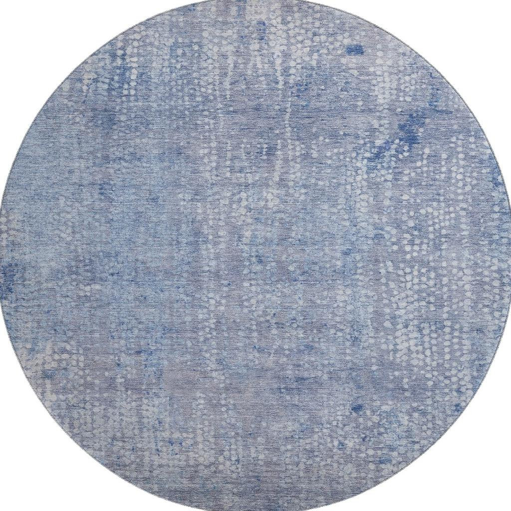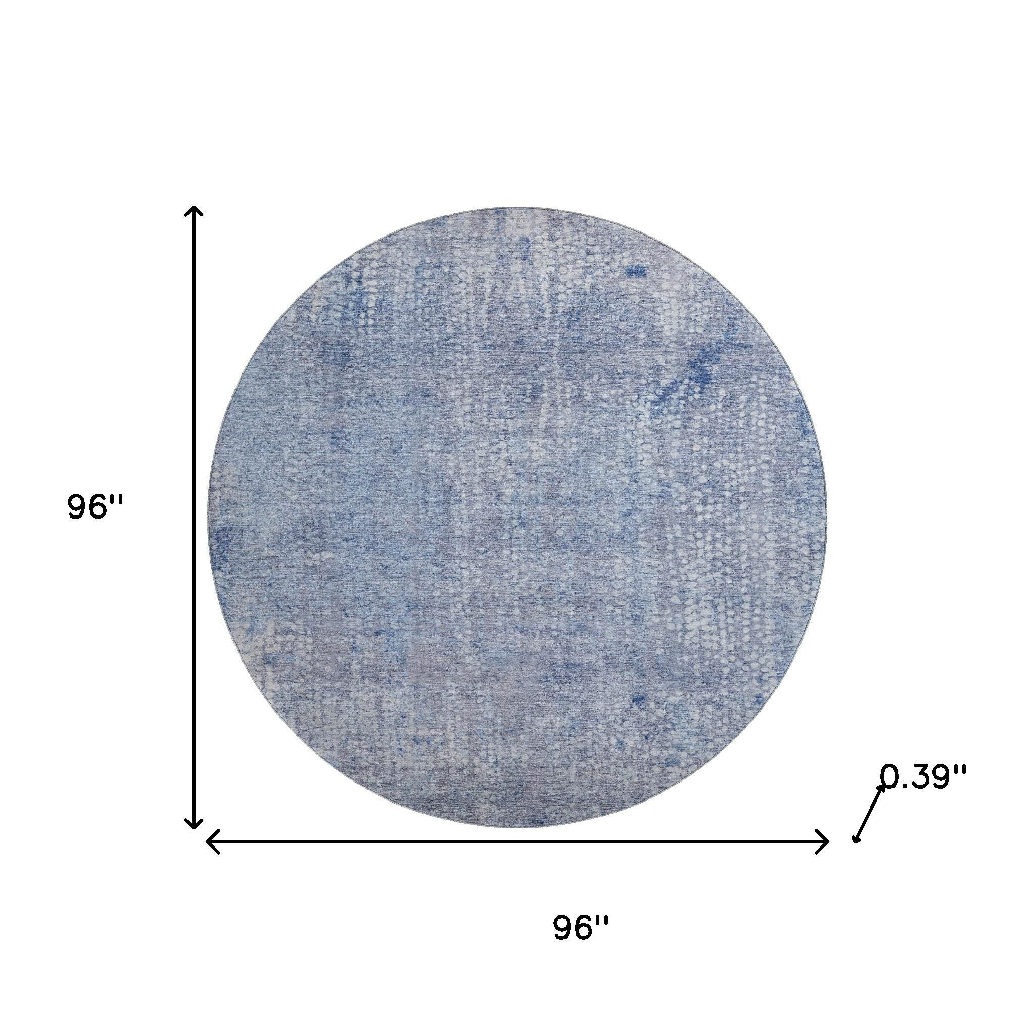 Set an inviting tone in your space with this 8-foot blue and ivory abstract washable round rug with uv protection. Ideal for spaces with kids and pets, this rug is stain resistant to help repel dirt and spilled liquids. Built to last, this rug crafted from polyester fibers is known for its durability and long lasting appeal. Rugs are a great way to showcase your style, hide imperfections, warm your home and reduce noise. This larger sized, transitional styled rug is ready to create a focal point or statement piece in your room. 96.00-inch h x 96.00-inch w x 0.39-inch d.