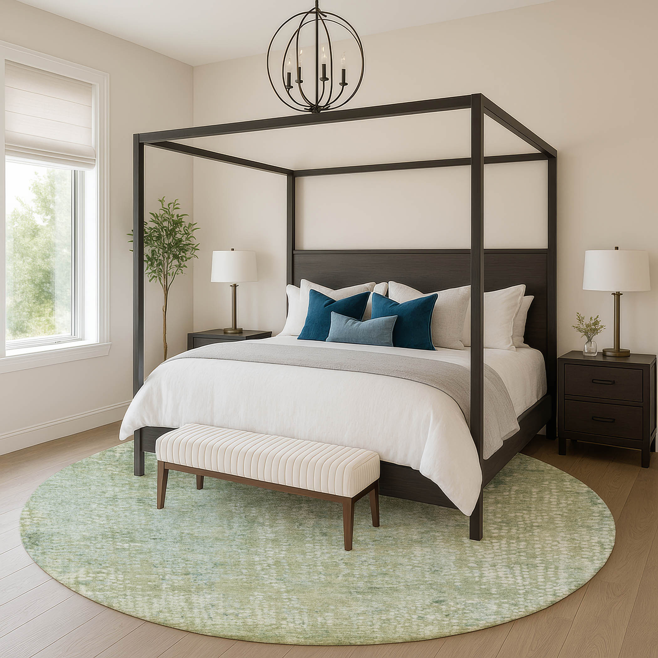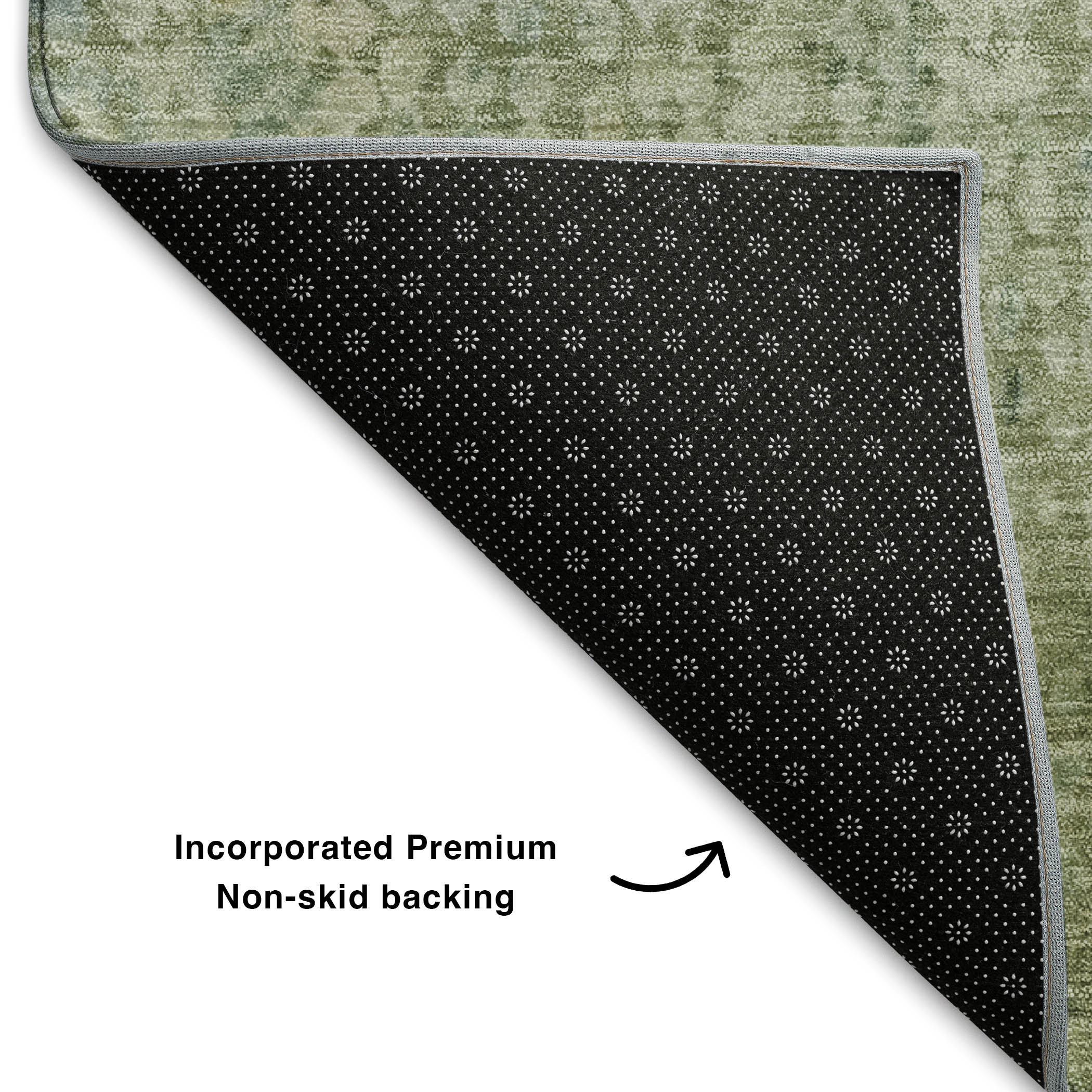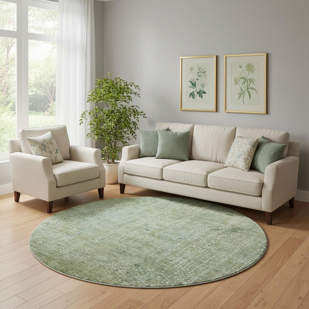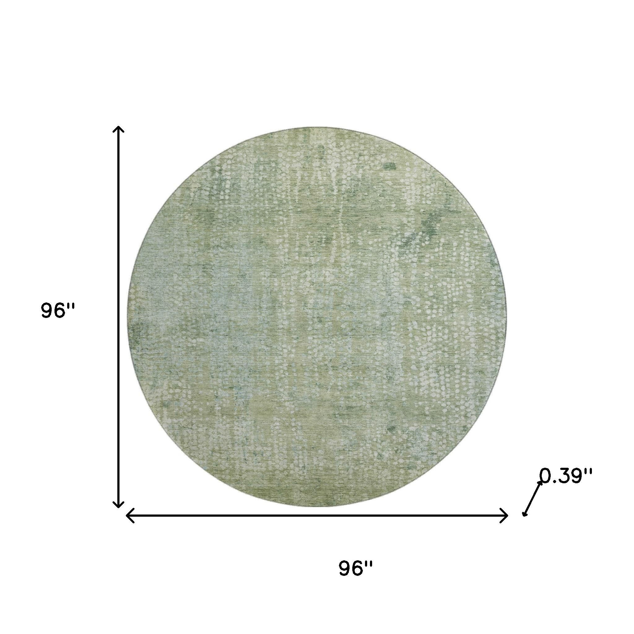 Add great coloration and comfortable texture to your space with this 8-foot green and sage abstract washable round rug with uv protection. Ideal for spaces with kids and pets, this rug is stain resistant to help repel dirt and spilled liquids. Built to last, this rug crafted from polyester fibers is known for its durability and long lasting appeal. Rugs are a great way to showcase your style, hide imperfections, warm your home and reduce noise. This larger sized, transitional styled rug is ready to create a focal point or statement piece in your room. 96.00-inch h x 96.00-inch w x 0.39-inch d.