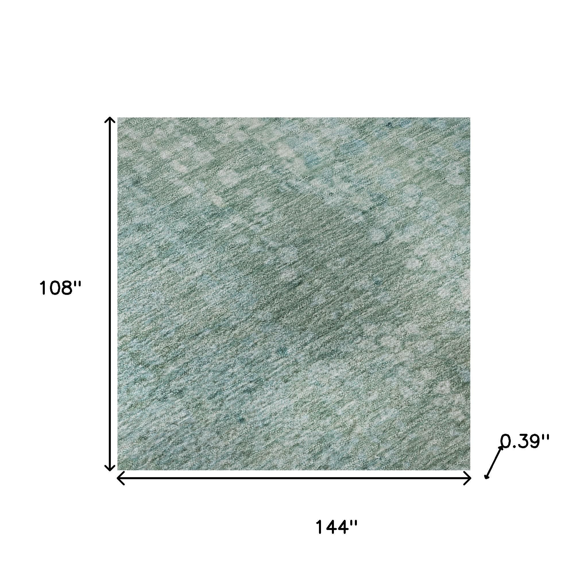 Add some artistry to your room with this 9-foot x 12-foot teal and ivory abstract washable area rug with uv protection. Ideal for spaces with kids and pets, this rug is stain resistant to help repel dirt and spilled liquids. Built to last, this rug crafted from polyester fibers is known for its durability and long lasting appeal. Rugs are a great way to showcase your style, hide imperfections, warm your home and reduce noise. This larger sized, transitional styled rug is ready to create a focal point or statement piece in your room. 108.00-inch h x 144.00-inch w x 0.39-inch d.