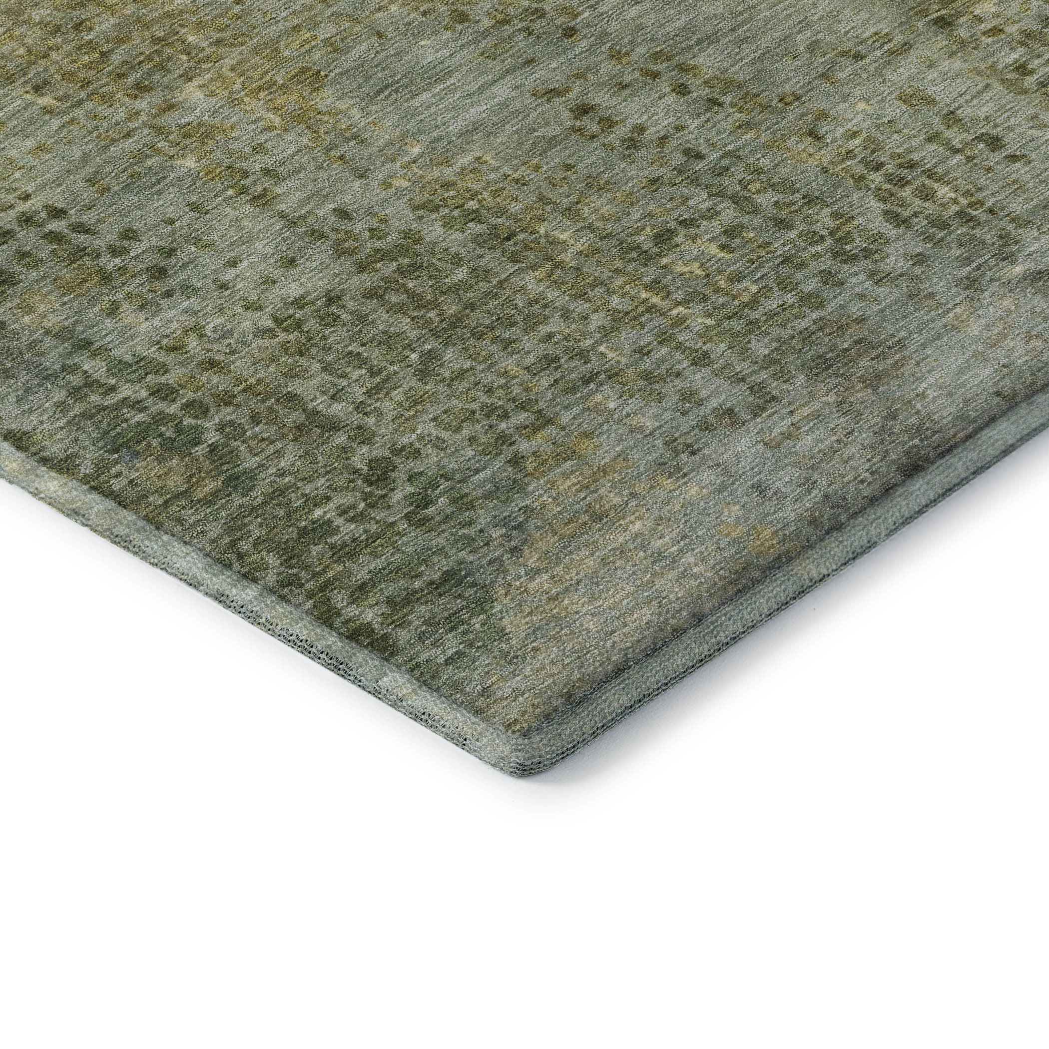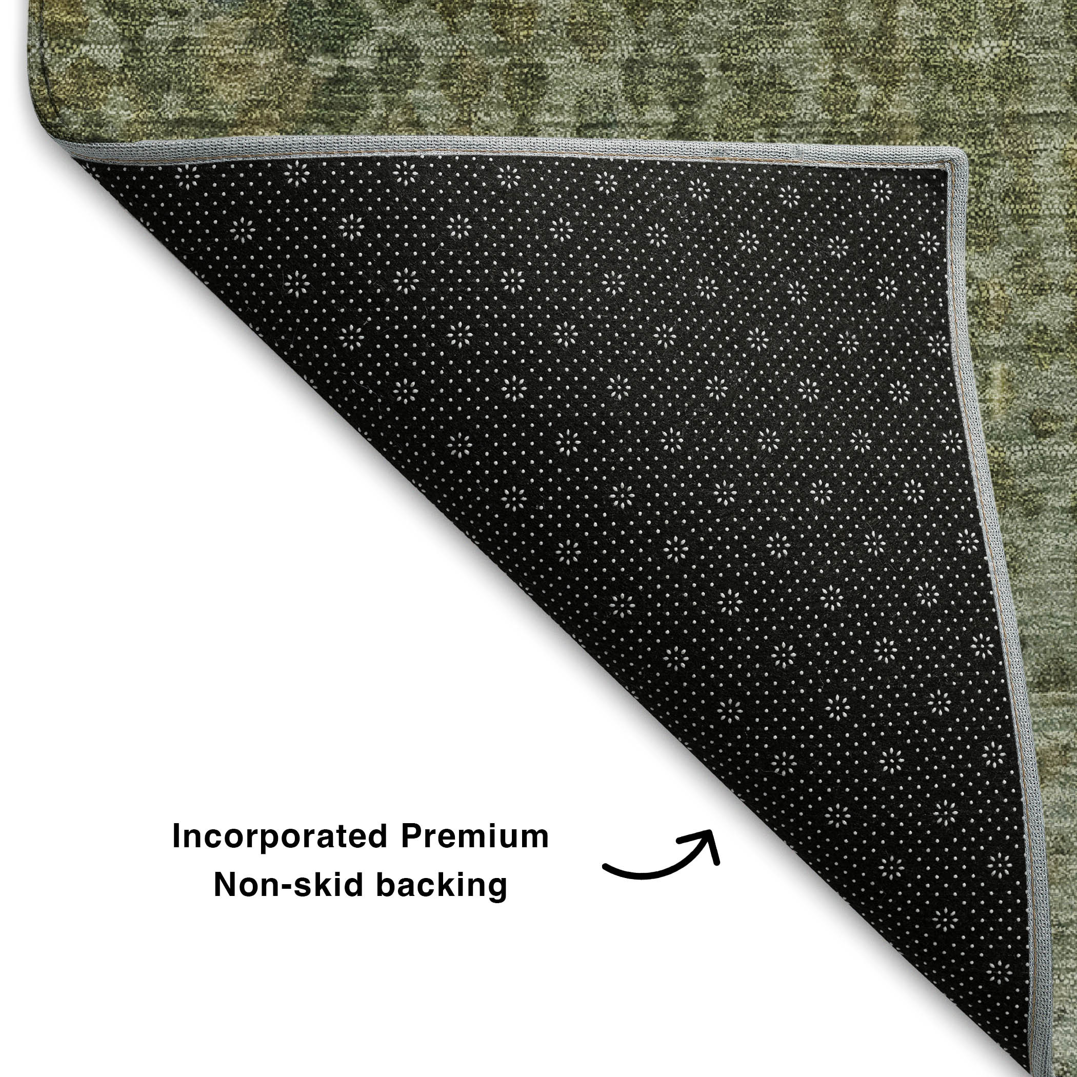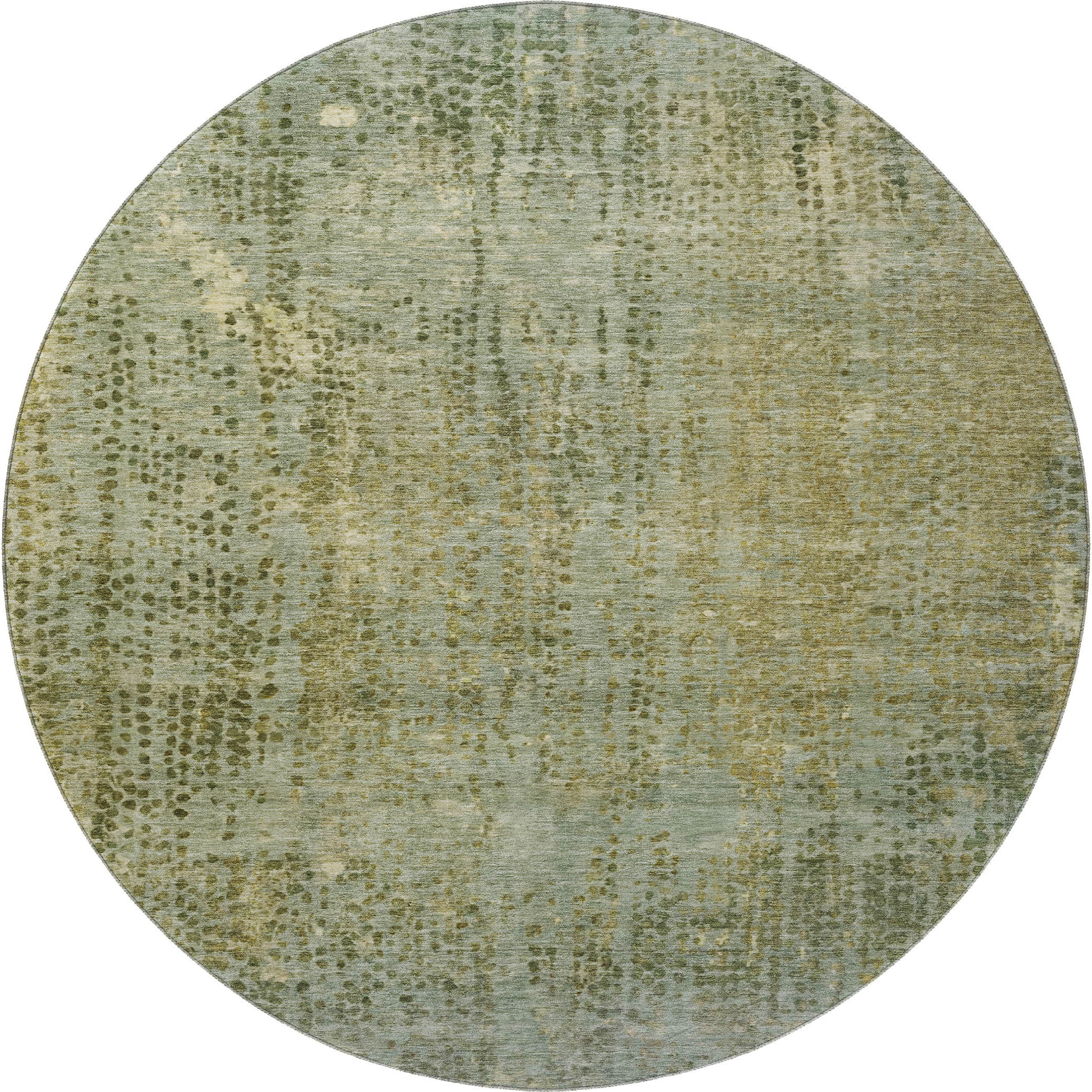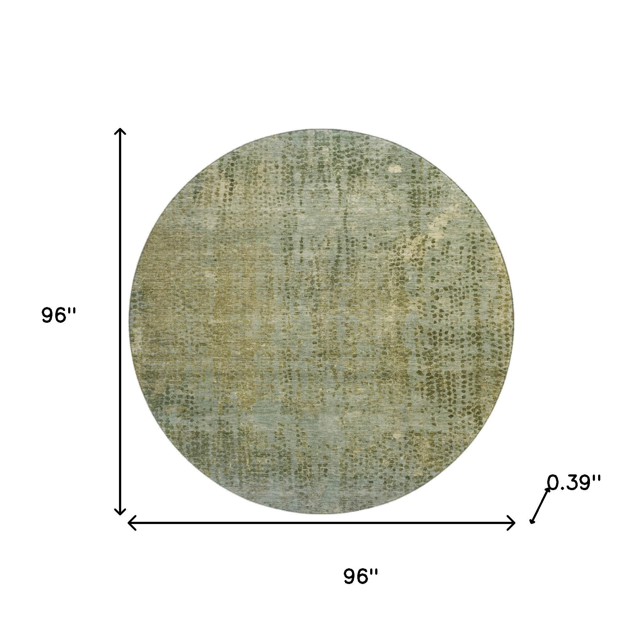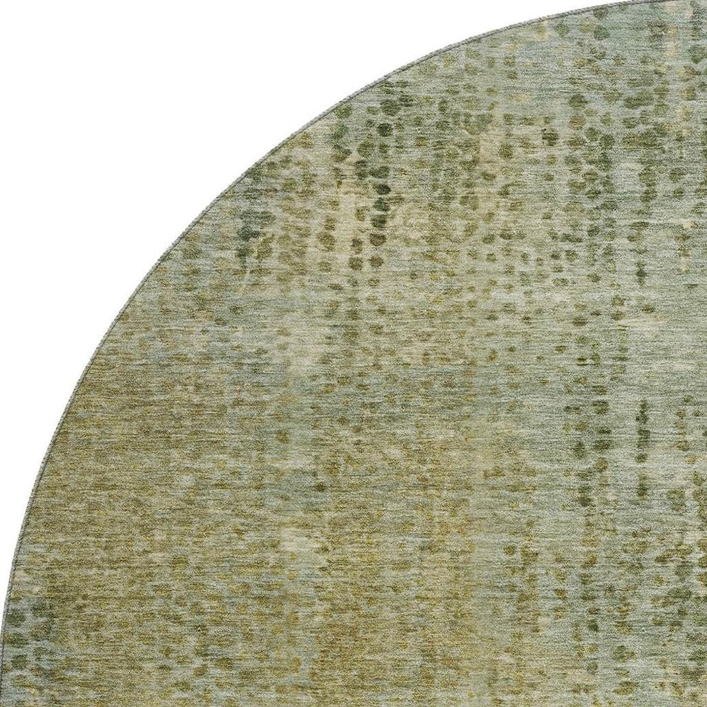 Add some artistry to your room with this 8-foot green and gold abstract washable round rug with uv protection. Ideal for spaces with kids and pets, this rug is stain resistant to help repel dirt and spilled liquids. Built to last, this rug crafted from polyester fibers is known for its durability and long lasting appeal. Rugs are a great way to showcase your style, hide imperfections, warm your home and reduce noise. This larger sized, transitional styled rug is ready to create a focal point or statement piece in your room. 96.00-inch h x 96.00-inch w x 0.39-inch d.