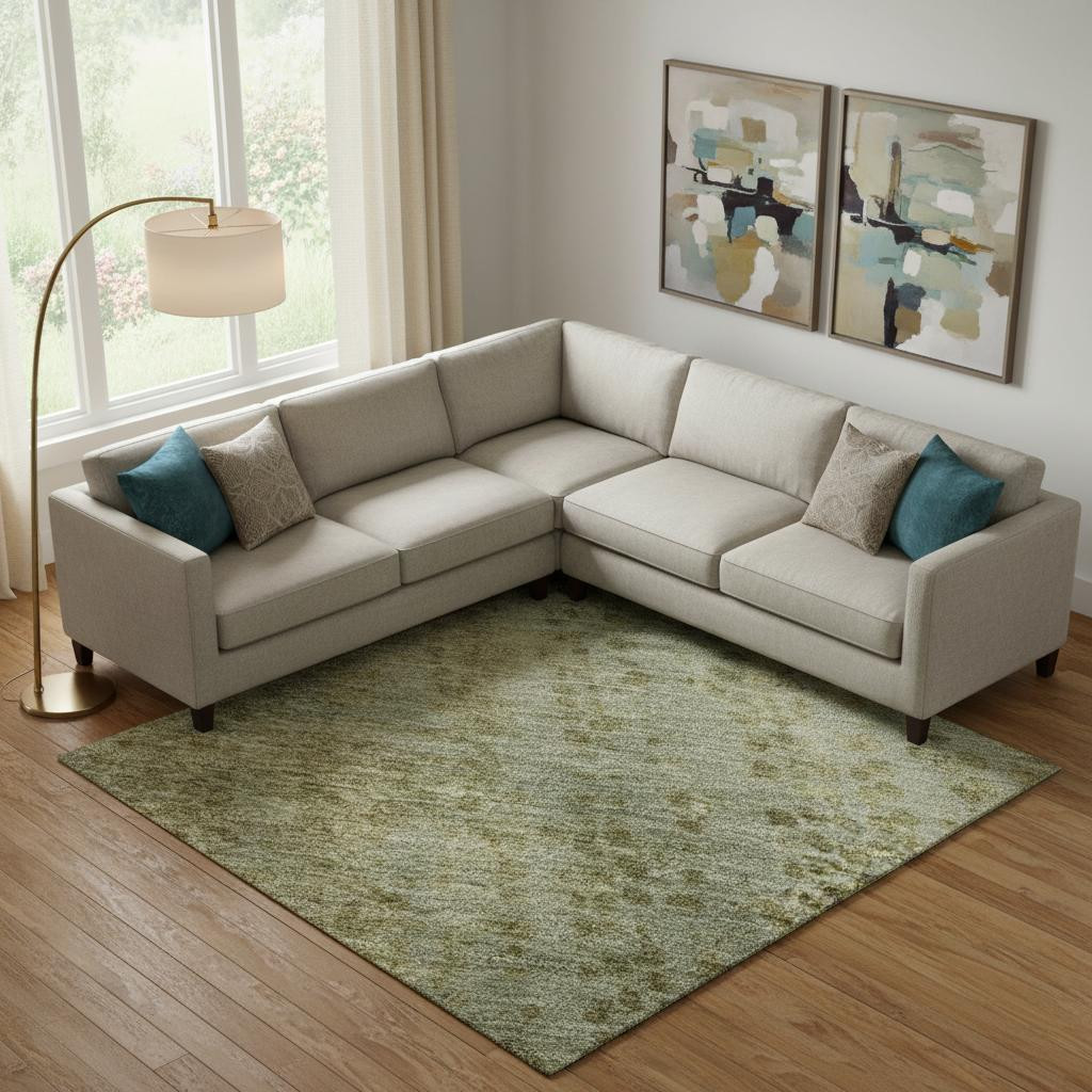 Add some artistry to your room with this 8-foot x 10-foot green and gold abstract washable area rug with uv protection. Ideal for spaces with kids and pets, this rug is stain resistant to help repel dirt and spilled liquids. Built to last, this rug crafted from polyester fibers is known for its durability and long lasting appeal. Rugs are a great way to showcase your style, hide imperfections, warm your home and reduce noise. This larger sized, transitional styled rug is ready to create a focal point or statement piece in your room. 96.00-inch h x 120.00-inch w x 0.39-inch d.