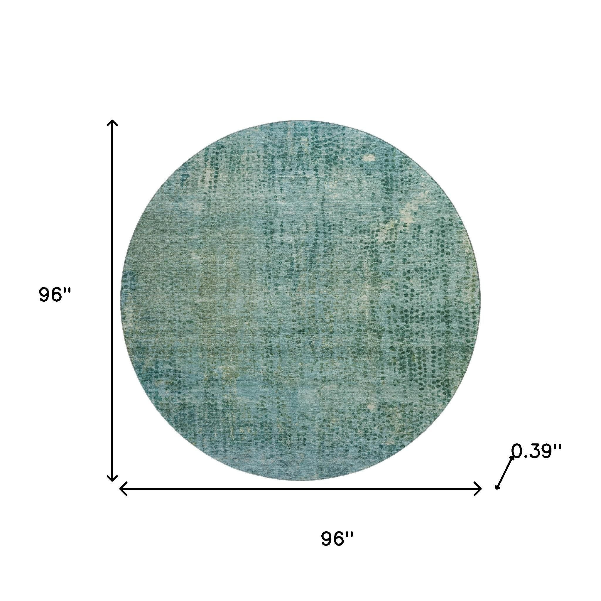 Add some artistry to your room with this 8-foot teal and blue abstract washable round rug with uv protection. Ideal for spaces with kids and pets, this rug is stain resistant to help repel dirt and spilled liquids. Built to last, this rug crafted from polyester fibers is known for its durability and long lasting appeal. Rugs are a great way to showcase your style, hide imperfections, warm your home and reduce noise. This larger sized, transitional styled rug is ready to create a focal point or statement piece in your room. 96.00-inch h x 96.00-inch w x 0.39-inch d.