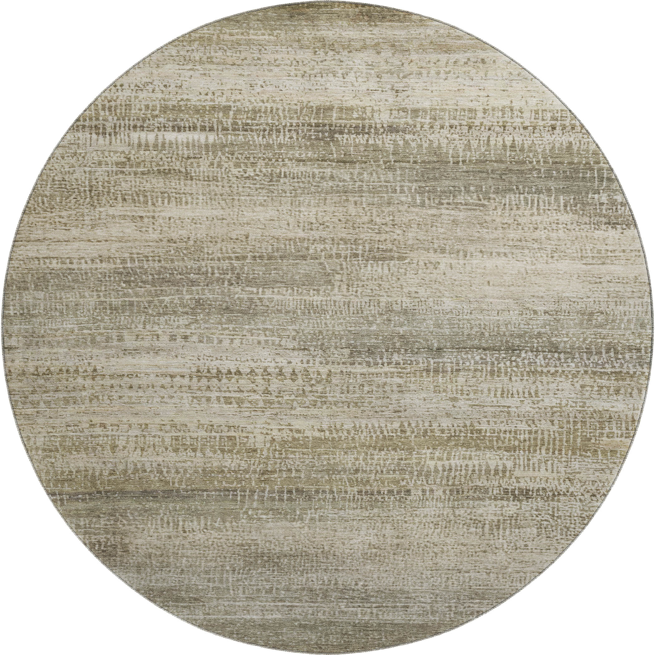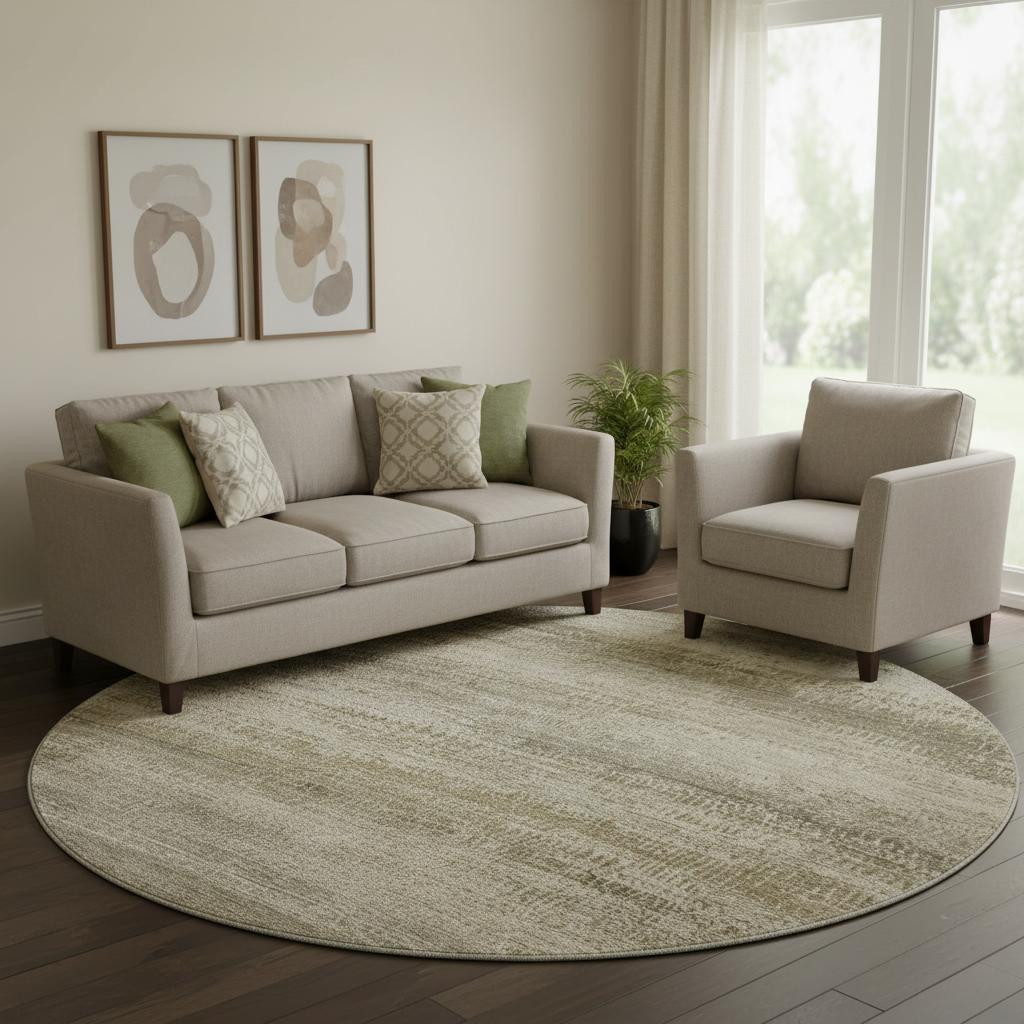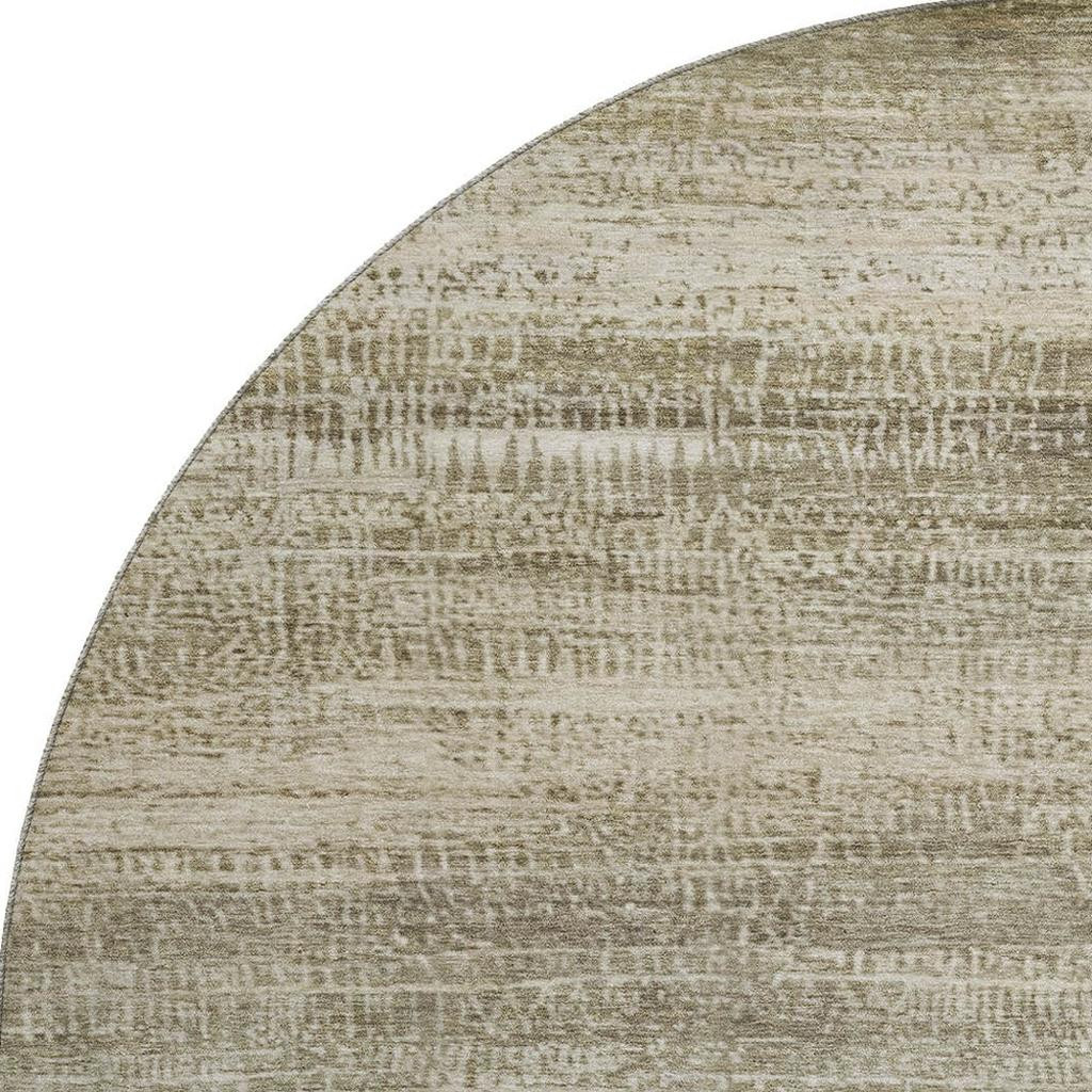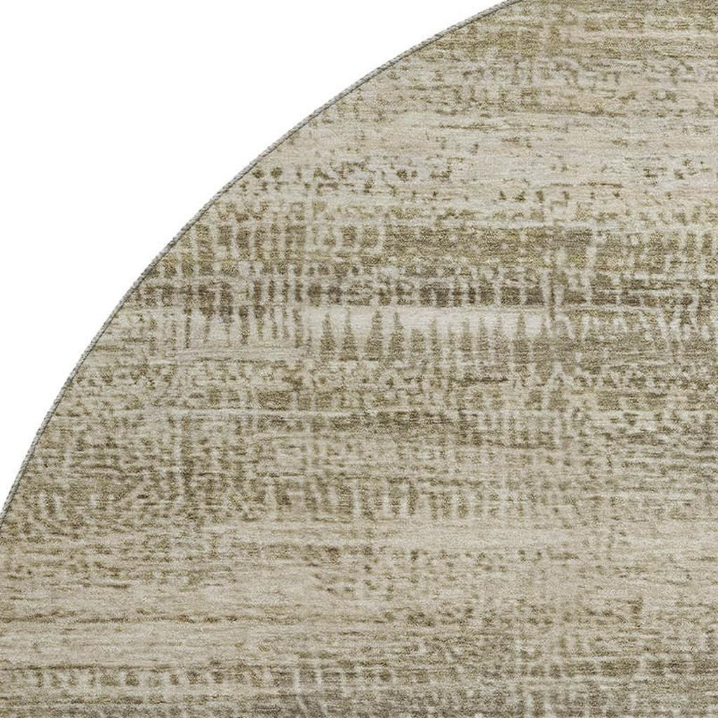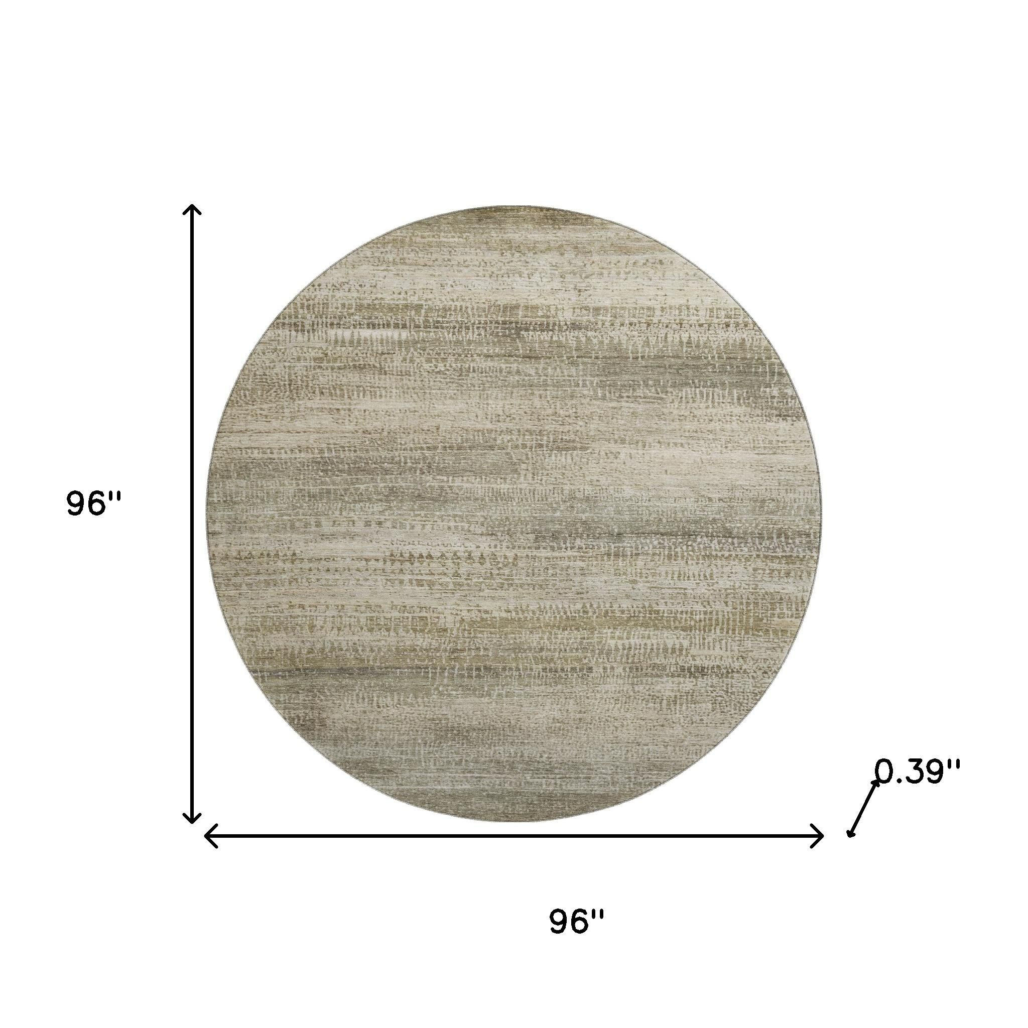 This 8-foot taupe and beige abstract washable round rug with uv protection, is a great way to add warmth to a room. Ideal for spaces with kids and pets, this rug is stain resistant to help repel dirt and spilled liquids. Built to last, this rug crafted from polyester fibers is known for its durability and long lasting appeal. Rugs are a great way to showcase your style, hide imperfections, warm your home and reduce noise. This larger sized, transitional styled rug is ready to create a focal point or statement piece in your room. 96.00-inch h x 96.00-inch w x 0.39-inch d.