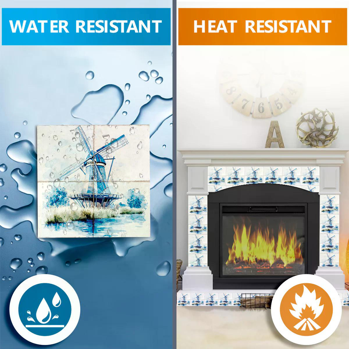 blue windmill tile stickers, mosaic vinyl peel stick removable tiles, kitchen peel stick, backsplash peel stick tiles, mosaic peel stick removable |