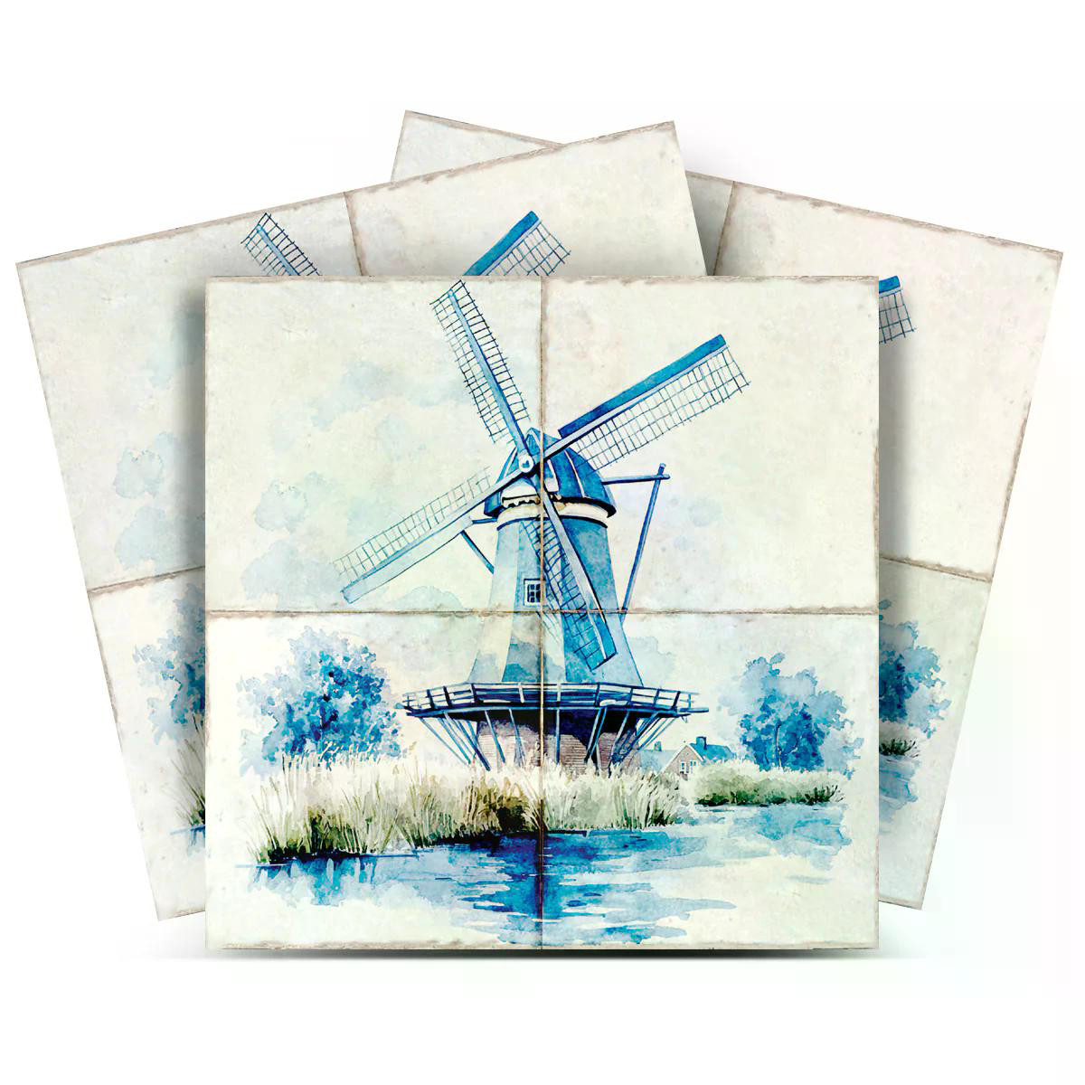 blue windmill tile stickers, mosaic vinyl peel stick removable tiles, kitchen peel stick, backsplash peel stick tiles, mosaic peel stick removable |