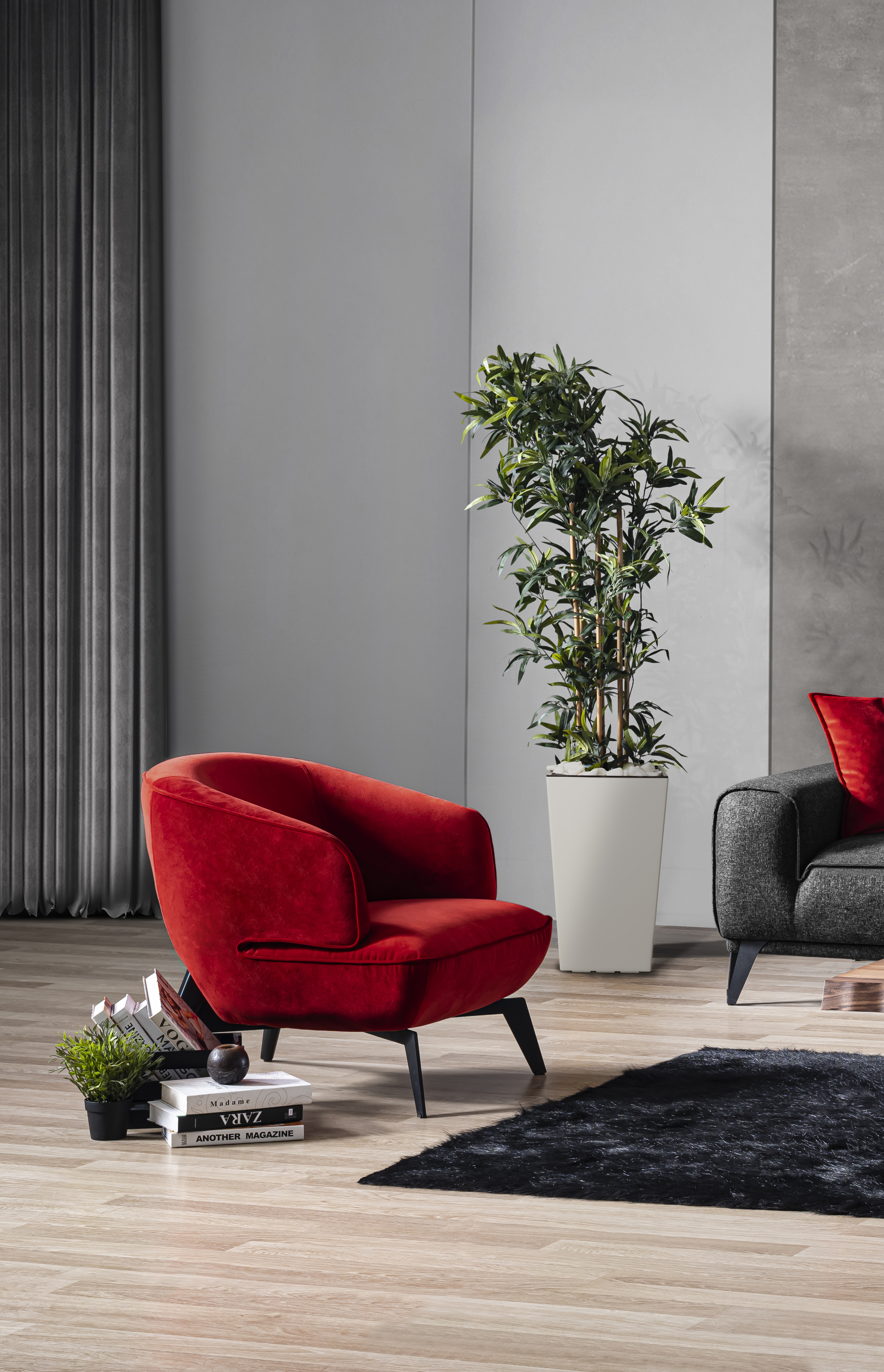 Give your living room, bedroom, or office a facelift with this beautifully crafted 28-inch red and black velvet and metal lounge chair. This gorgeous solid color red lounge chair is masterfully upholstered in durable velvet. The sturdy inner frame is built with high quality metal, includes armrests, and features a tight back that is accented with soft and comfortable cushioning. 29.00-inch h x 28.00-inch w x 35.00-inch d.