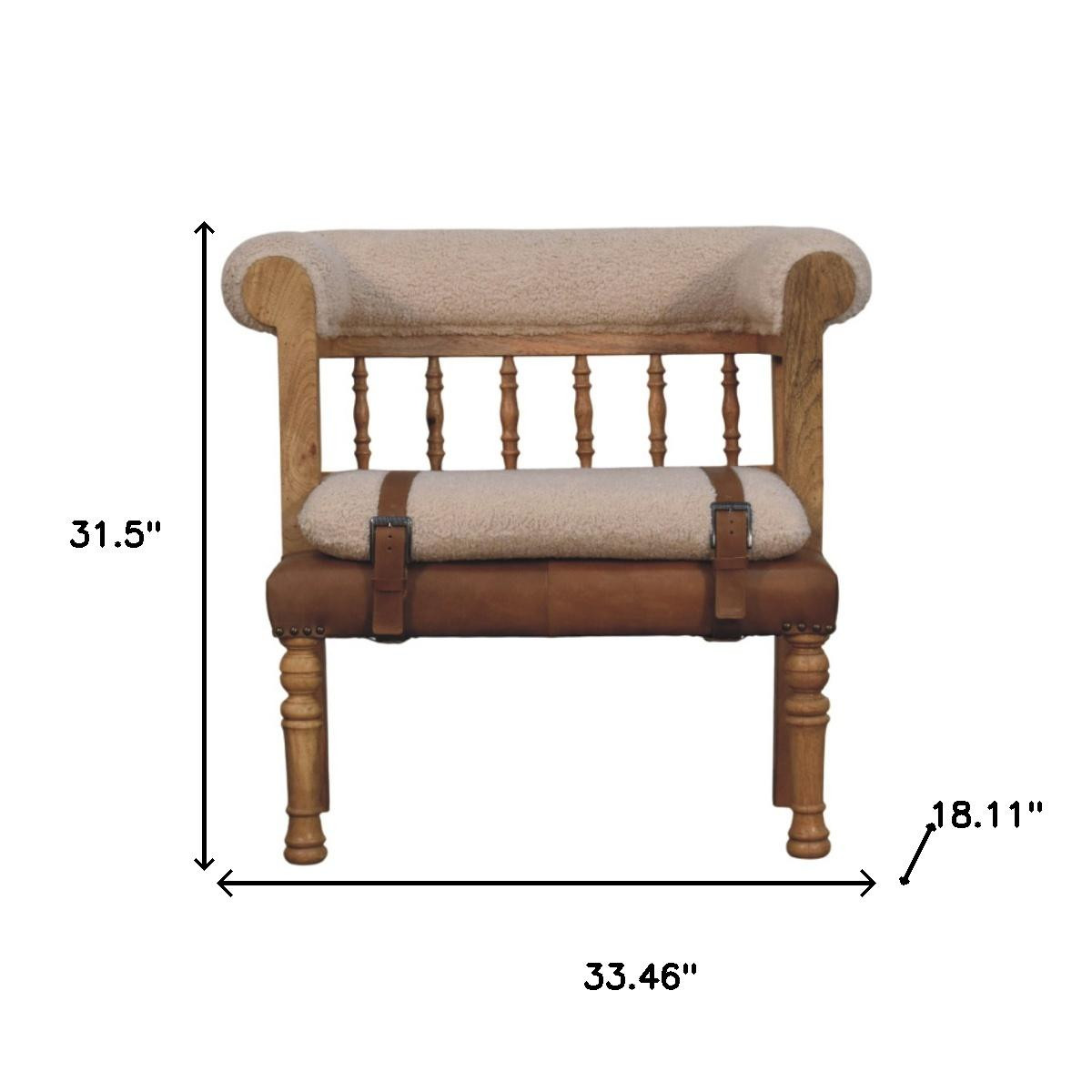 Distinctive in style the 33-inch brown boucle and solid wood upholstered storage bench with cabinet radiates a versatile charm. A brown coloration runs throughout this good looking solid wood and upholstery bench. Expertly upholstered with padding in a soft solid color boucle, this bench is as comfortable as it is good looking. This multi-function bench features a cabinet area in addition to seating to help keep your space neat and tidy. An included back gives this bench an extra opportunity to keep you supported and comfortable. Ideal for entrance foyer, hallway, or laundry room. This bench is a great place store your keys, put on your shoes, or be a catchall on your way in or out. Easy to blend into most any room, a bench is a way to add a good looking accent to your space that can also be practical and useful. 31.50-inch h x 33.46-inch w x 18.11-inch d.